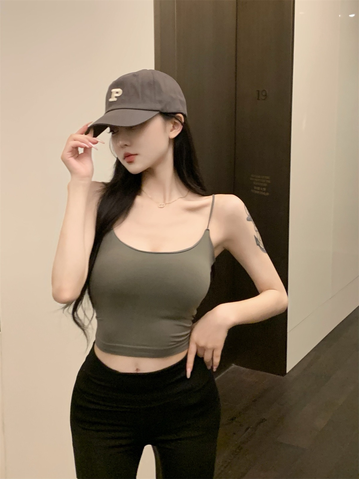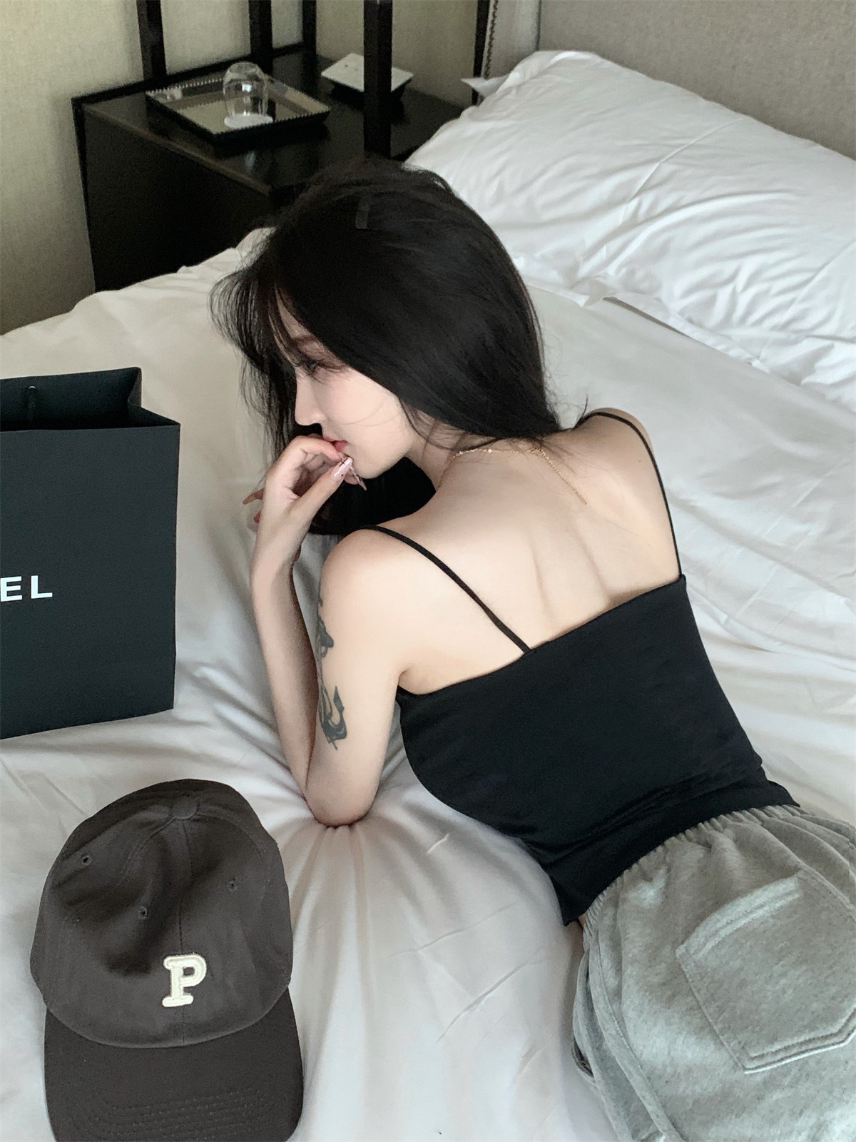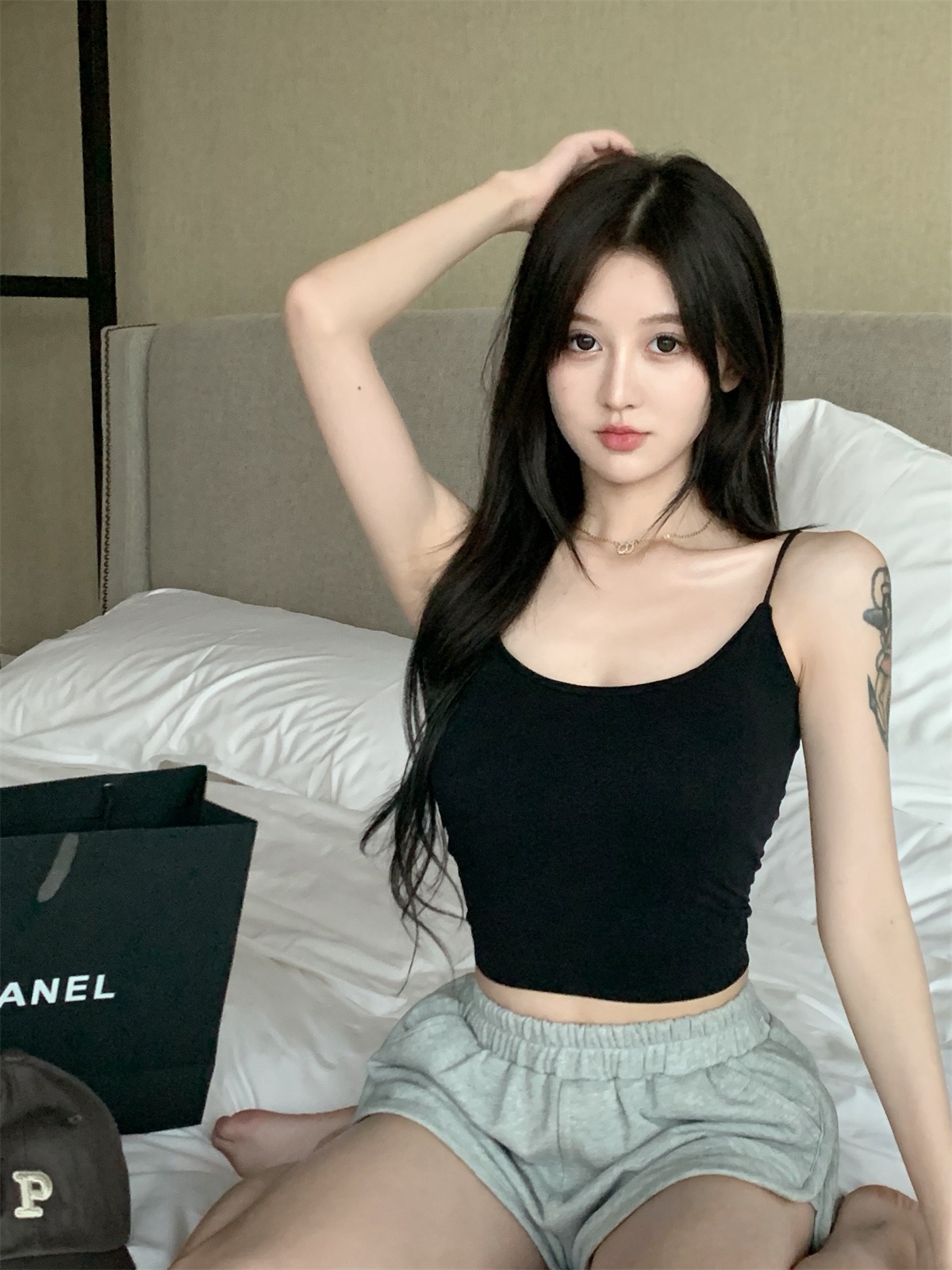 가슴 패드와 얇은 어깨 끈이 있는 섹시한 핫걸 캐미솔 여성용 아우터웨어 및 이너웨어 슬림핏 소녀 바닥 올인원 탑스토어 가기