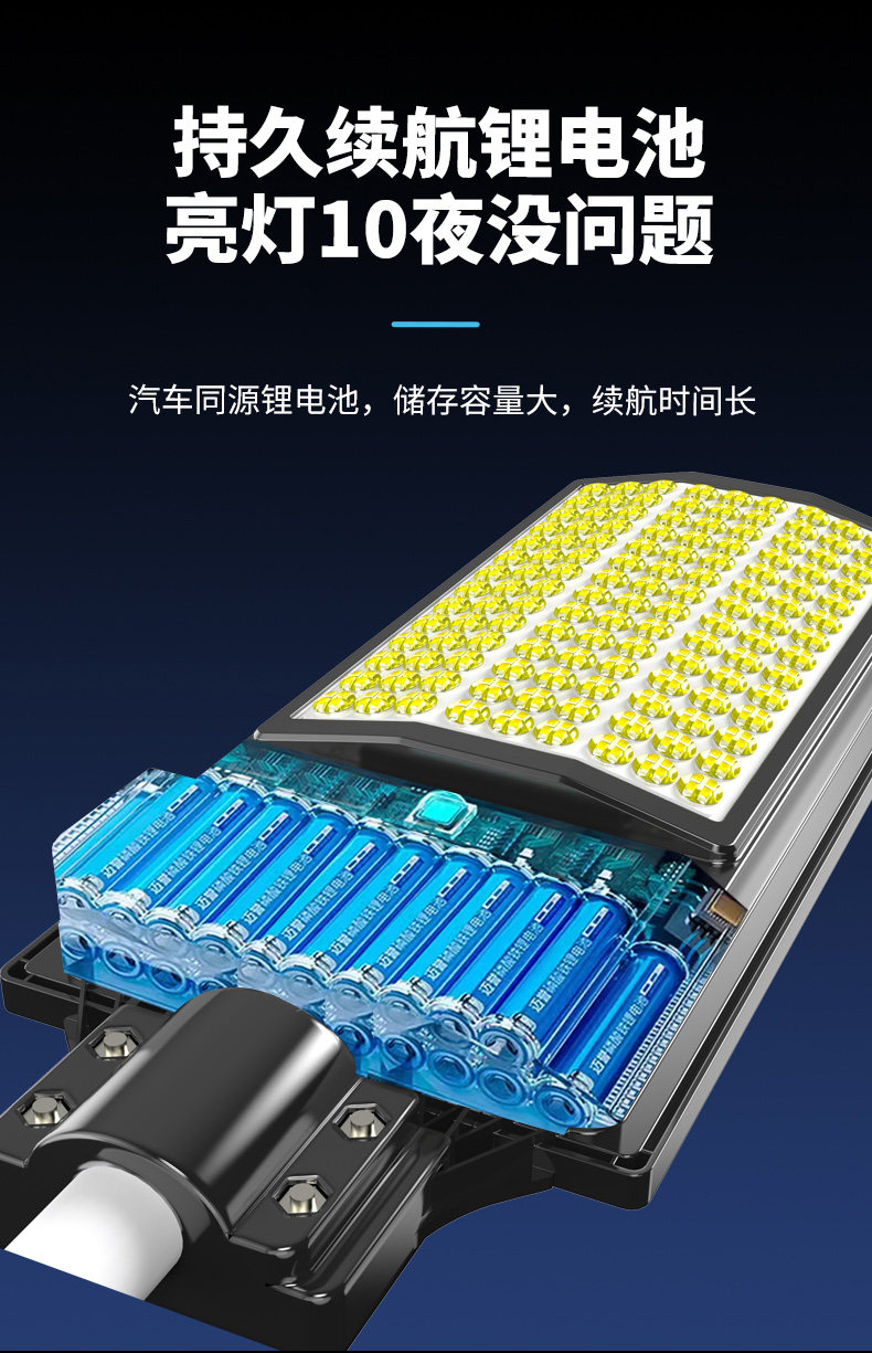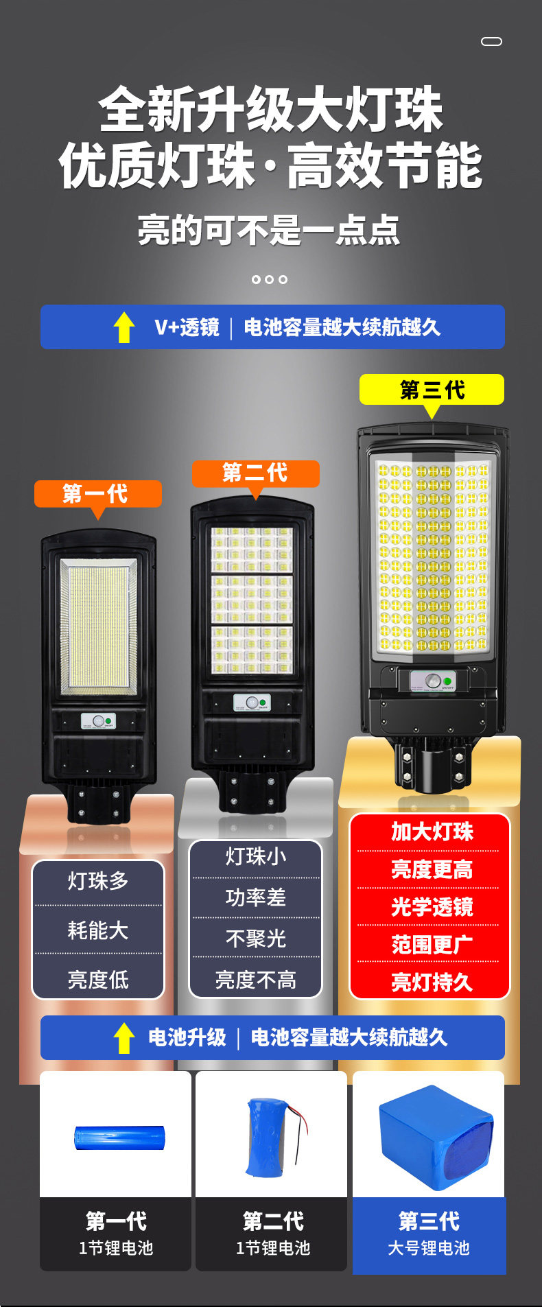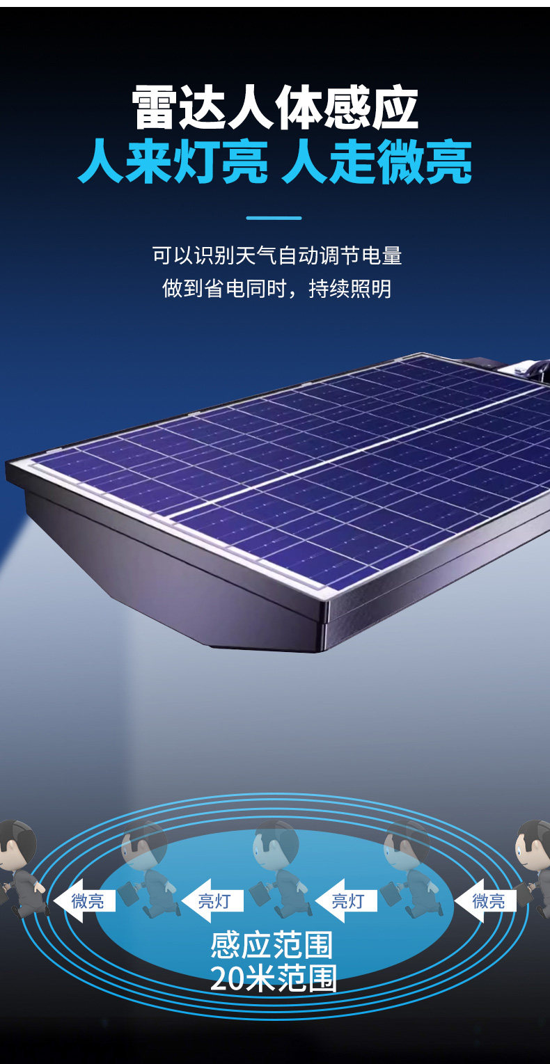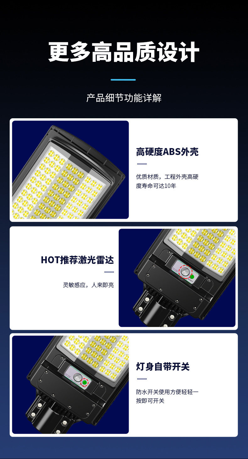 • 곡면 렌즈는 68000W(로드 장착) [1300평방미터]를 밝히며 인체 센서 + 어두울 때 밤새도록 자동으로 켜집니다.