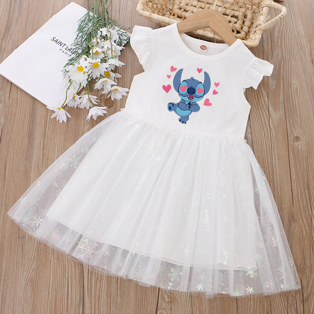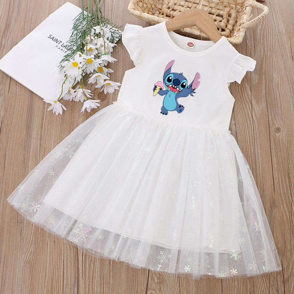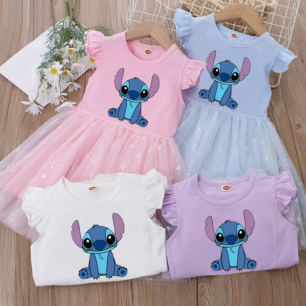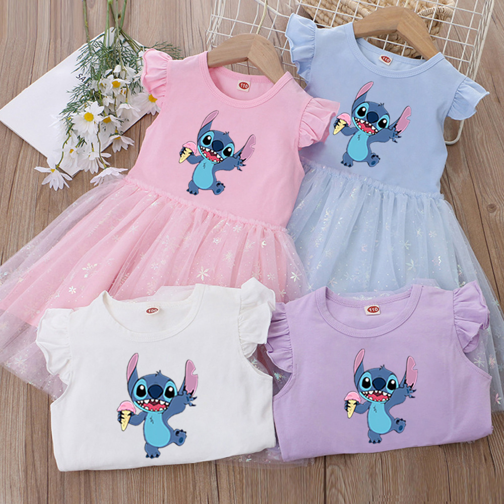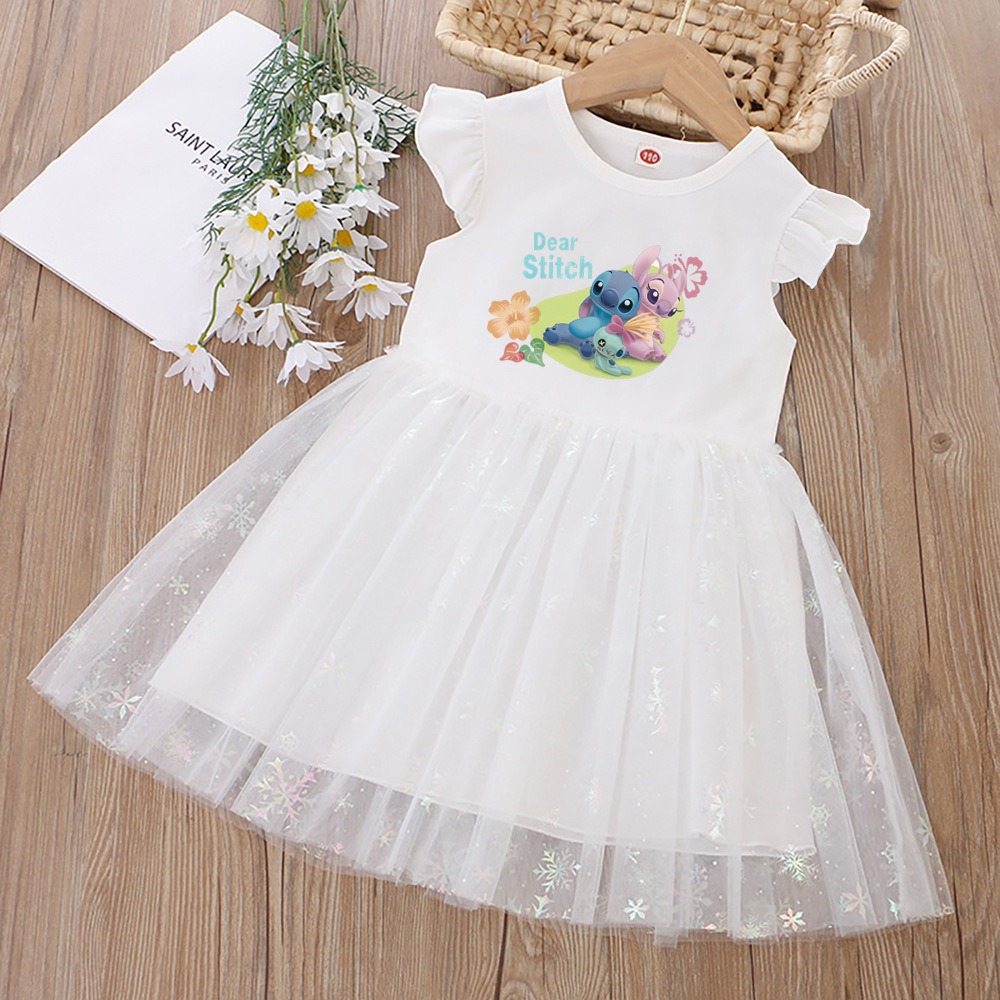 여아 드레스, 여름 아동복, 스타일리쉬한 스티치 스커트, 어린이 여아 공주 드레스, 스티치 퍼프 스커트