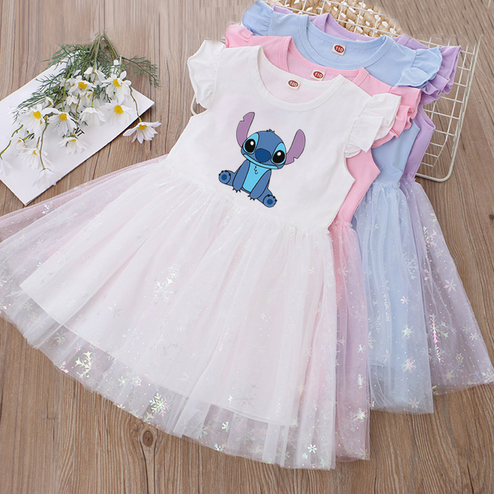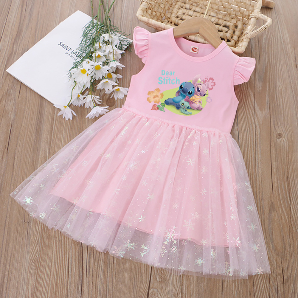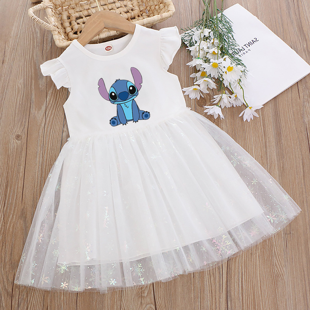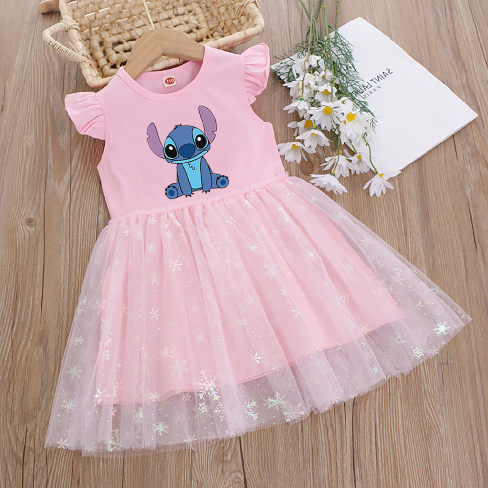 여아 드레스, 여름 아동복, 스타일리쉬한 스티치 스커트, 어린이 여아 공주 드레스, 스티치 퍼프 스커트
