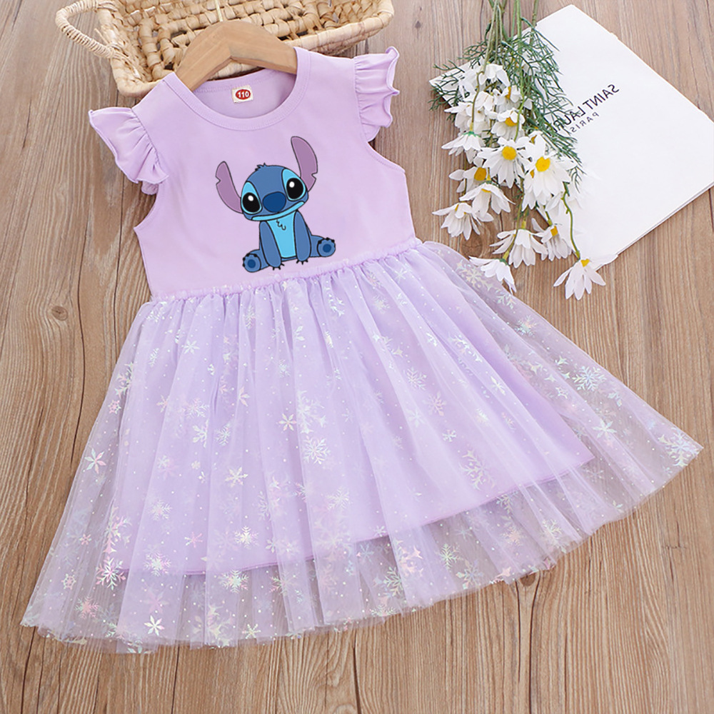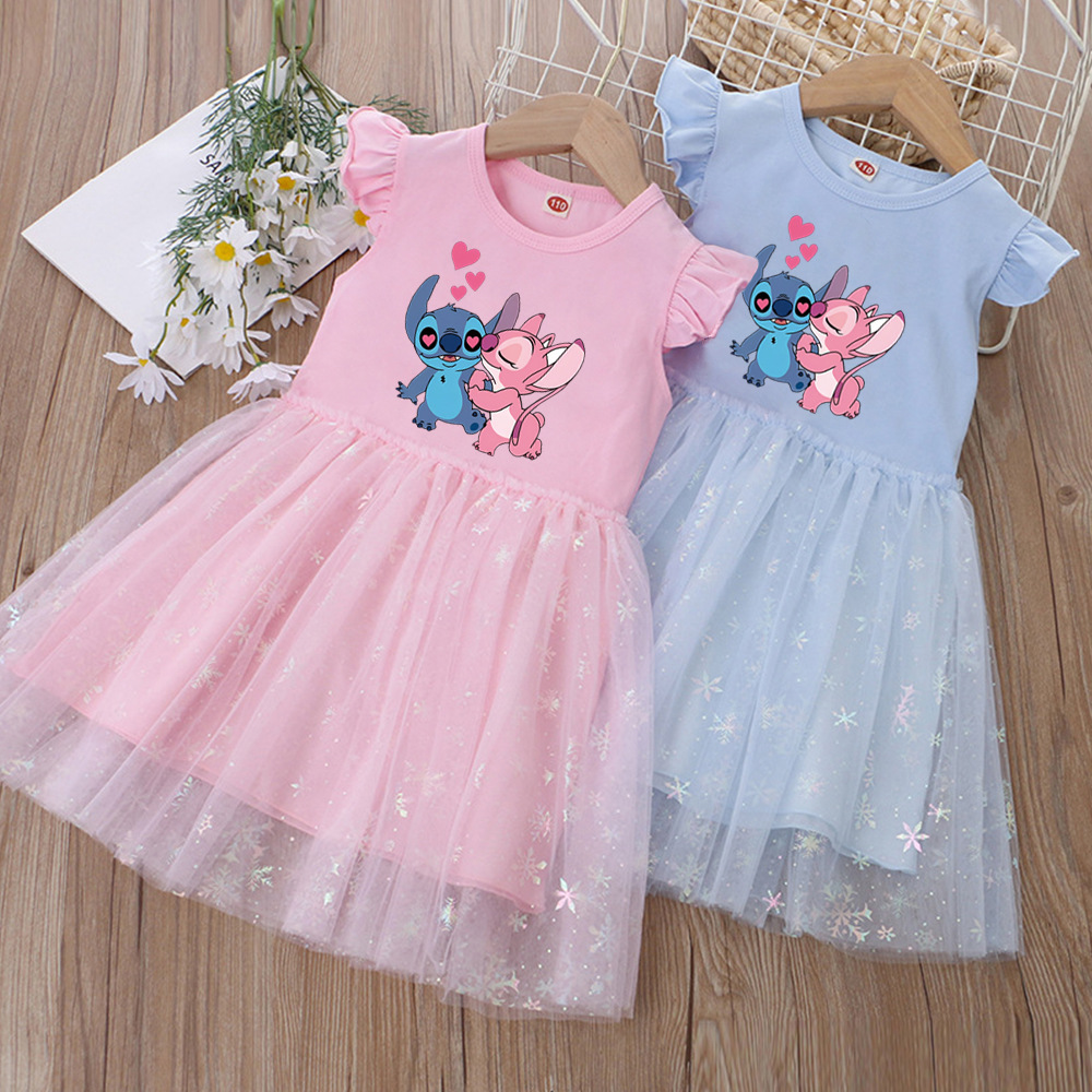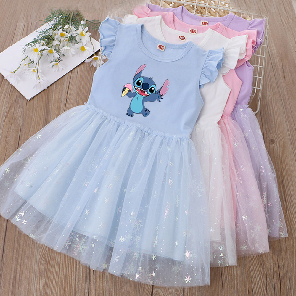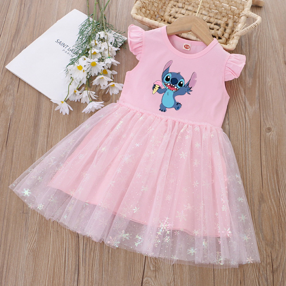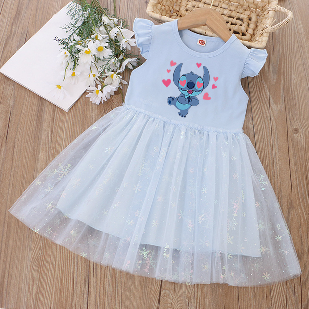 여아 드레스, 여름 아동복, 스타일리쉬한 스티치 스커트, 어린이 여아 공주 드레스, 스티치 퍼프 스커트