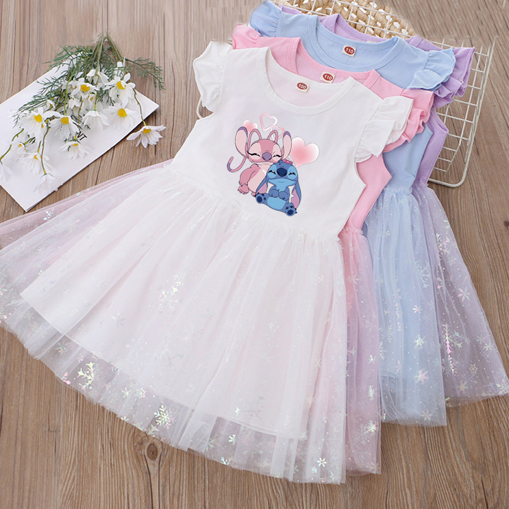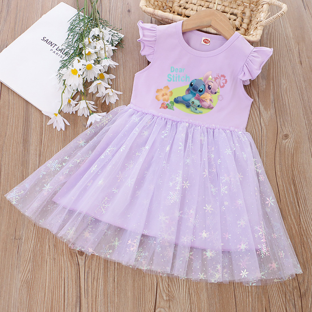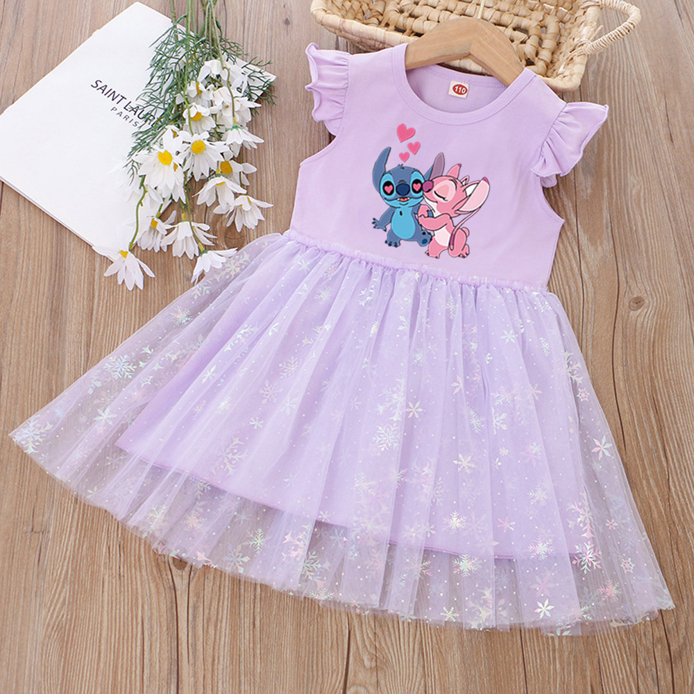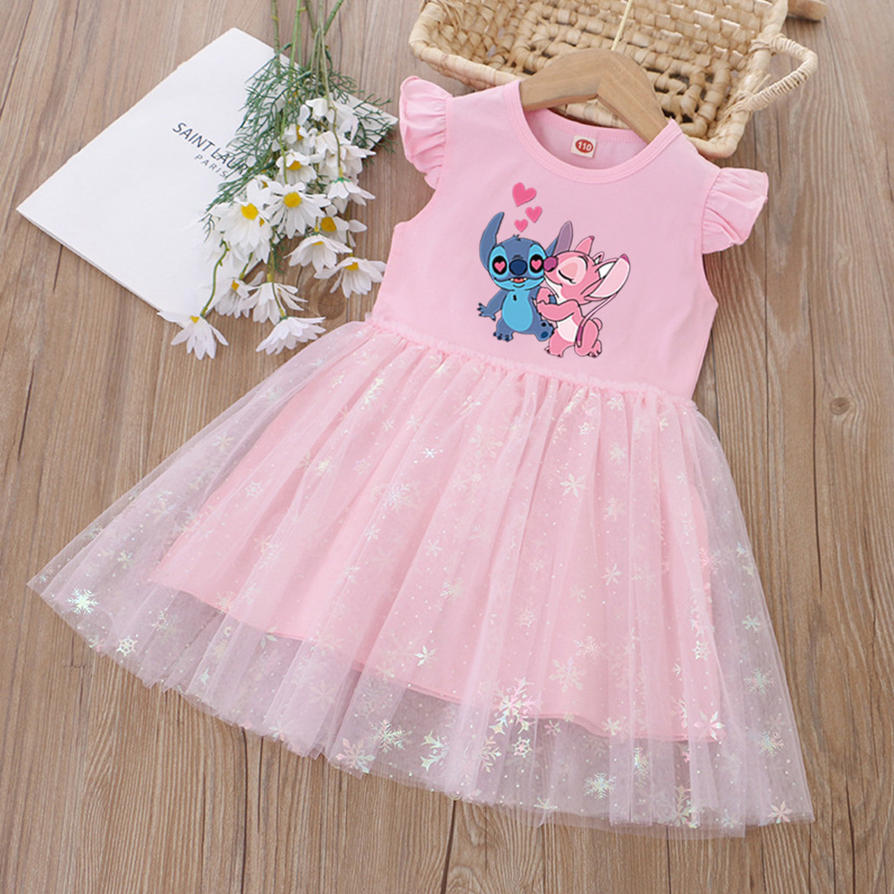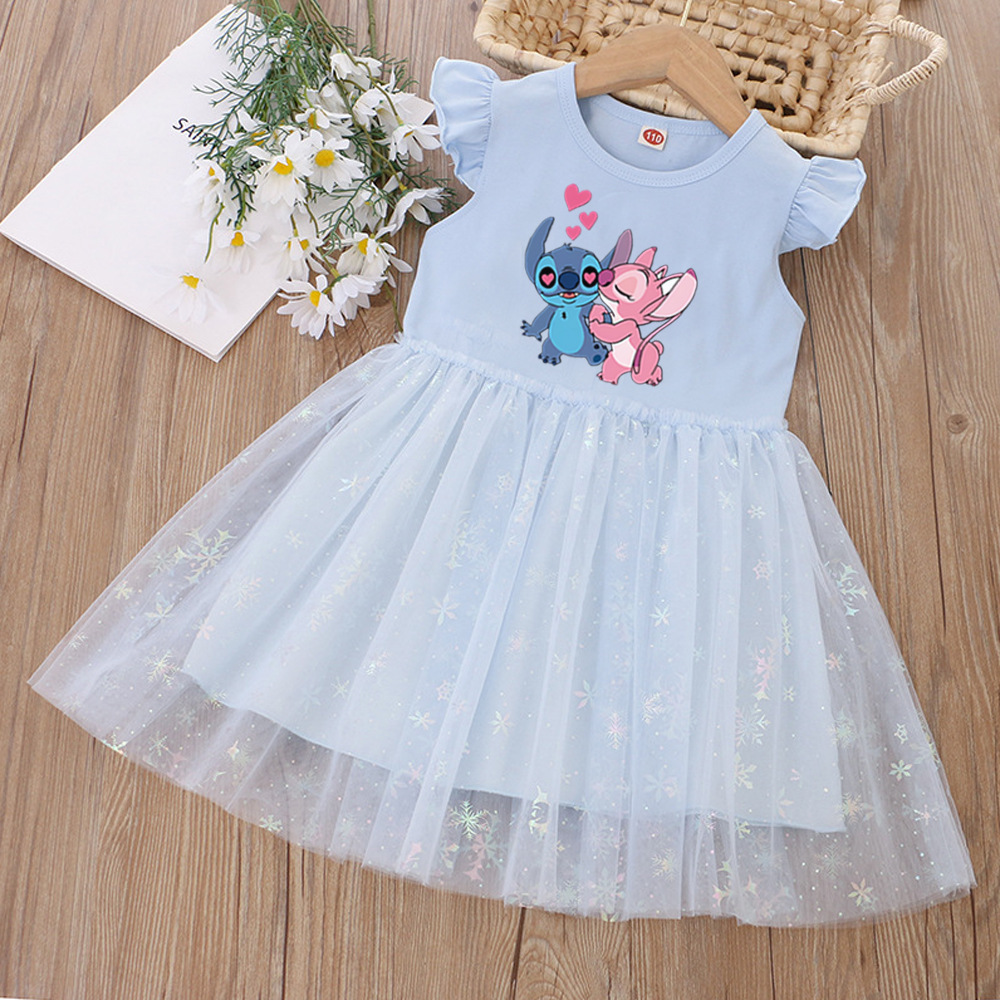 여아 드레스, 여름 아동복, 스타일리쉬한 스티치 스커트, 어린이 여아 공주 드레스, 스티치 퍼프 스커트