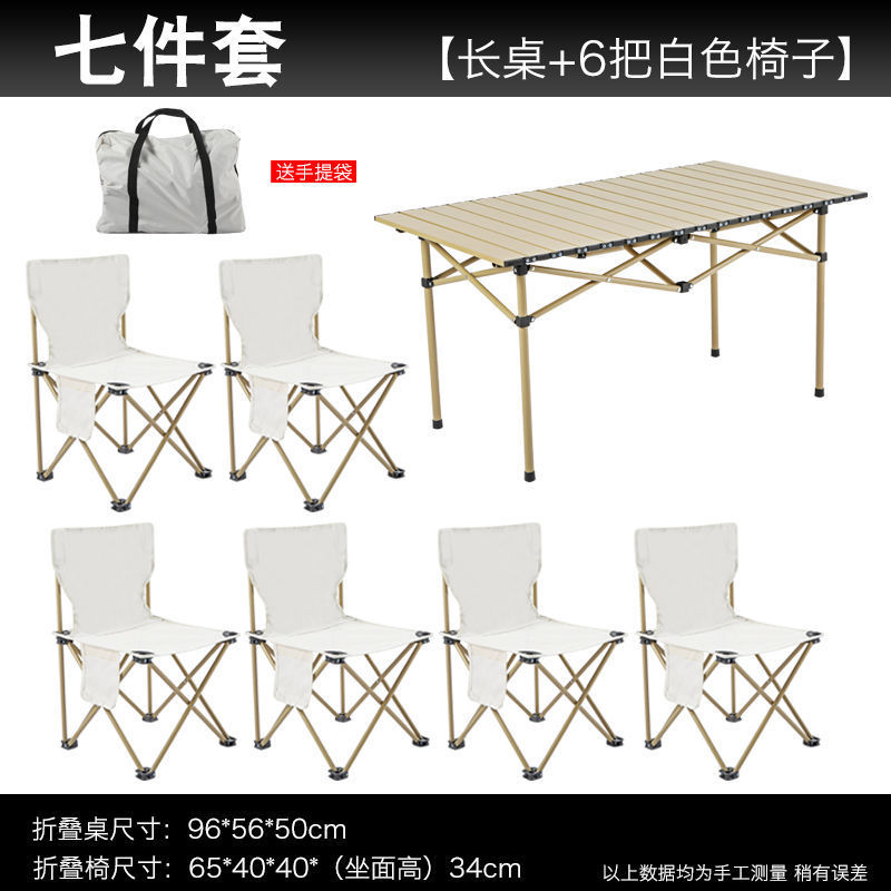 • 긴 테이블 + 대형 접이식 의자 6개 [무료 보관 가방]