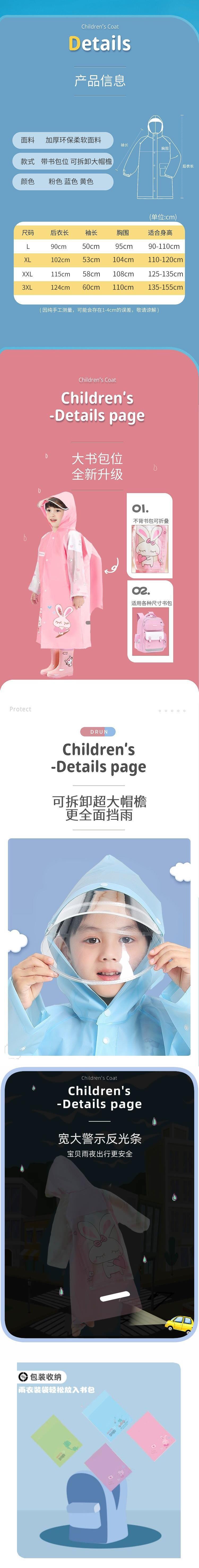 학생 및 어린이용 비옷, 책가방, 남아, 여아, 어린이용 비옷, 유치원생, 초등학생, 중대형 배송스토어 가기