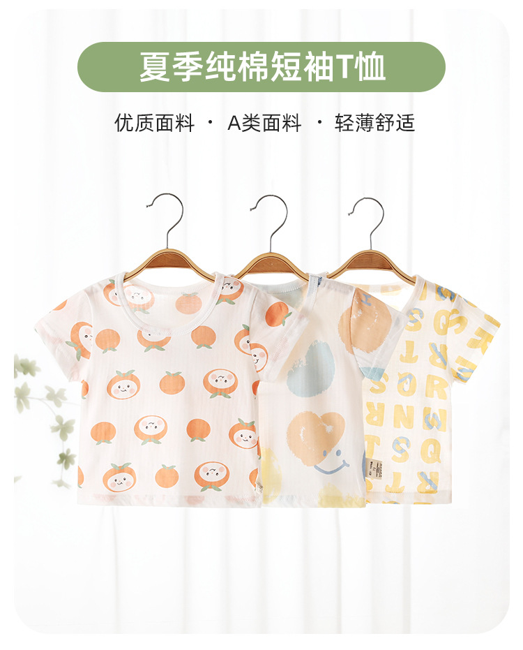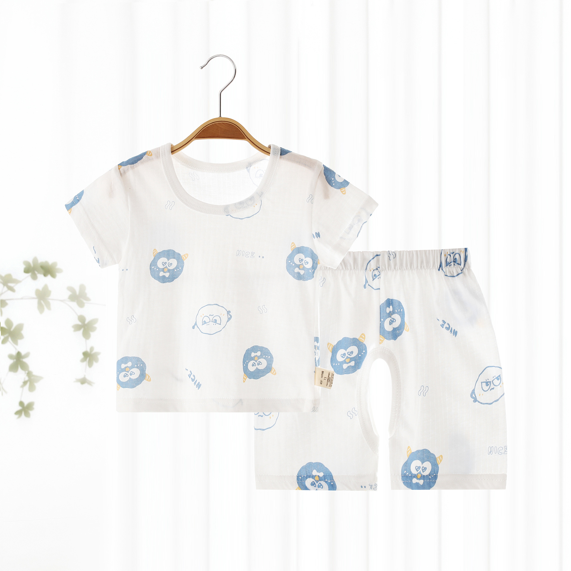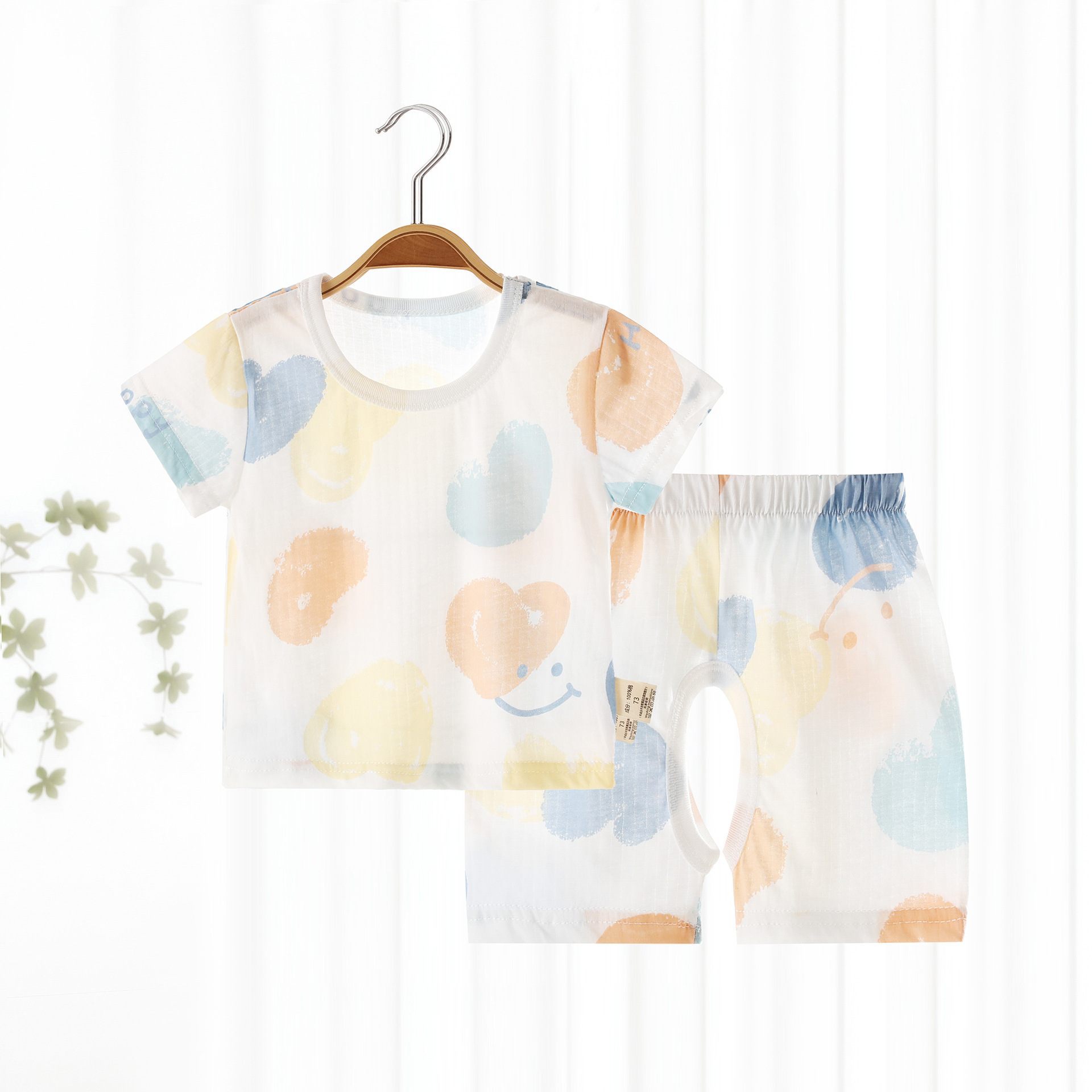 아동복 아기 여름 얇은 반팔 티셔츠 오픈 반바지 투피스 세트 아기 순면 카테고리 A 가정복