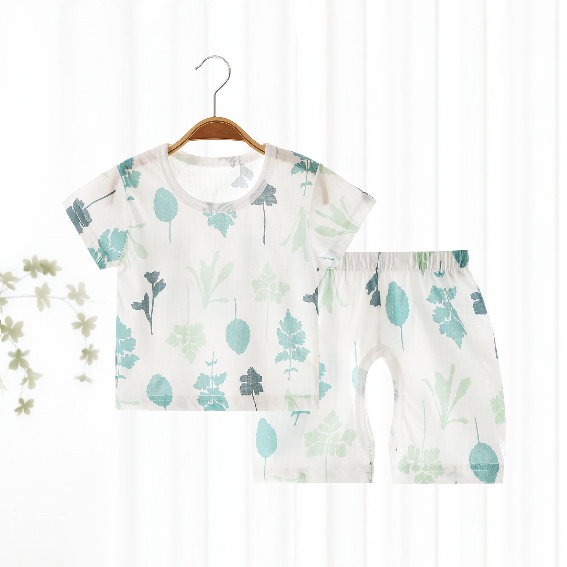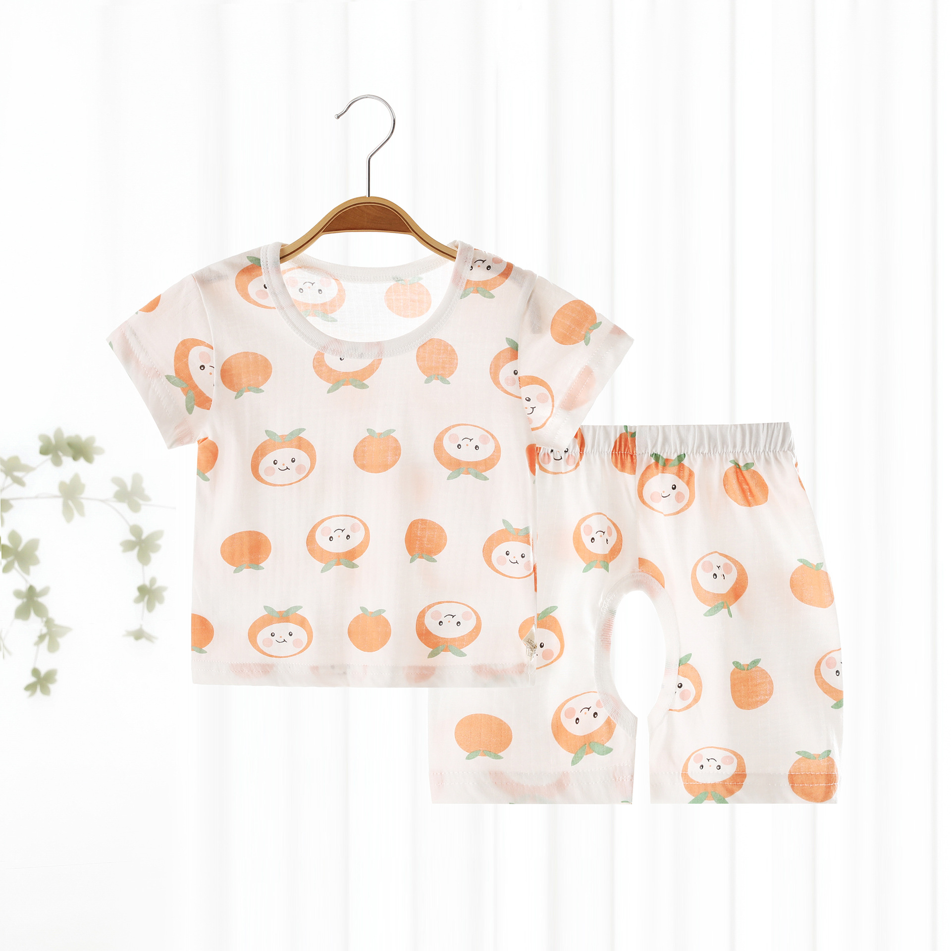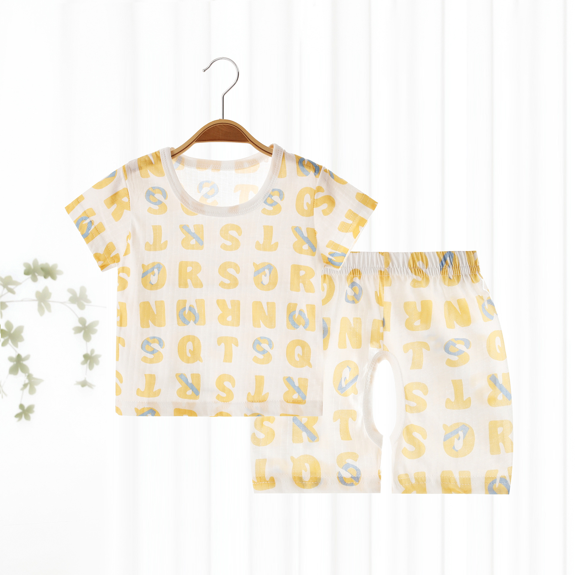 아동복 아기 여름 얇은 반팔 티셔츠 오픈 반바지 투피스 세트 아기 순면 카테고리 A 가정복