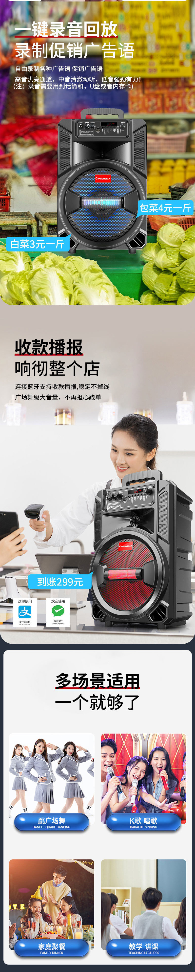 사운드 스퀘어 댄스 대용량 초대형 야외 트롤리 노래방 홈 판매 휴대용 휴대용 블루투스 스피커 도매스토어 가기