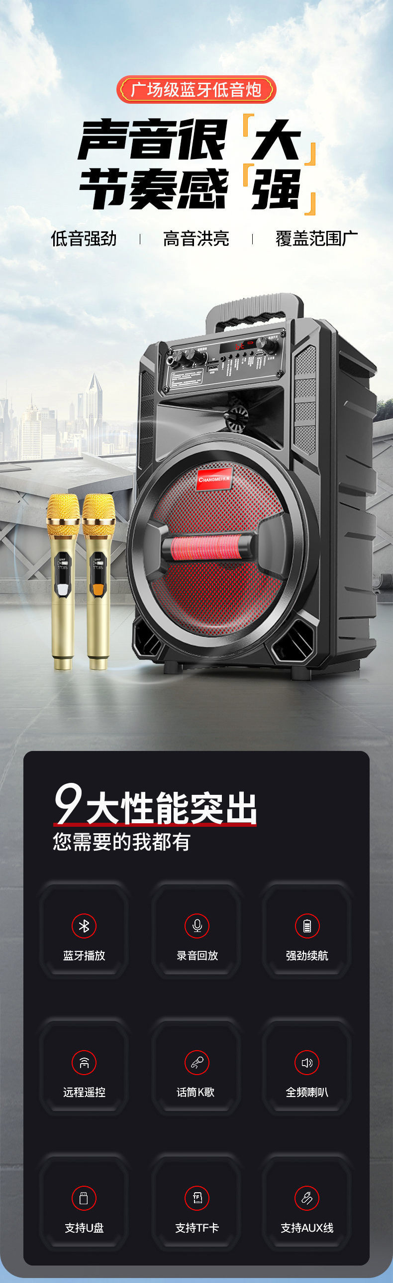 사운드 스퀘어 댄스 대용량 초대형 야외 트롤리 노래방 홈 판매 휴대용 휴대용 블루투스 스피커 도매