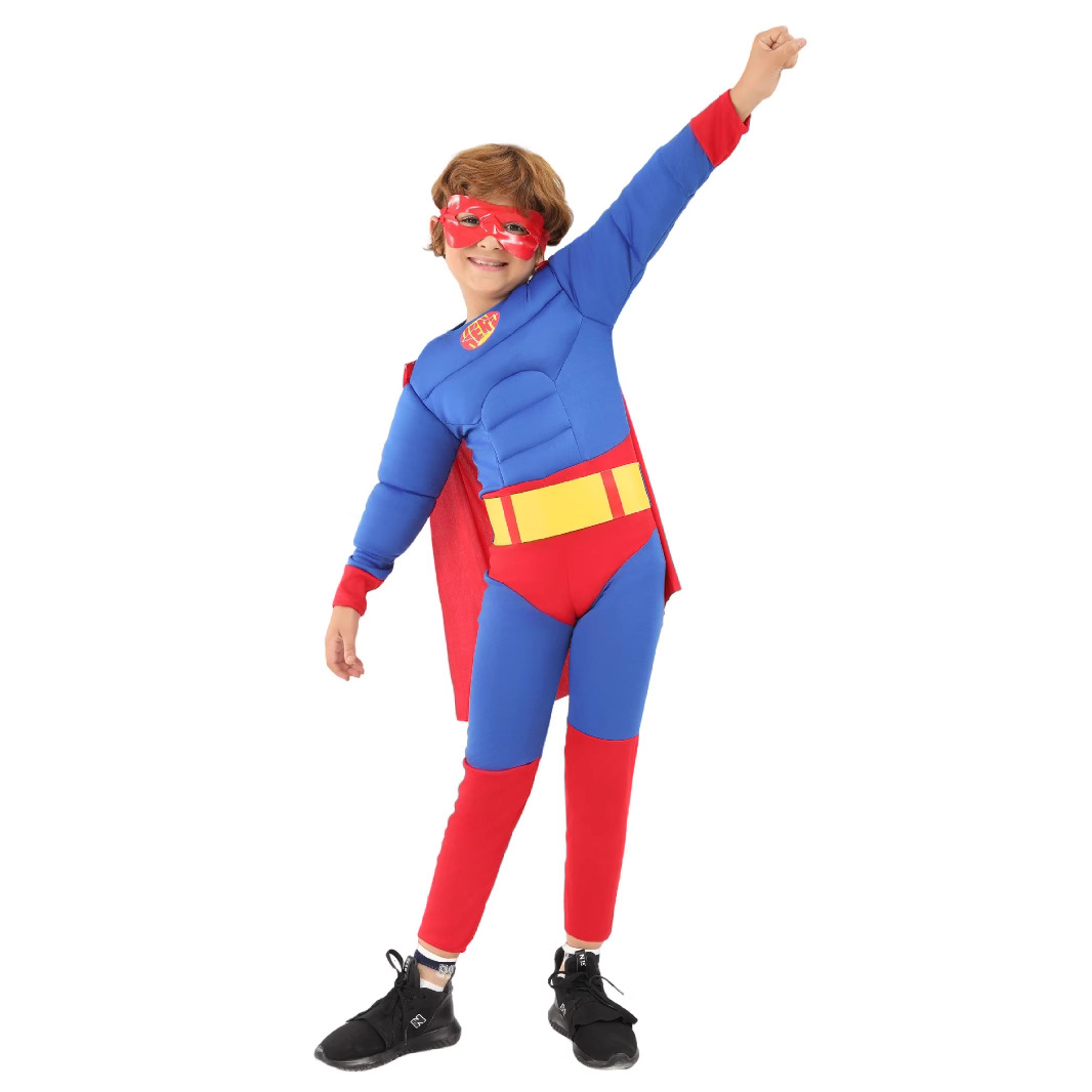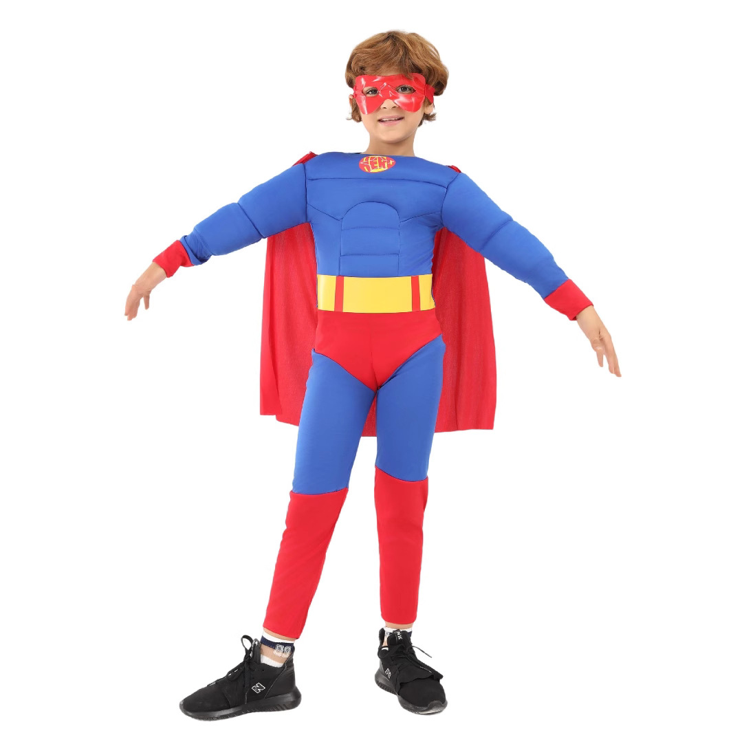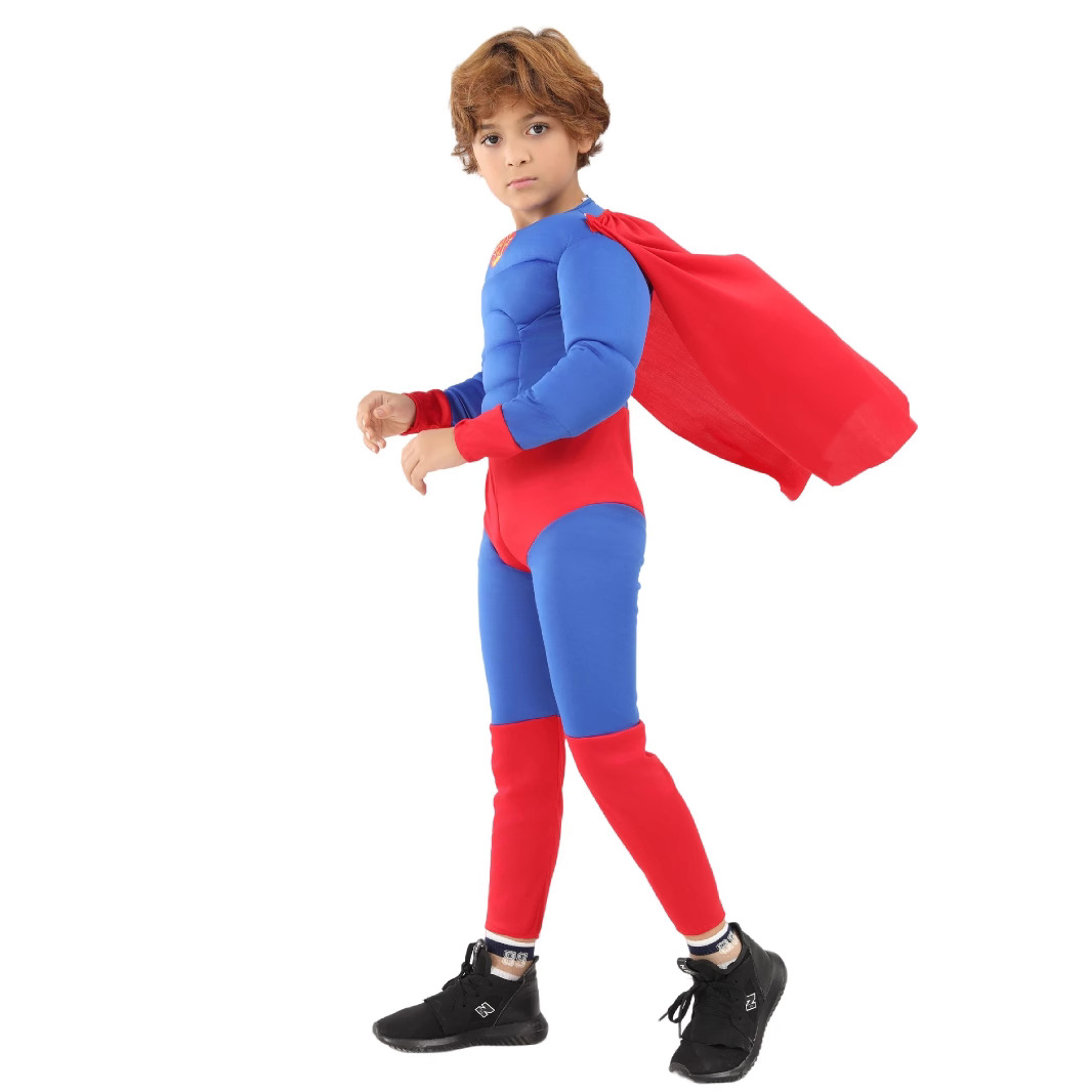 국경 간 어린이 슈퍼맨 슈퍼 히어로 어린이 사진 만화 놀이 기계 수 놓은 가슴 근육 할로윈 파티 의상스토어 가기