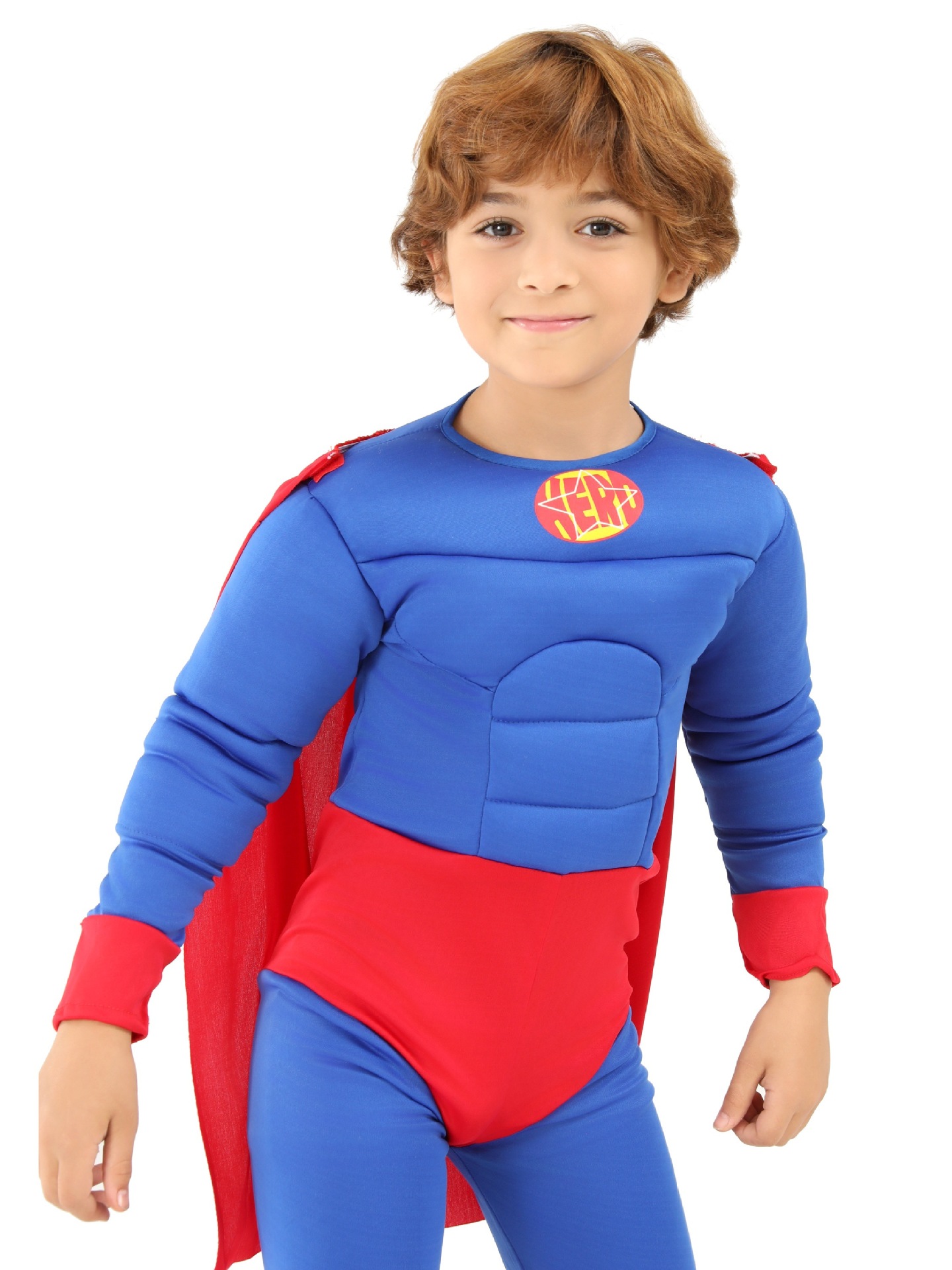 국경 간 어린이 슈퍼맨 슈퍼 히어로 어린이 사진 만화 놀이 기계 수 놓은 가슴 근육 할로윈 파티 의상