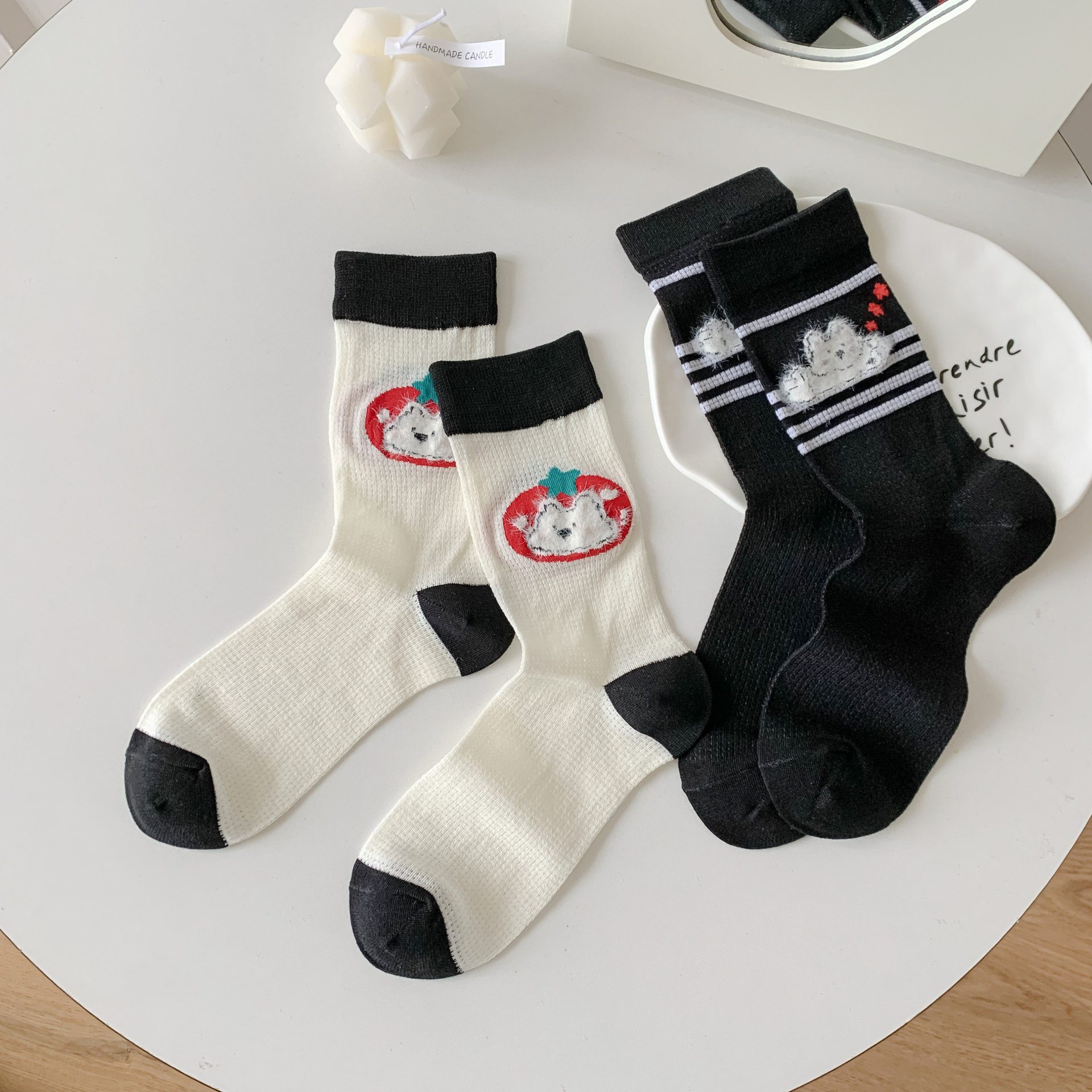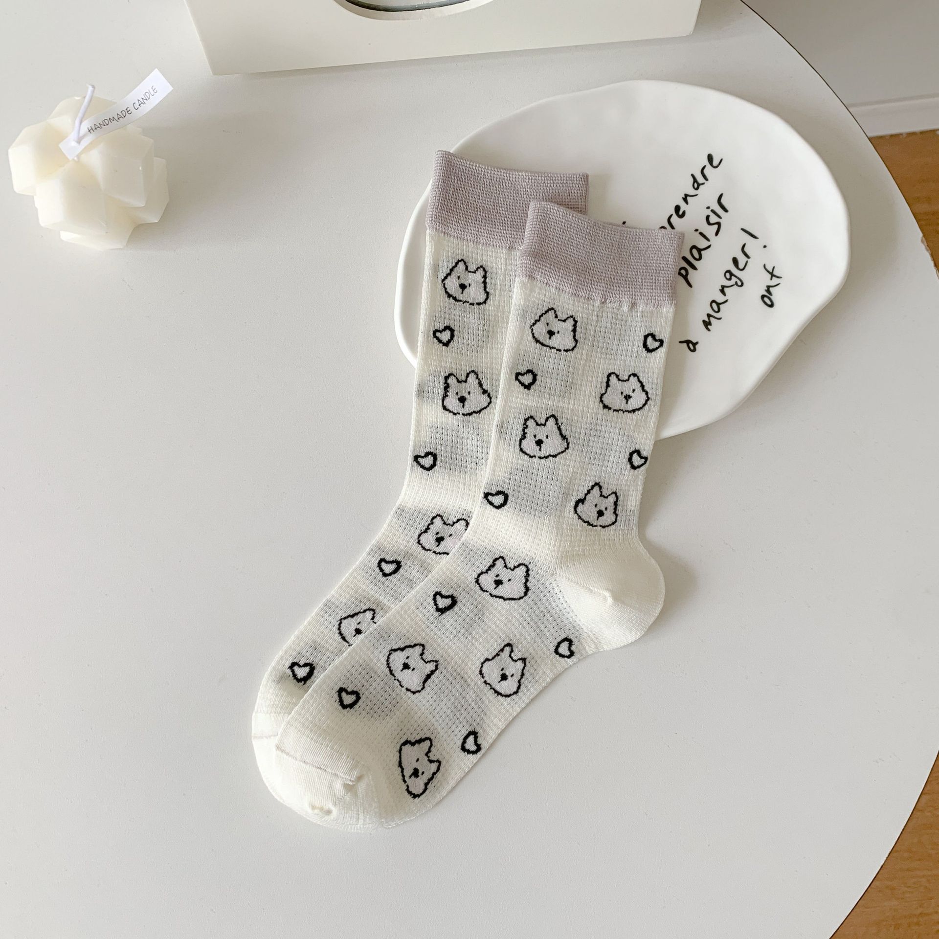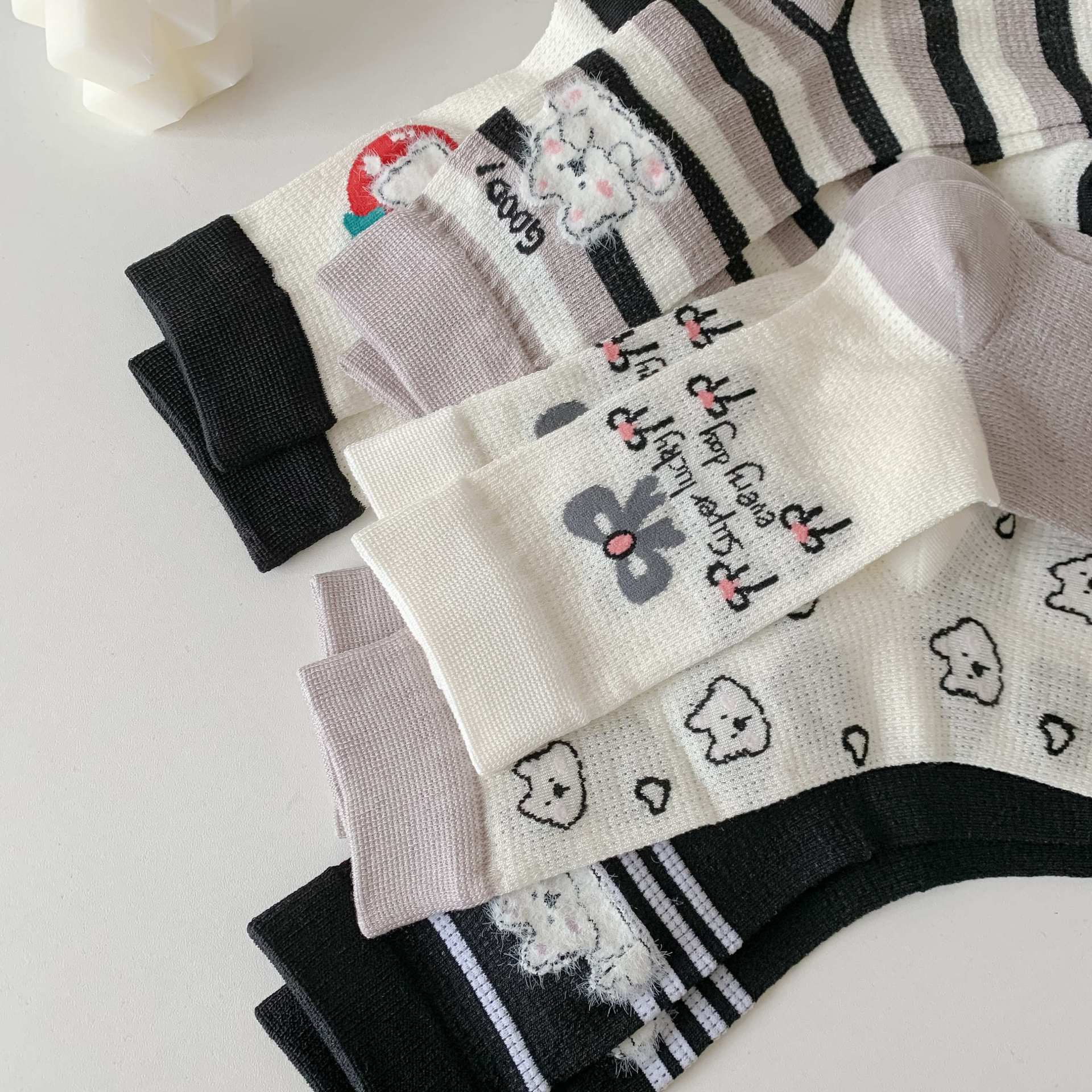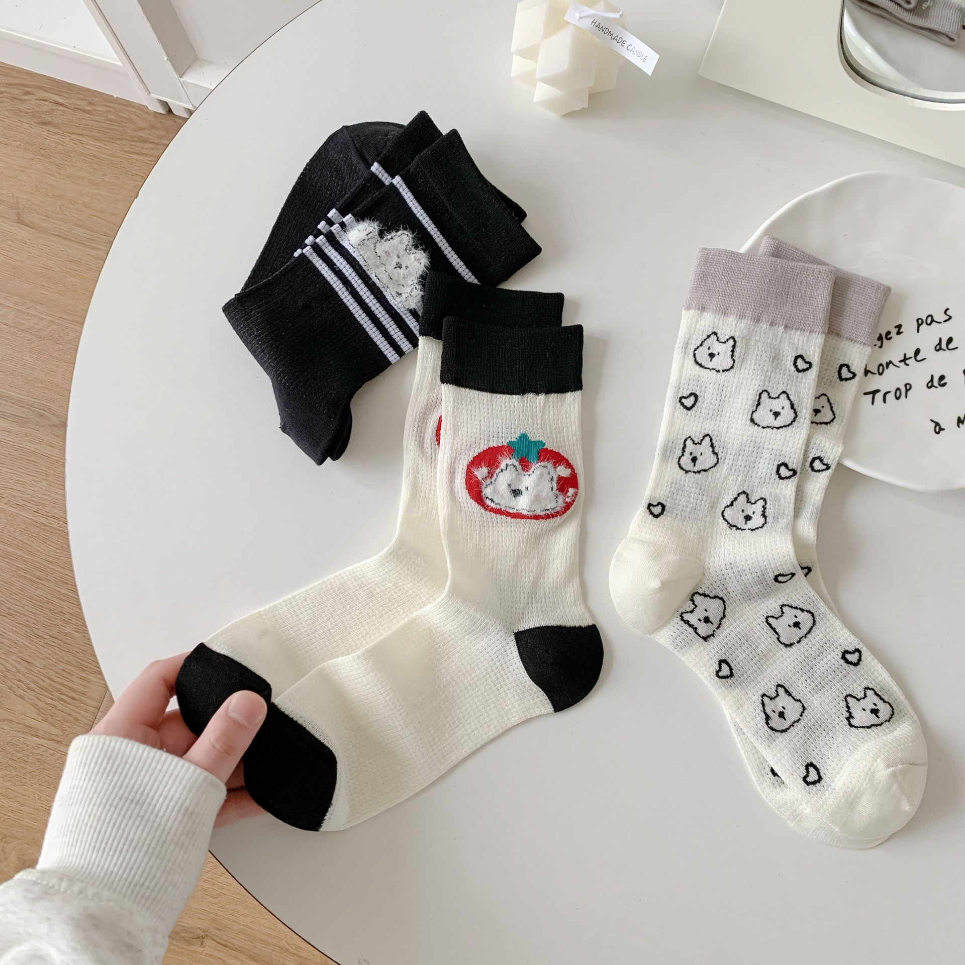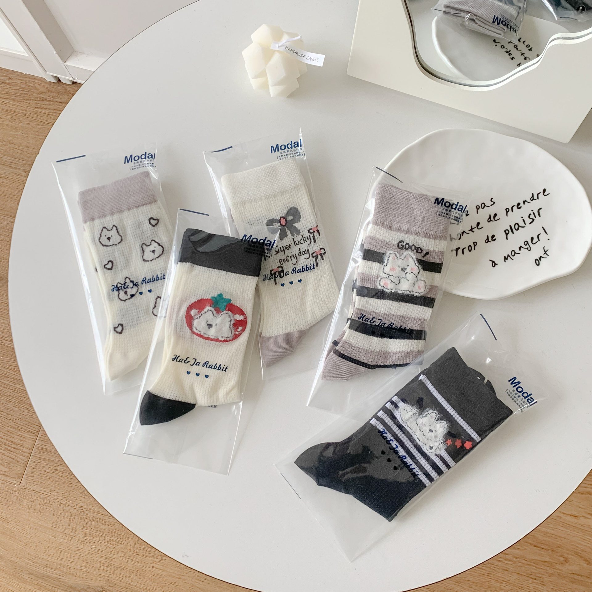 봄과 가을 꽃밭 토끼 귀여운 중목 양말 만화 강아지 줄무늬 리본 패턴 달콤한 모달 여름 여성 양말