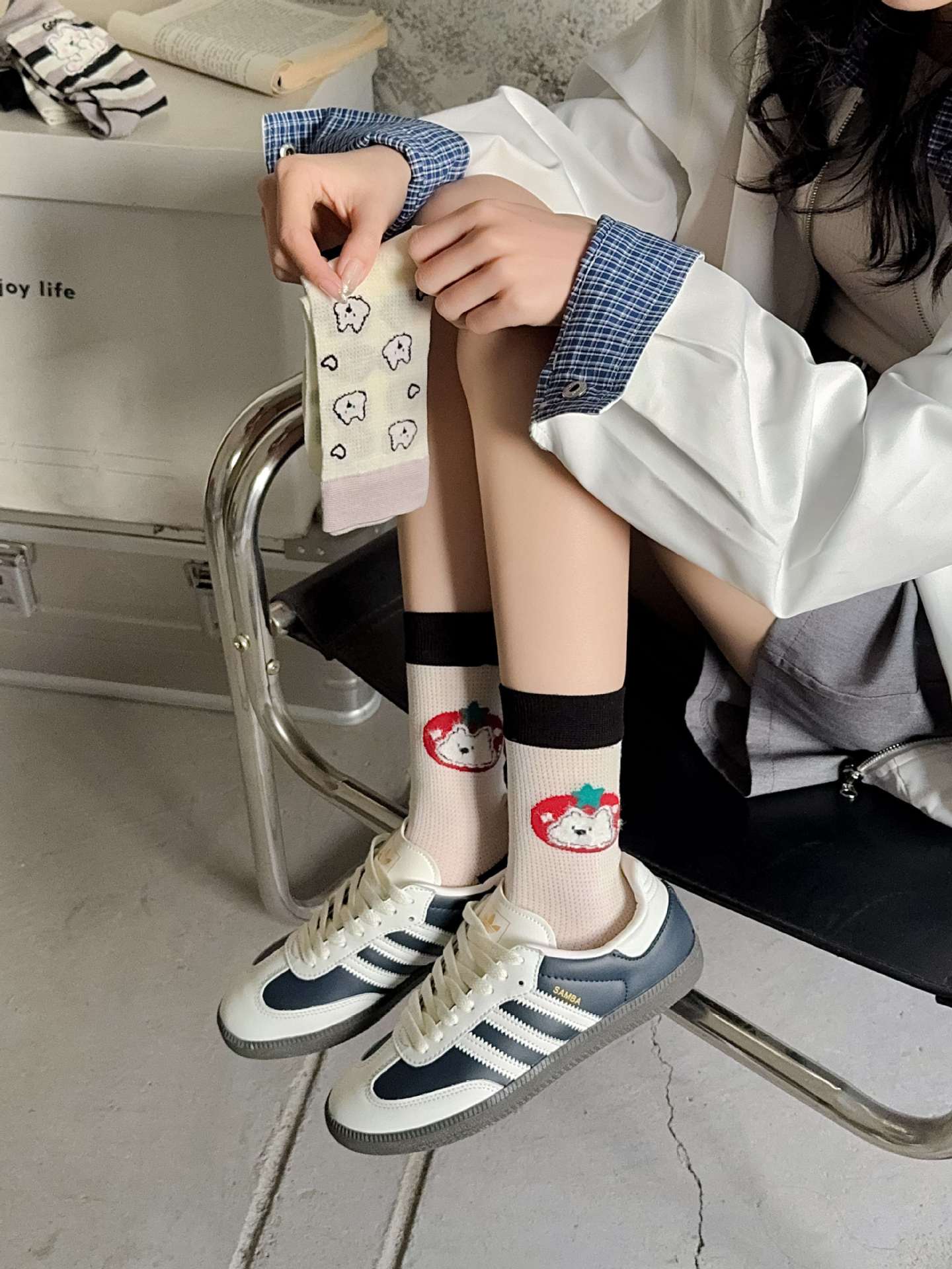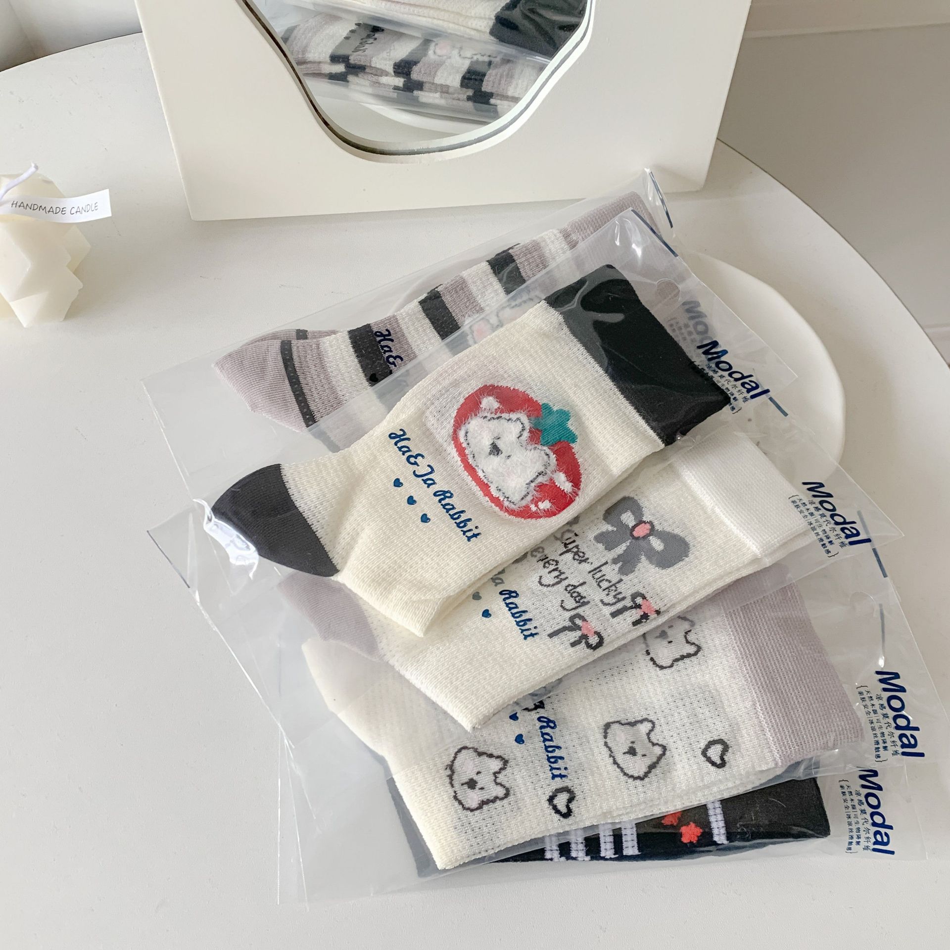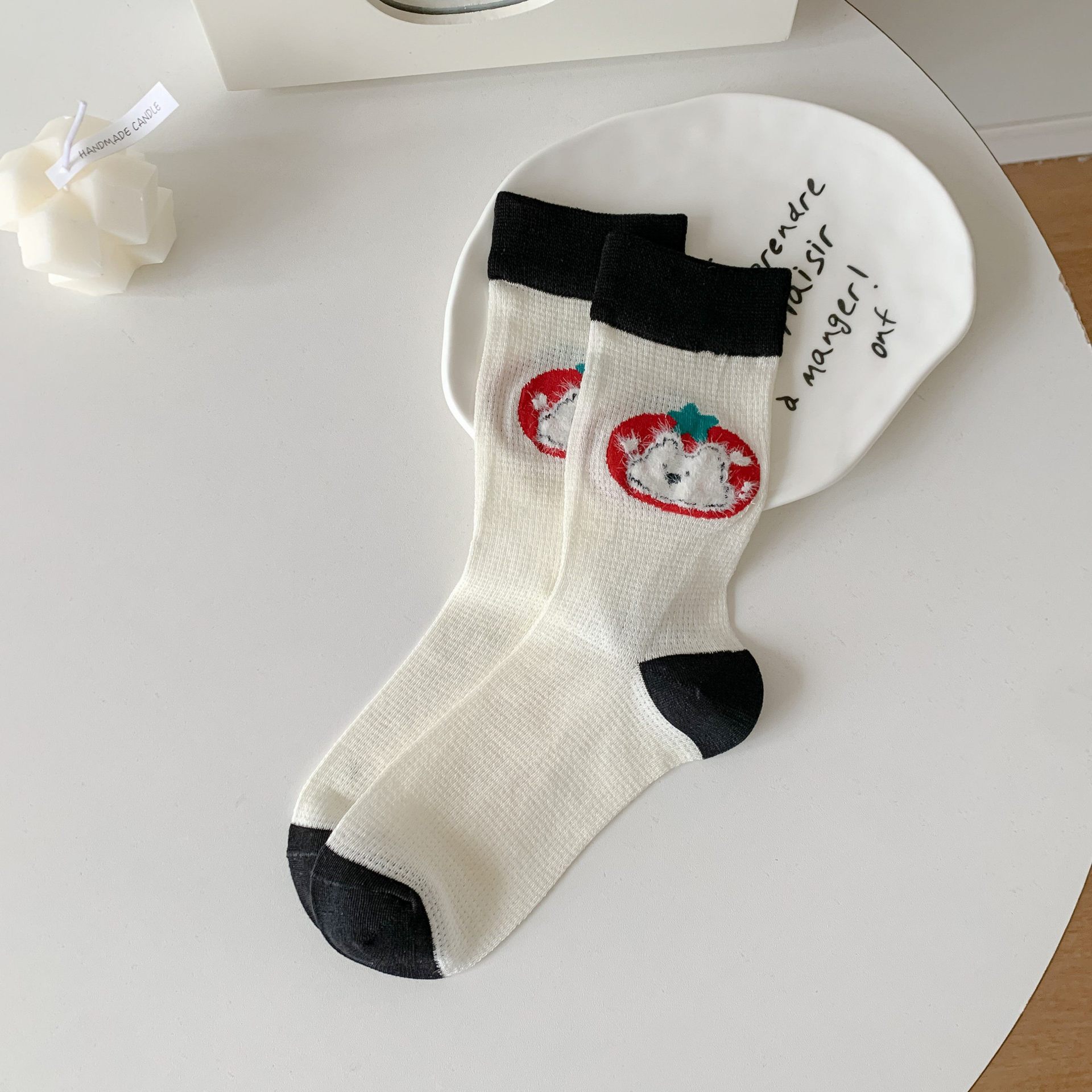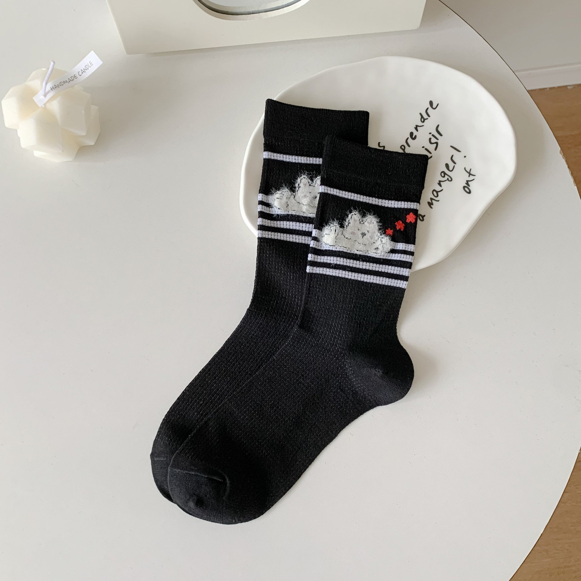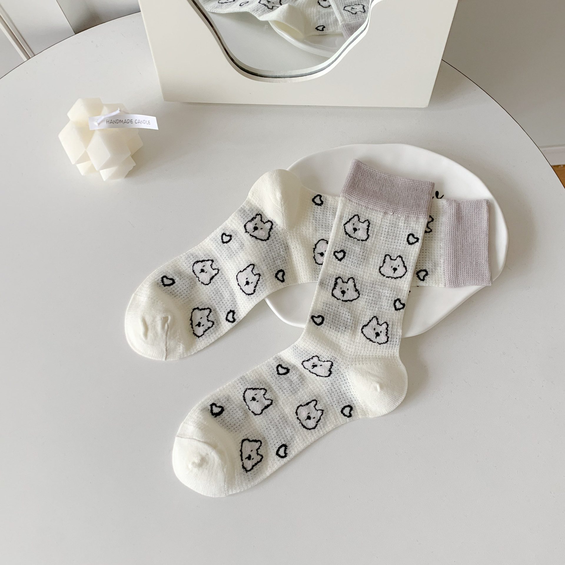 봄과 가을 꽃밭 토끼 귀여운 중목 양말 만화 강아지 줄무늬 리본 패턴 달콤한 모달 여름 여성 양말