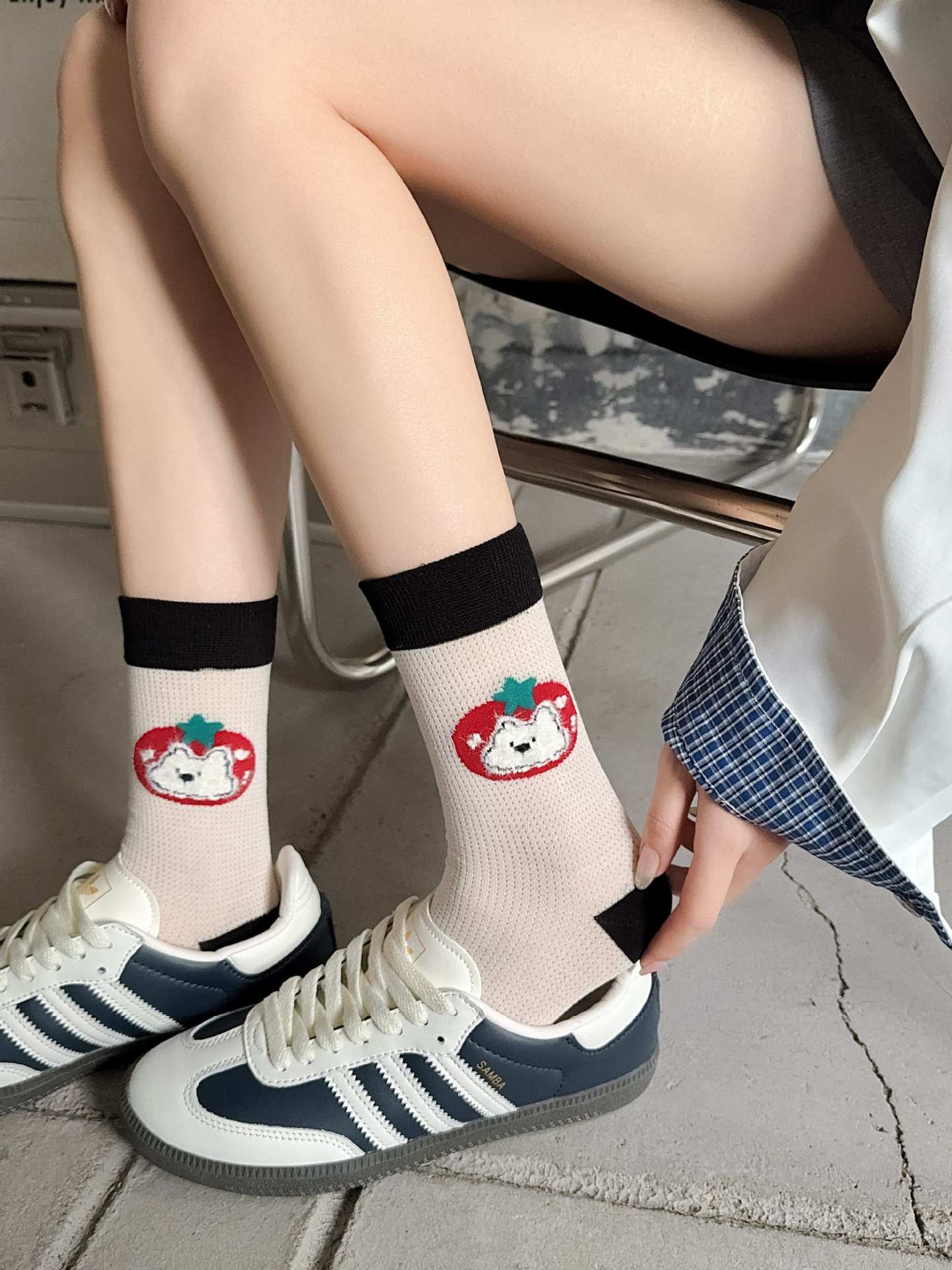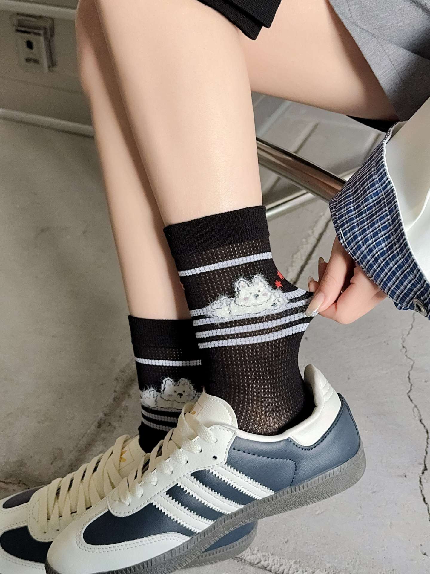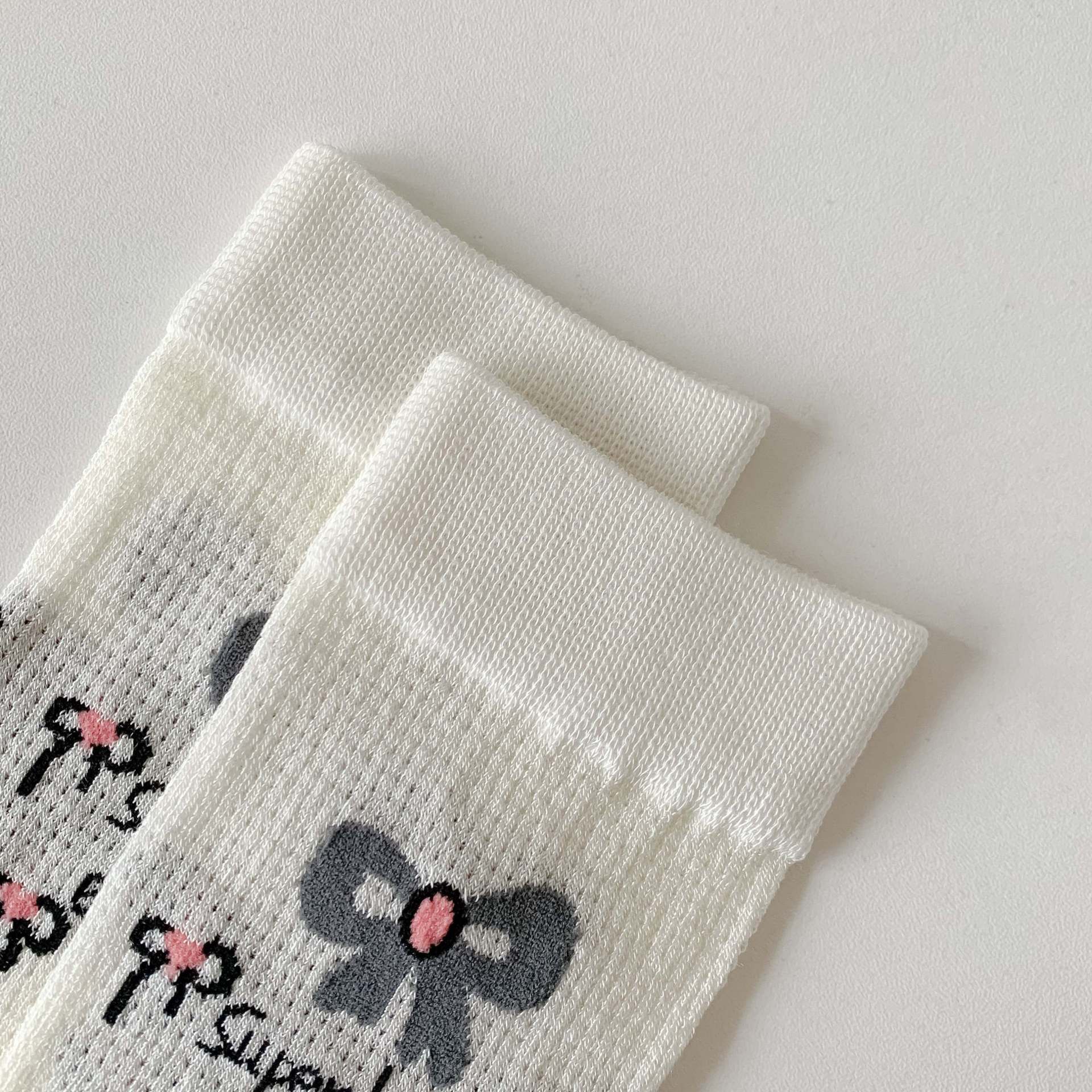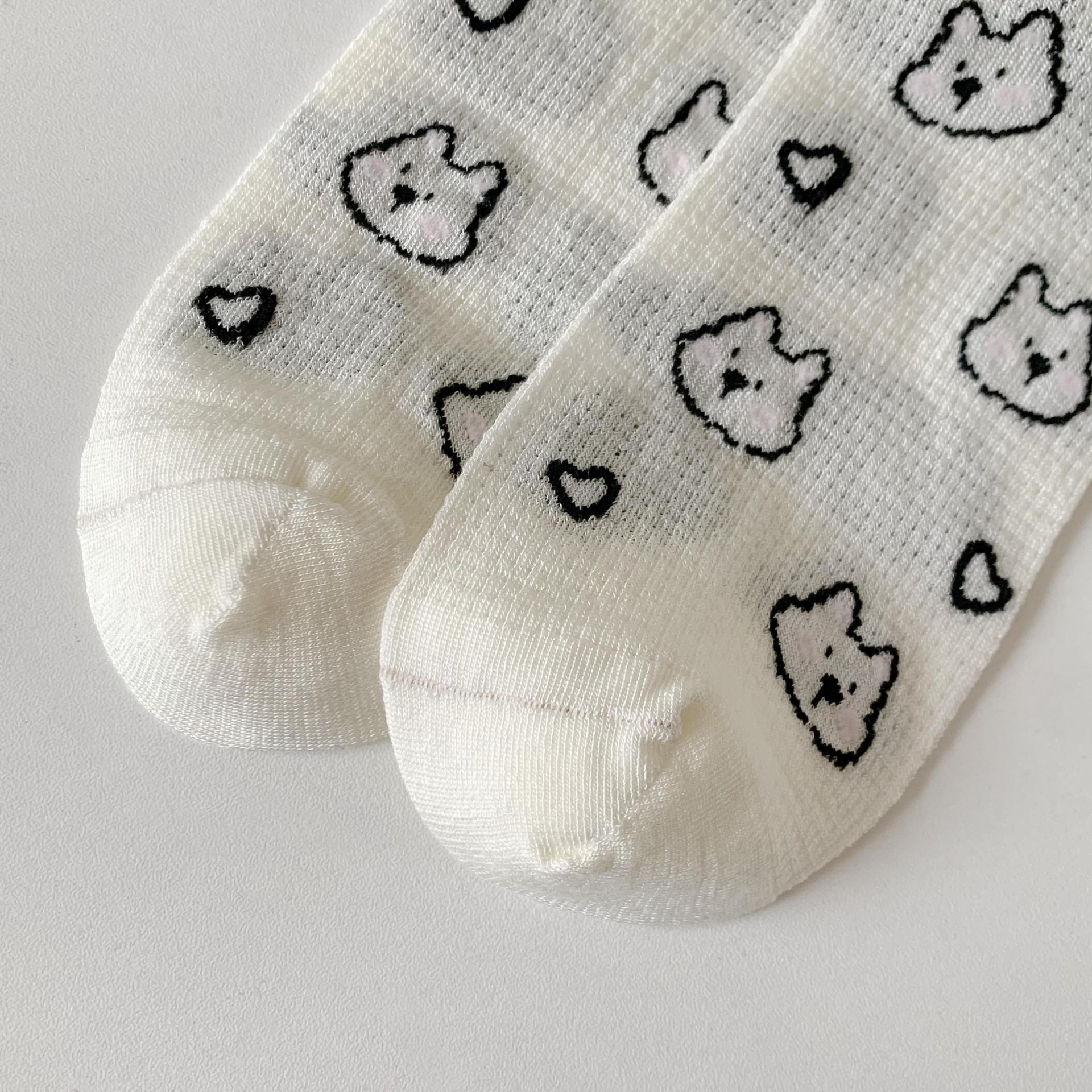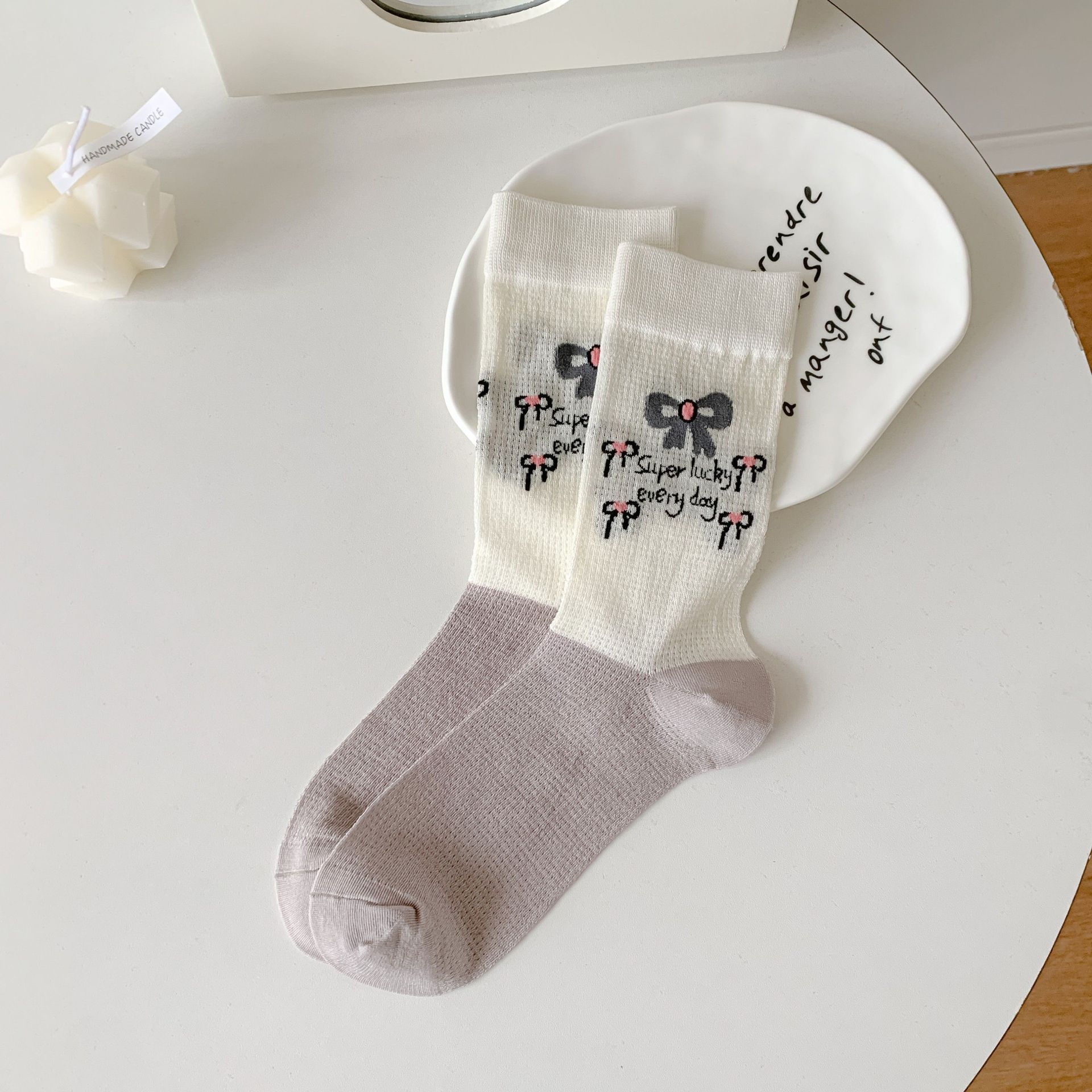 봄과 가을 꽃밭 토끼 귀여운 중목 양말 만화 강아지 줄무늬 리본 패턴 달콤한 모달 여름 여성 양말