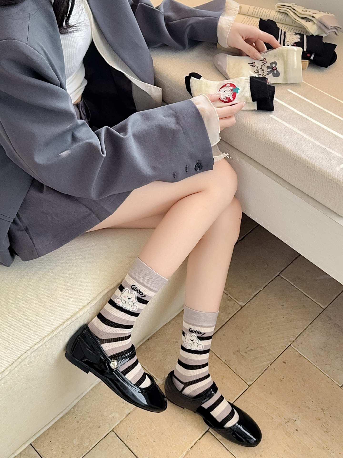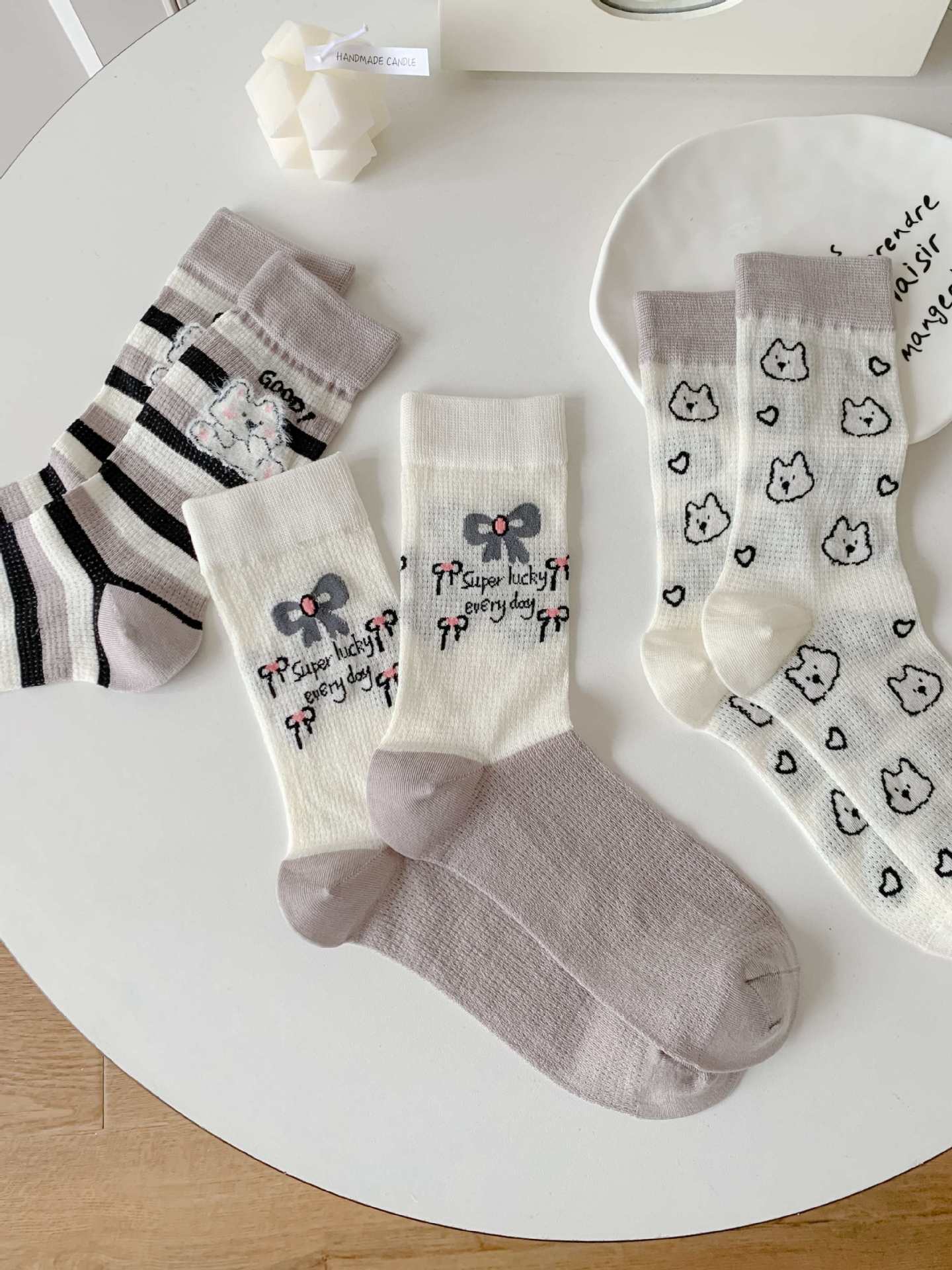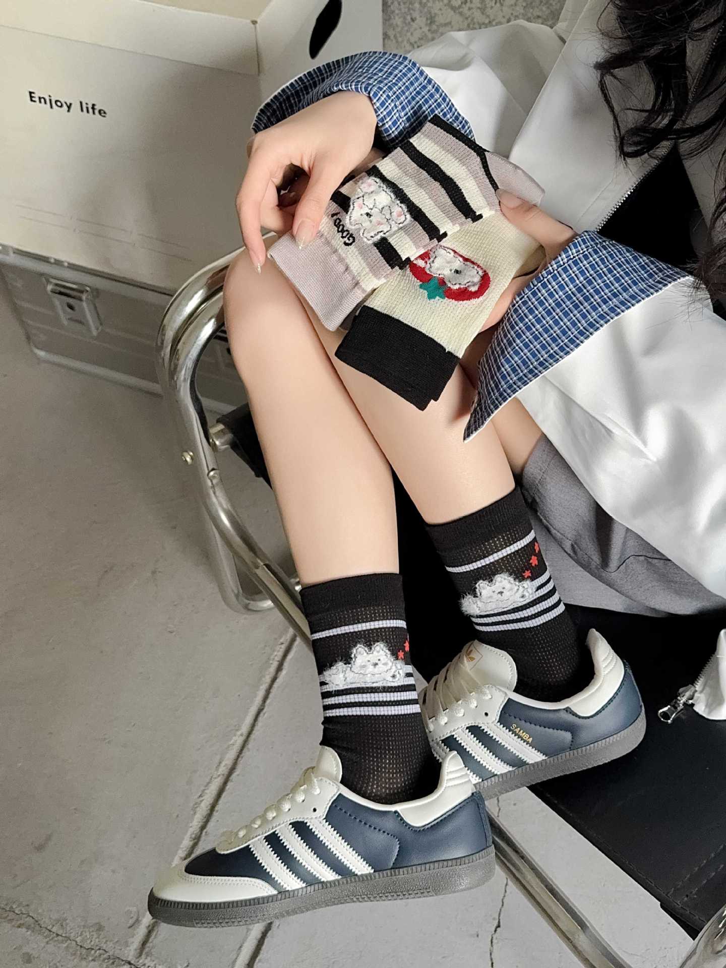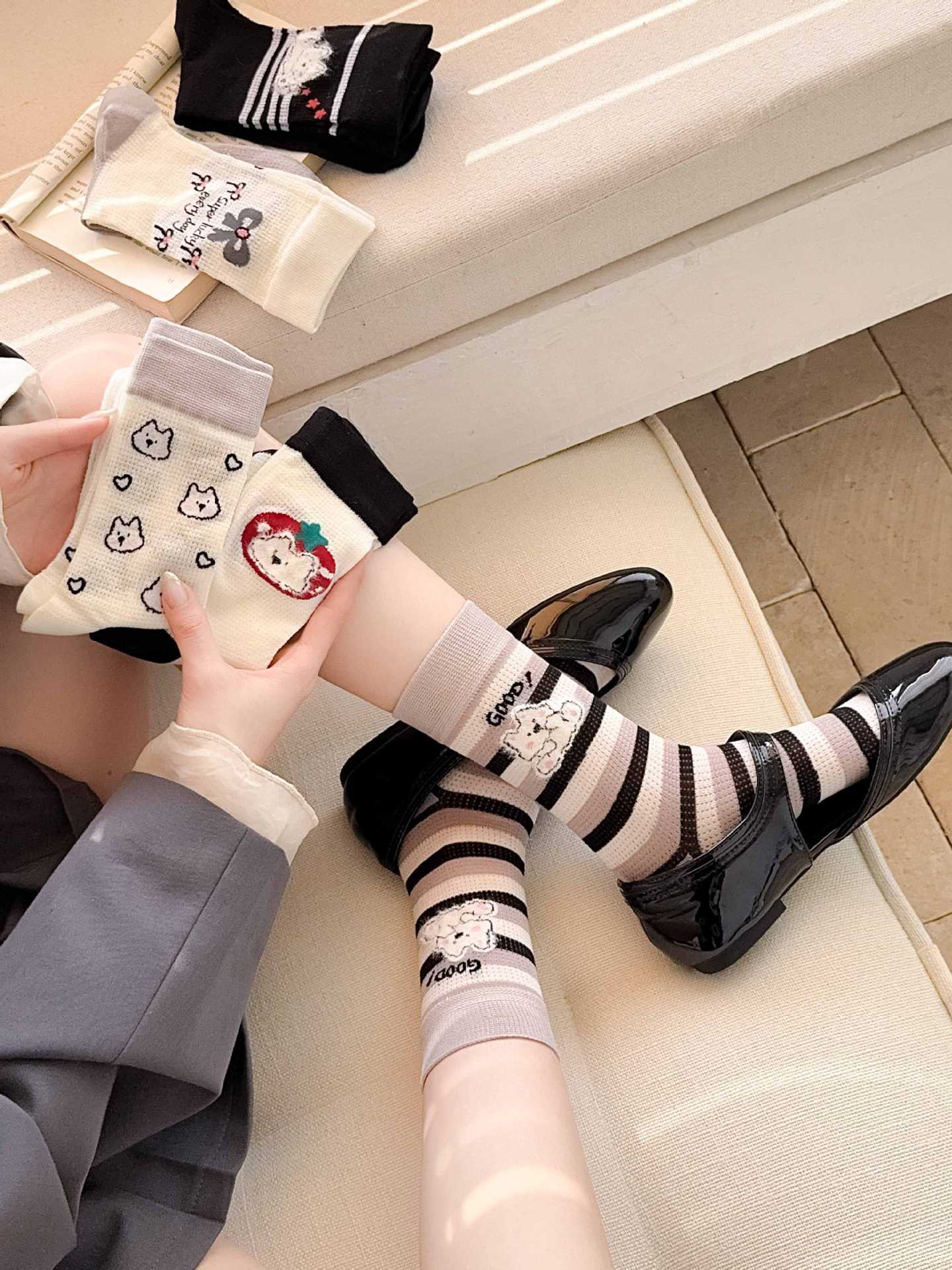 봄과 가을 꽃밭 토끼 귀여운 중목 양말 만화 강아지 줄무늬 리본 패턴 달콤한 모달 여름 여성 양말스토어 가기