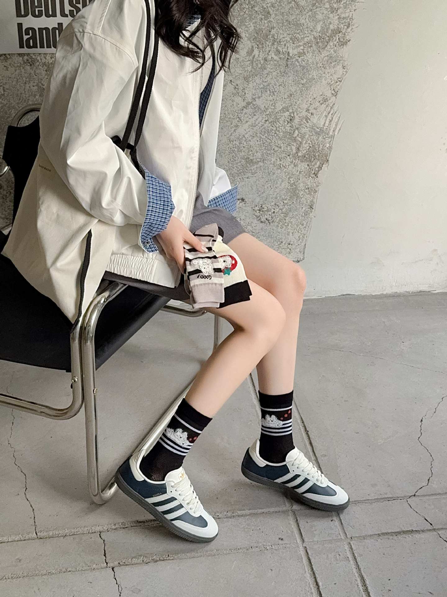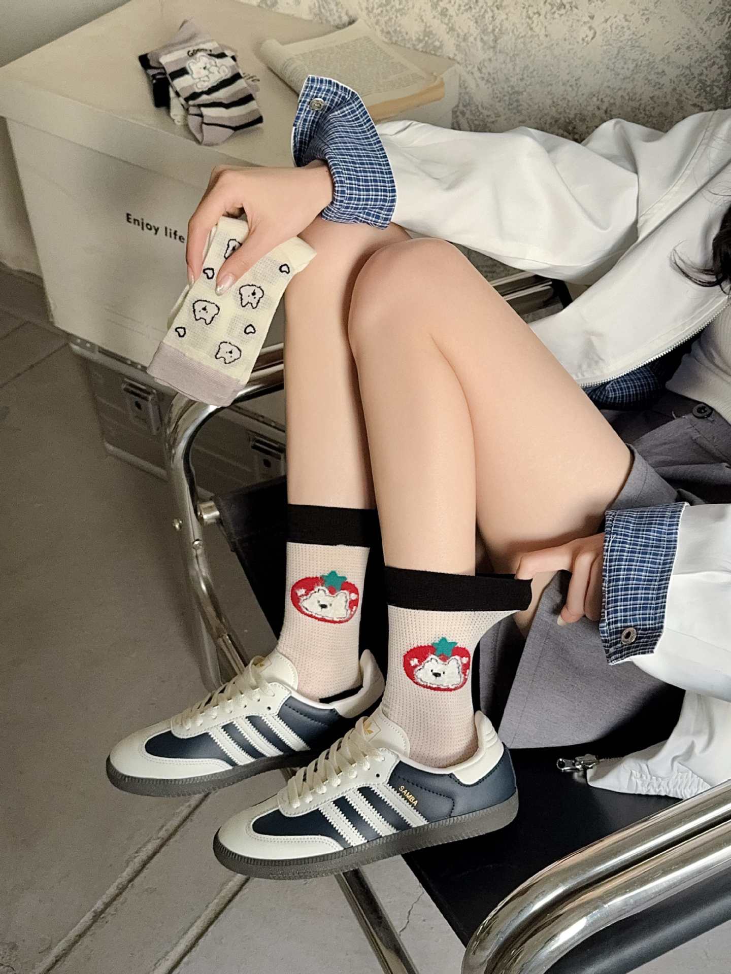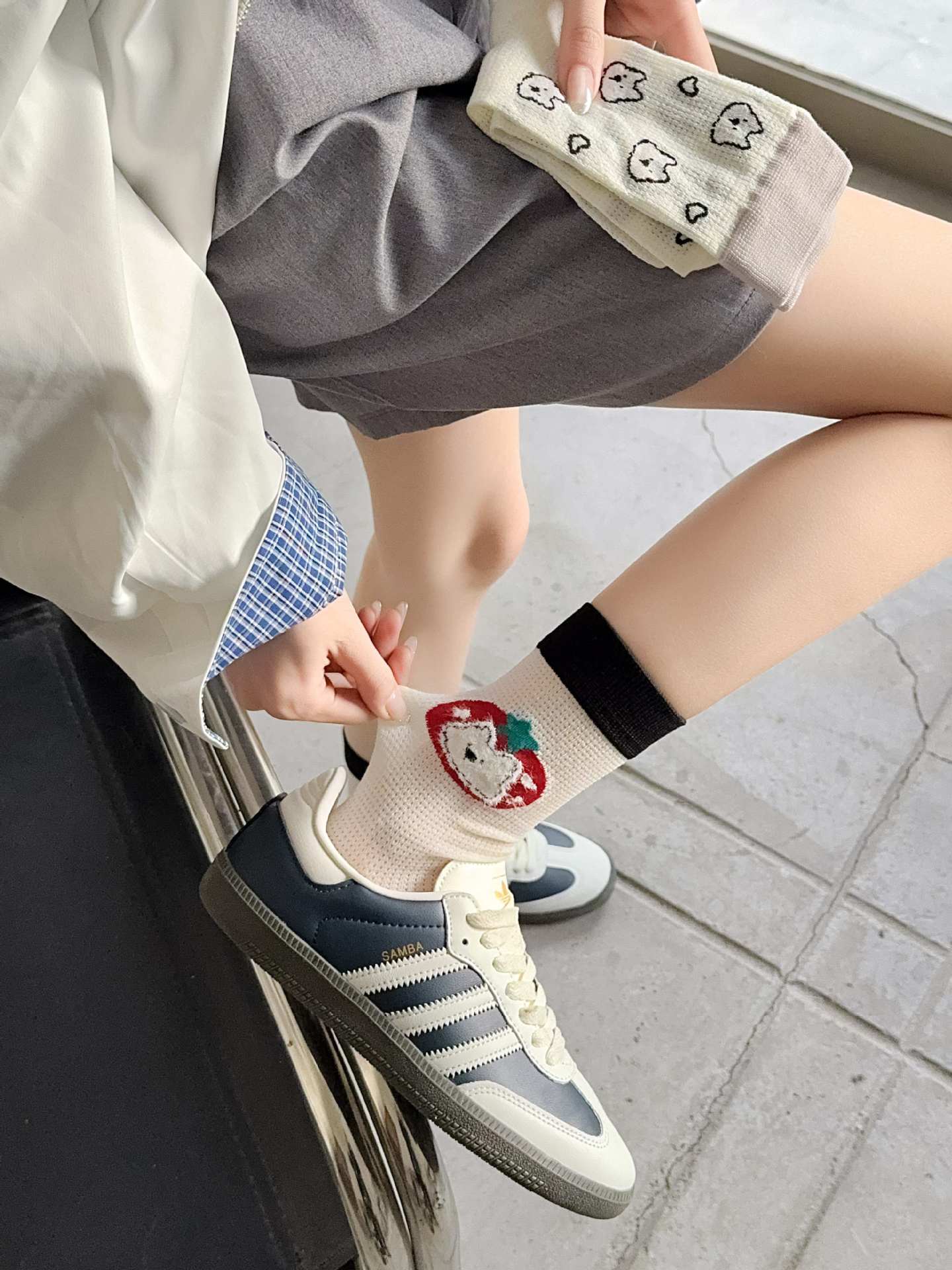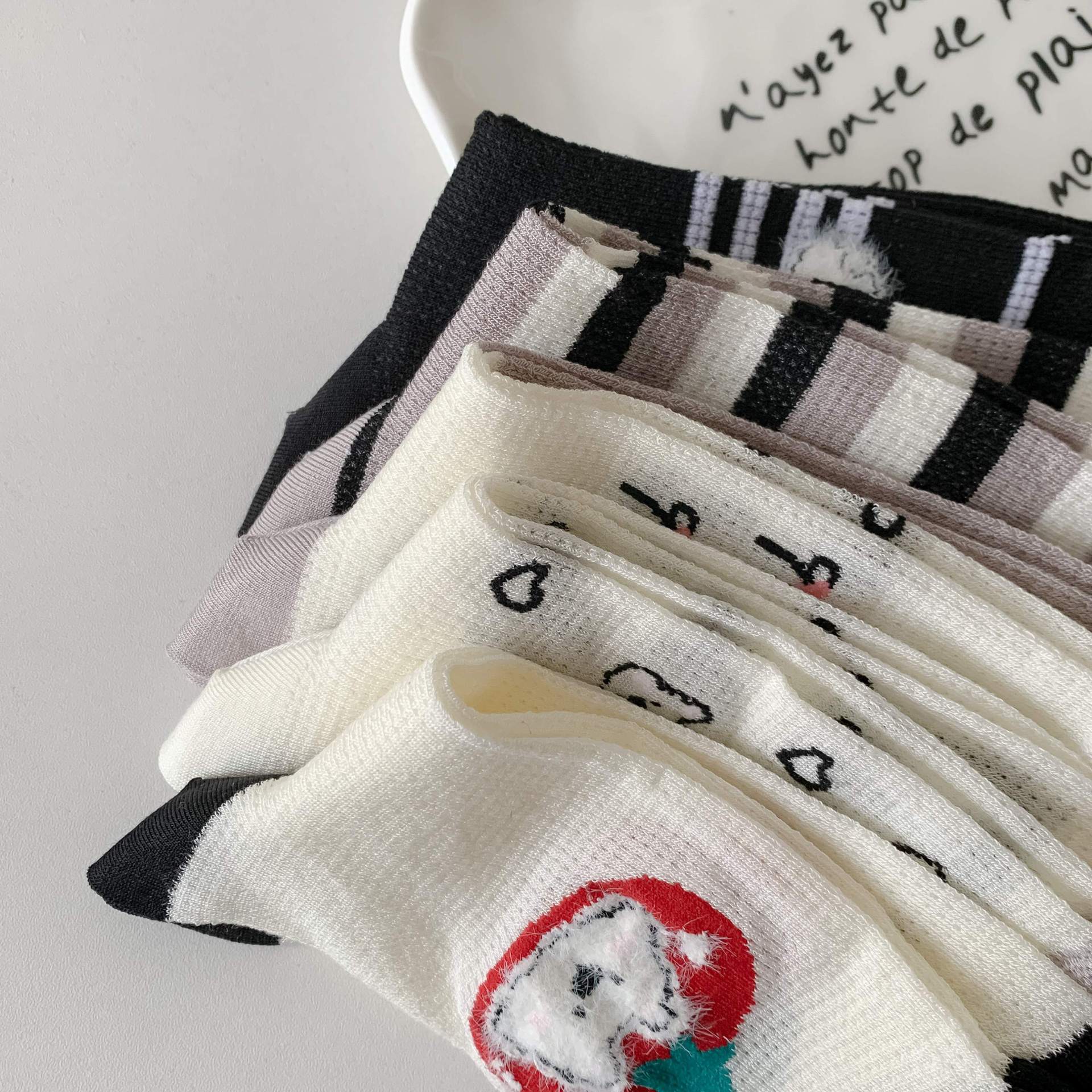 봄과 가을 꽃밭 토끼 귀여운 중목 양말 만화 강아지 줄무늬 리본 패턴 달콤한 모달 여름 여성 양말스토어 가기