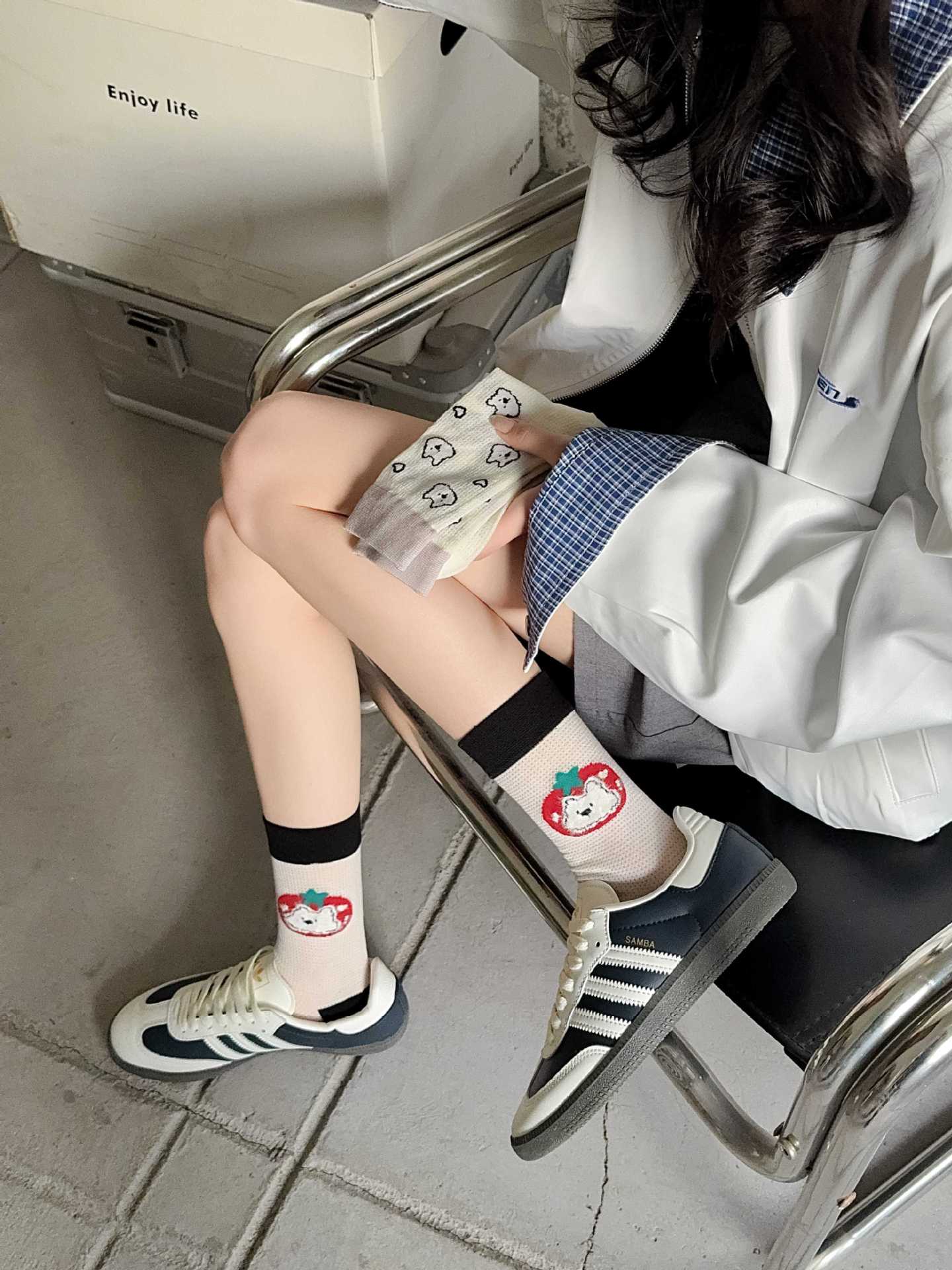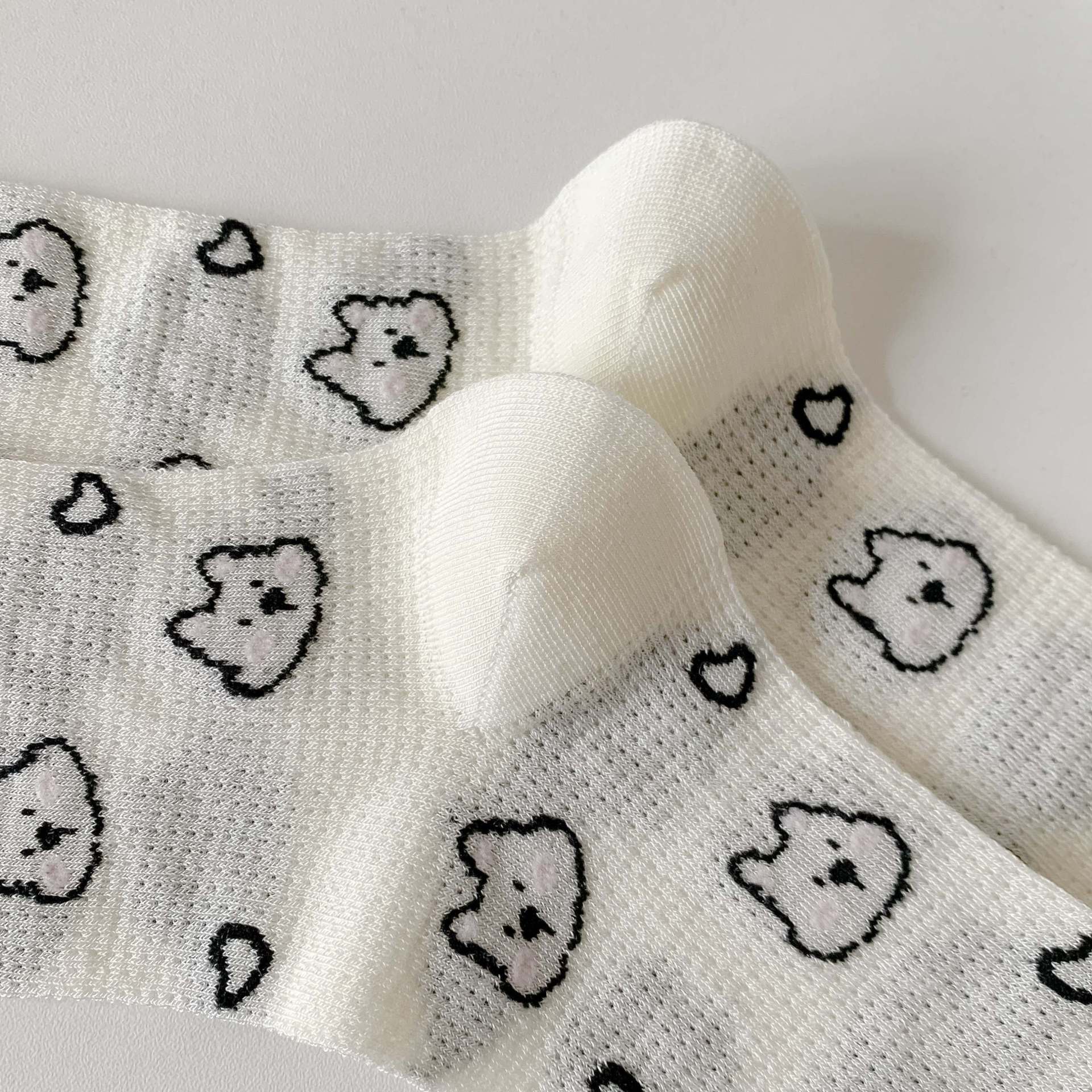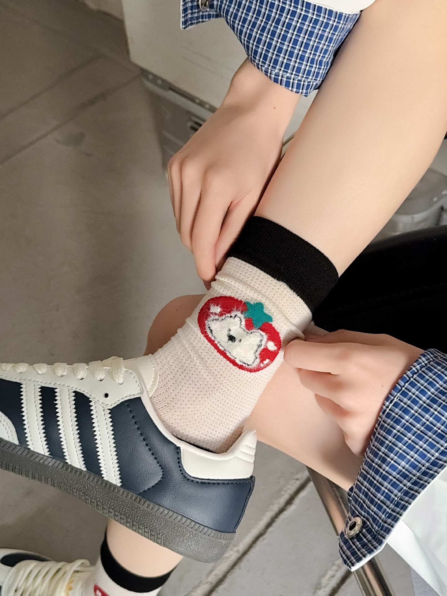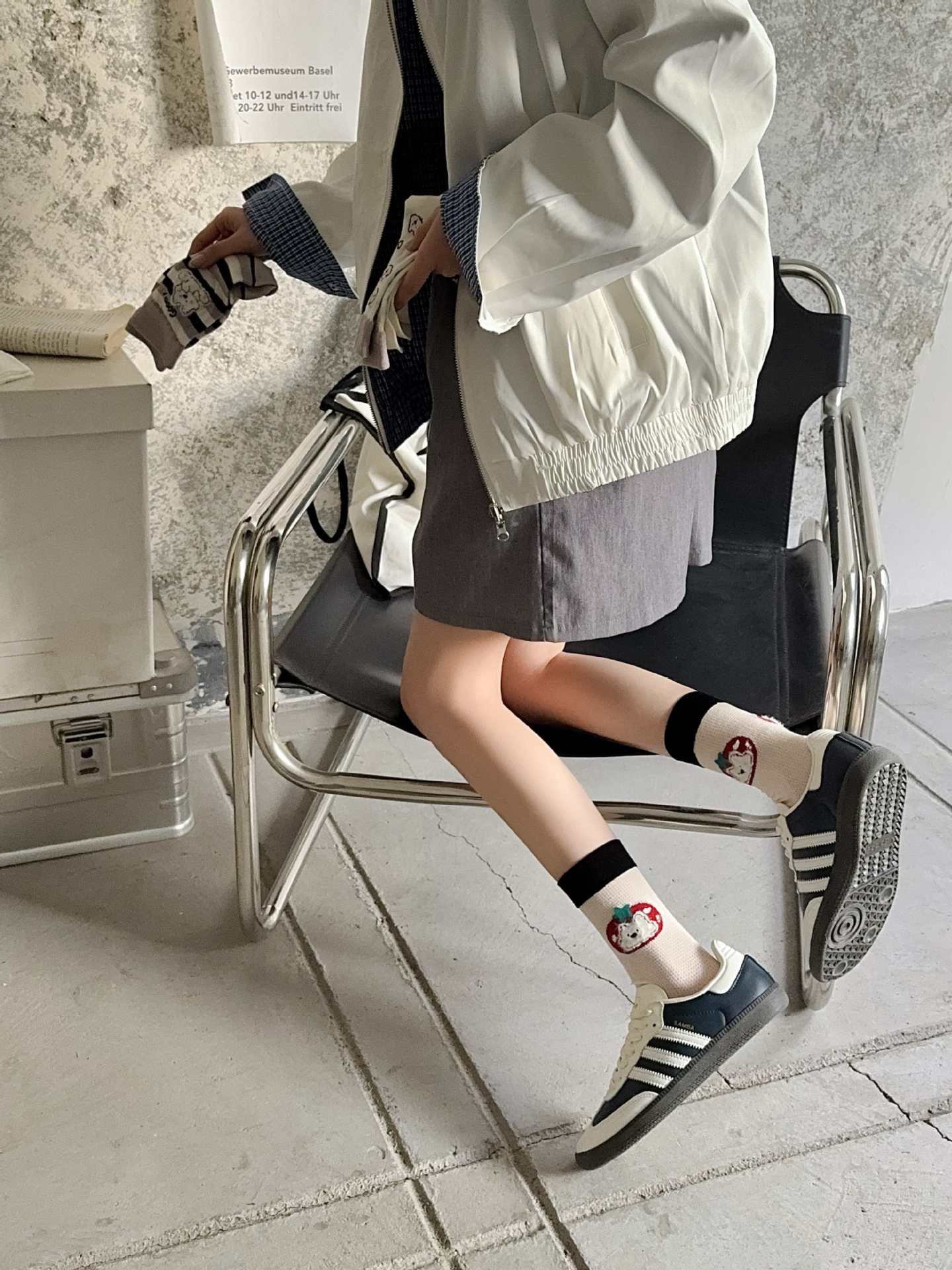 봄과 가을 꽃밭 토끼 귀여운 중목 양말 만화 강아지 줄무늬 리본 패턴 달콤한 모달 여름 여성 양말스토어 가기