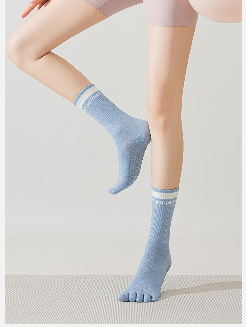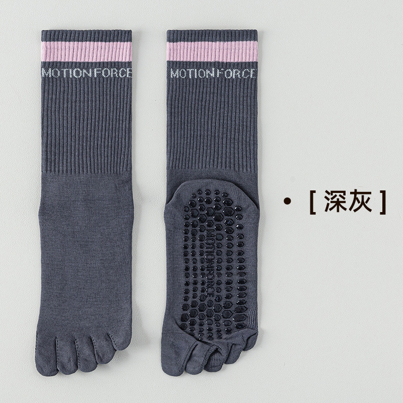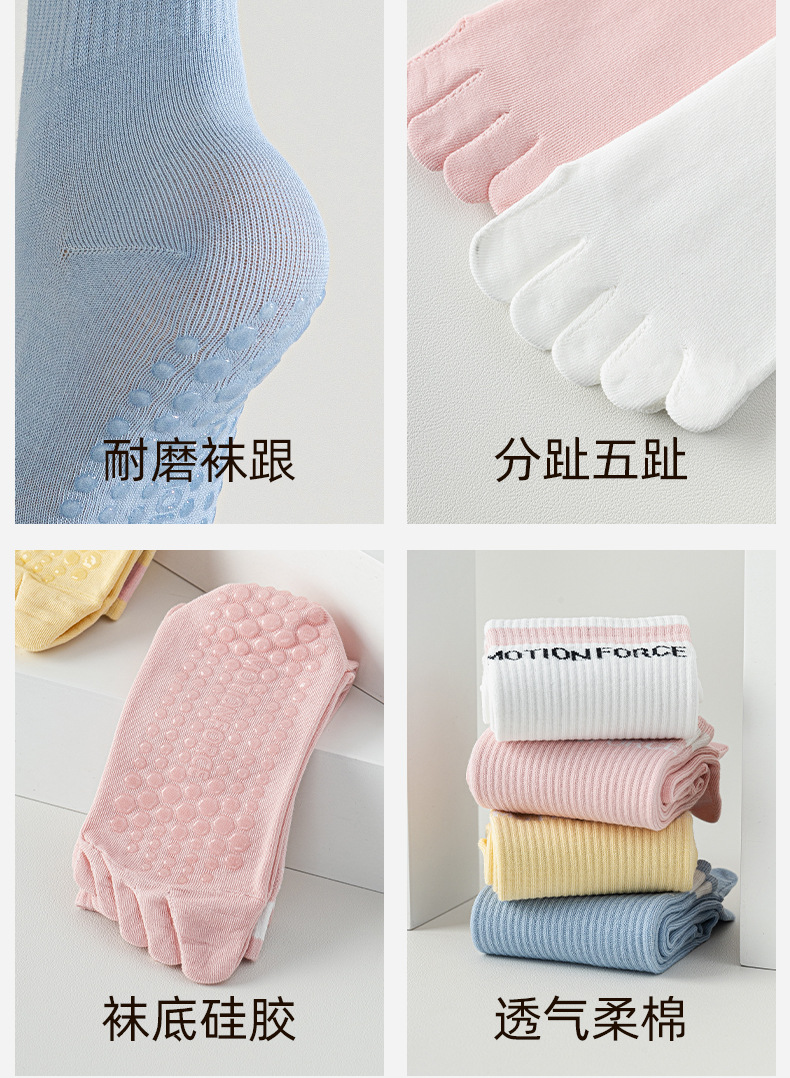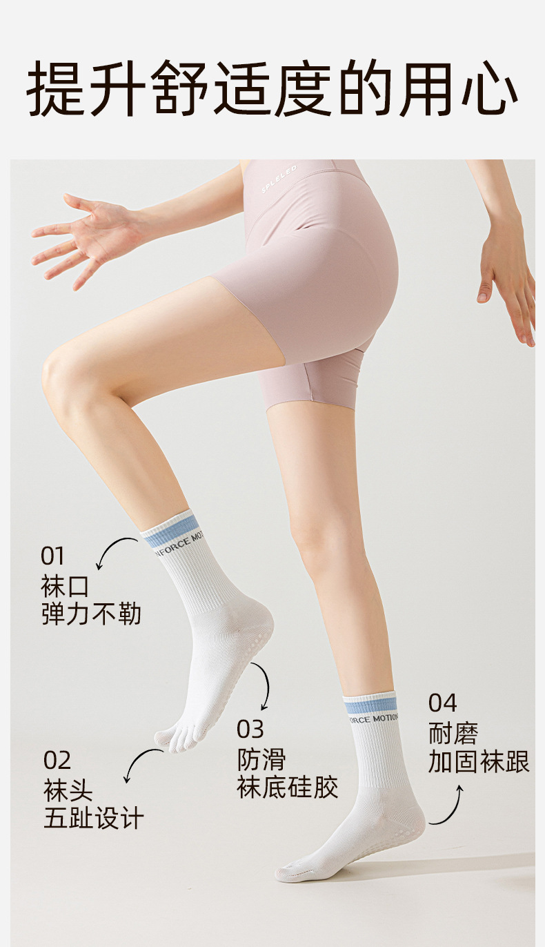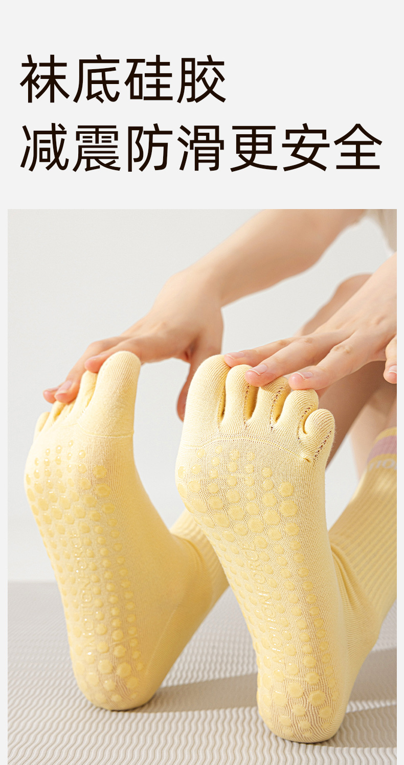전문 요가 다섯 손가락 양말 여름과 가을 얇은 실리콘 미끄럼 방지 필라테스 피트니스 스플릿 발가락 양말 중간 튜브 스포츠 바닥 양말스토어 가기