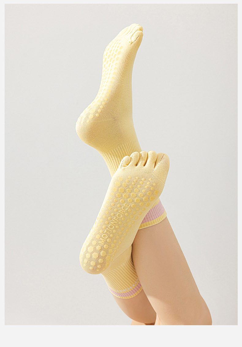 전문 요가 다섯 손가락 양말 여름과 가을 얇은 실리콘 미끄럼 방지 필라테스 피트니스 스플릿 발가락 양말 중간 튜브 스포츠 바닥 양말