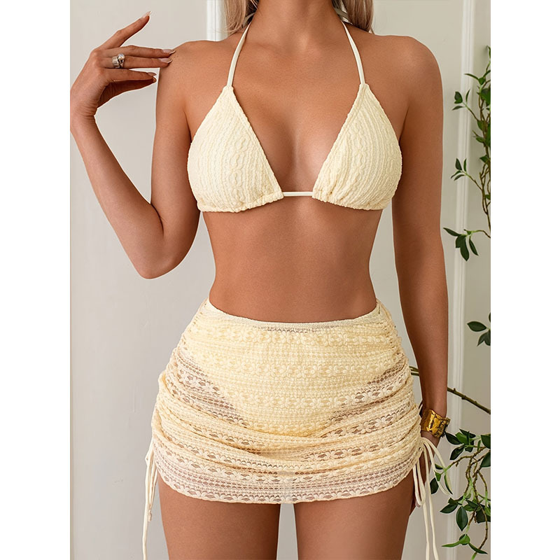 새로운 유럽과 미국의 패션 섹시한 홀터넥 넥 레이스 업 백 레이스 메쉬 스커트 해변 휴가 비키니 3 피스 수영복