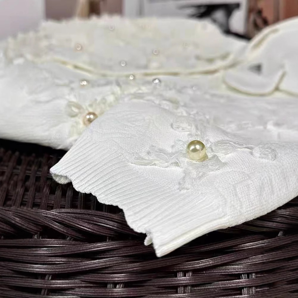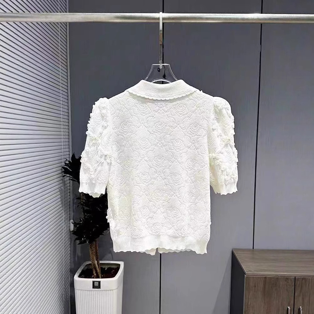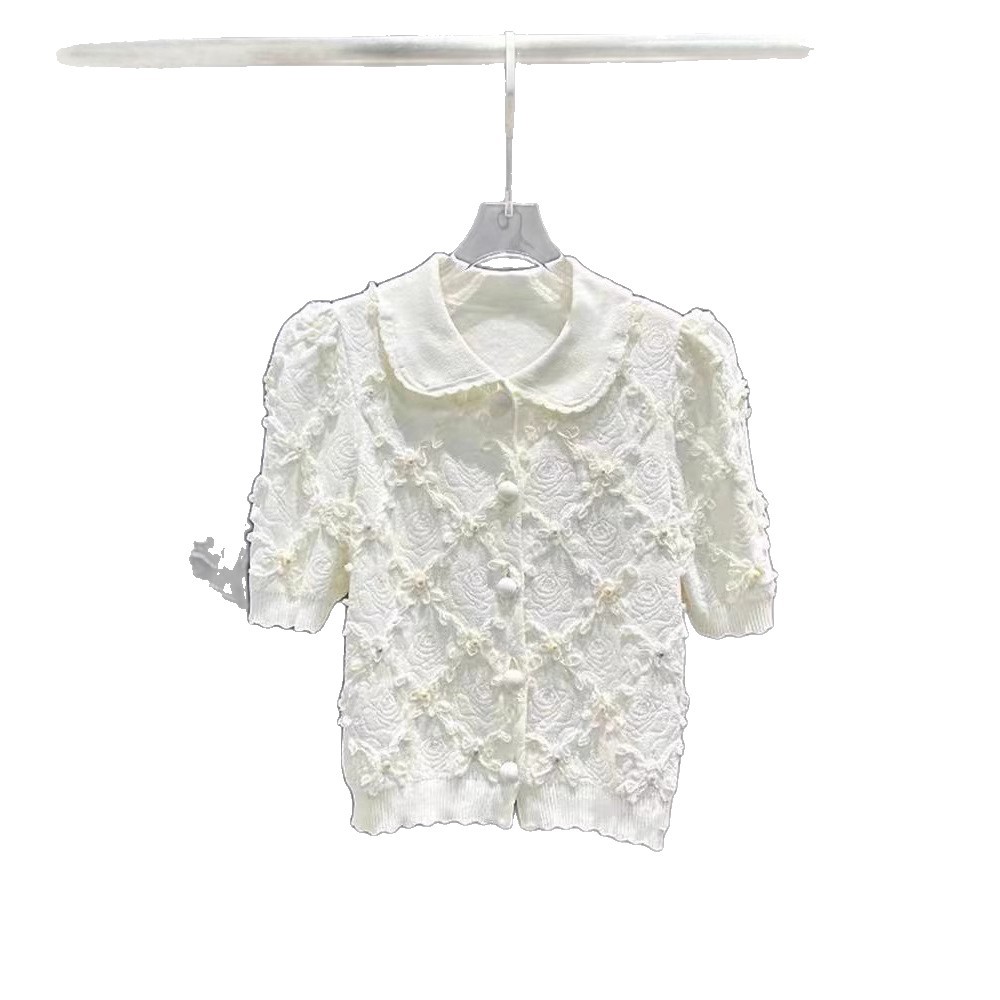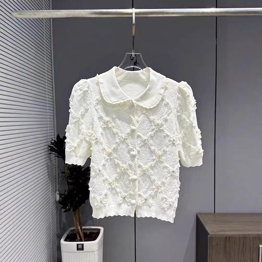 심천 난유 여름용 베이비 칼라 진주 단추 반팔 샤넬 스타일 자카드 니트 스웨터 여성용 2026년 신상