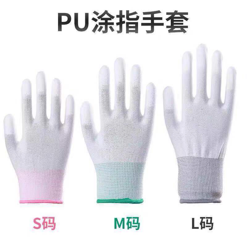 PU 코팅 손가락 장갑 도매 흰색 13 바늘 PU 줄무늬 딥 고무 보호 작업 정전기 방지 노동 보호 장갑스토어 가기