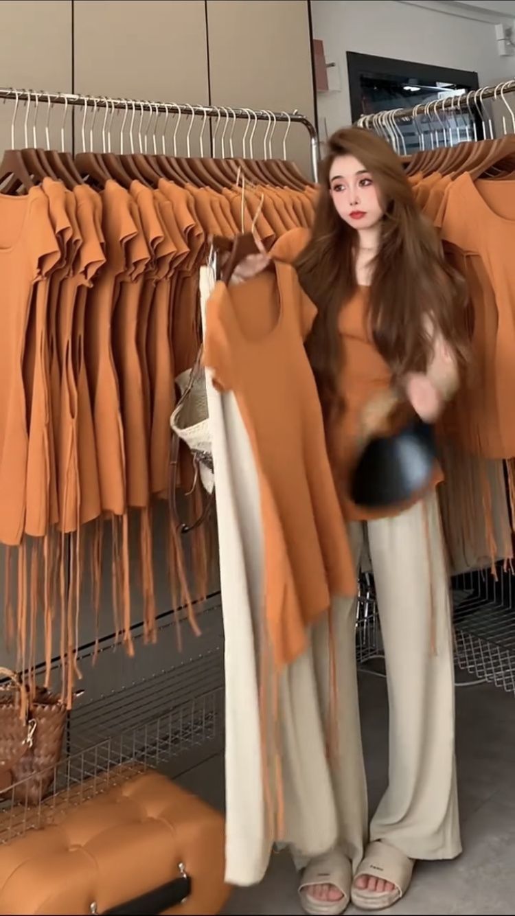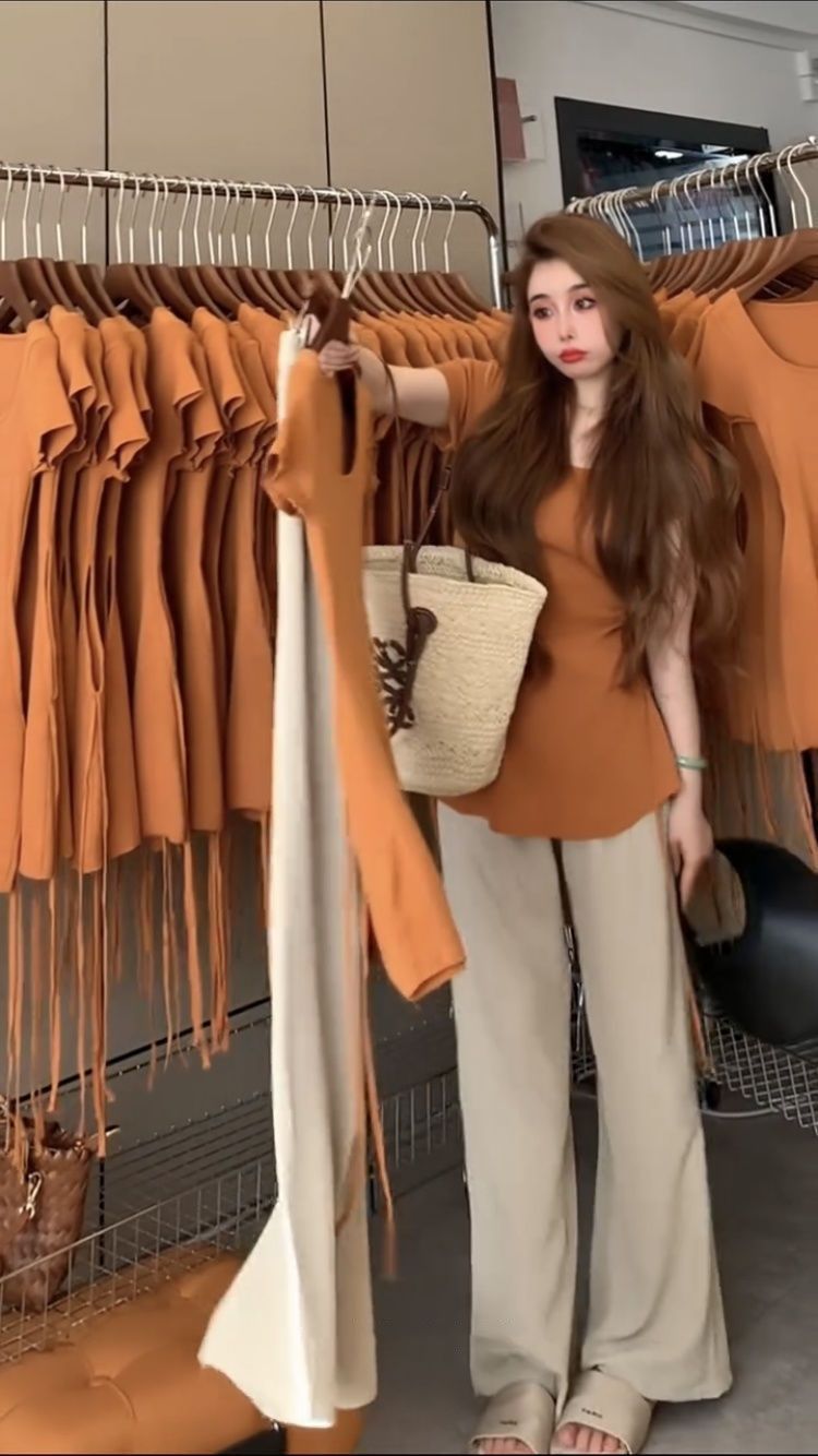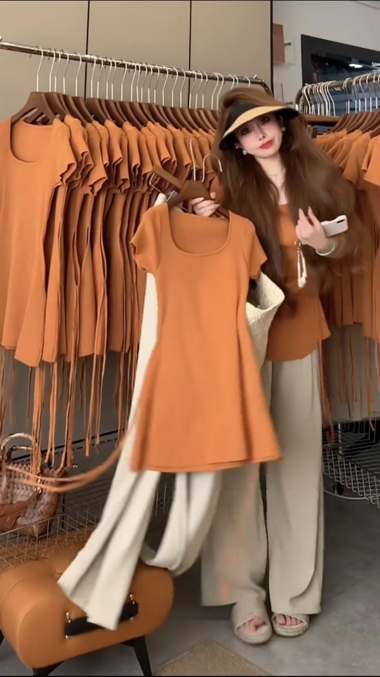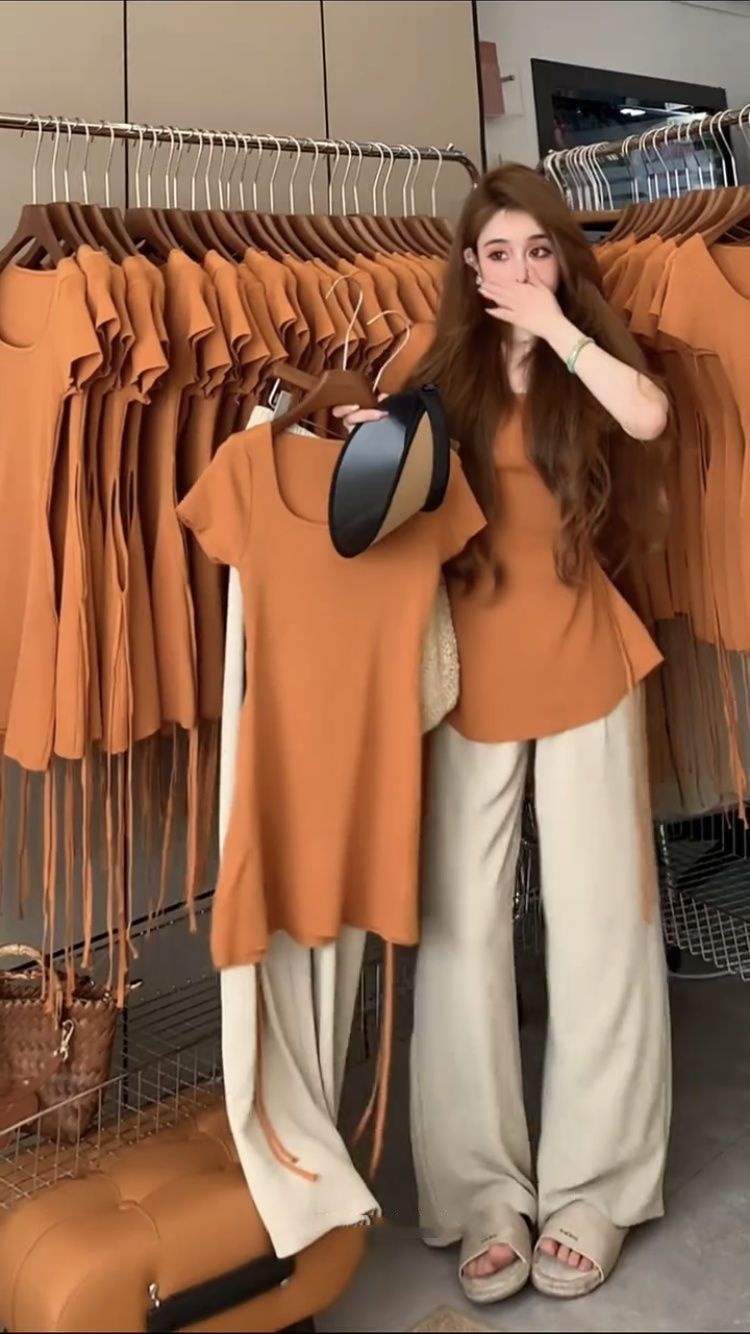 • 오렌지색 상의 + 살구색 바지