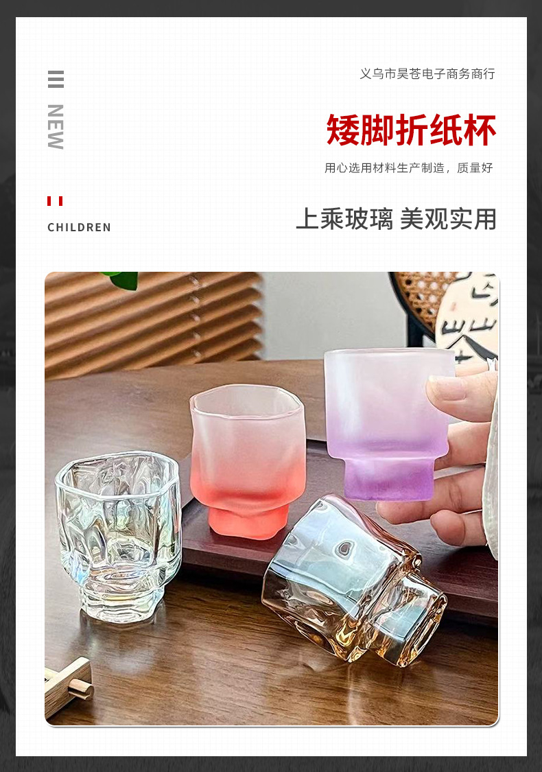 창의적인 모양의 낮은 종이 접이식 컵, 투명하고 편안한 그립감, 다양한 색상, 가정용 음료 컵, 유리 컵스토어 가기