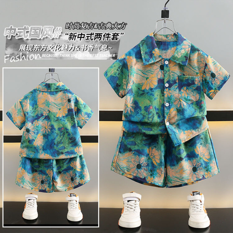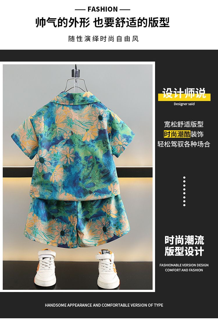 새로운 소년 반팔 여름 정장 2025 셔츠 여름 어린이 스타일 베이비 비치 투피스 세트 멋지고 트렌디합니다.스토어 가기