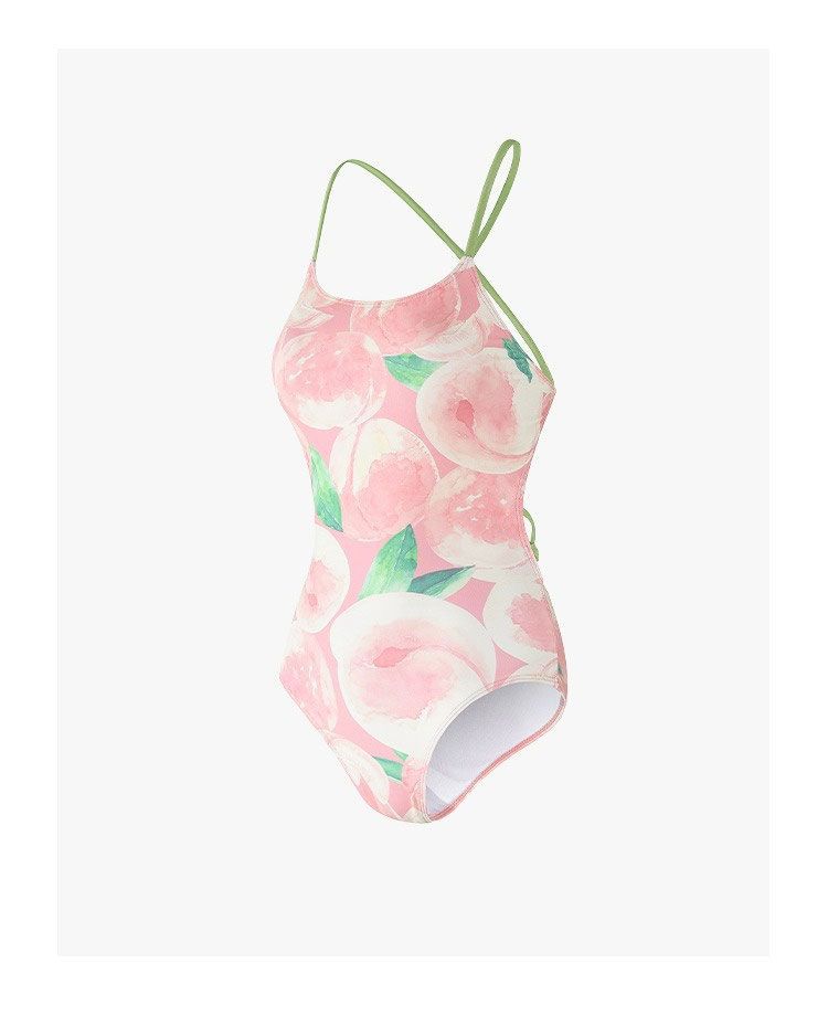DK [복숭아치즈] 여성용 스커트가 포함된 양면 복숭아 패턴 레이싱 전문 트레이닝 원피스 수영복스토어 가기