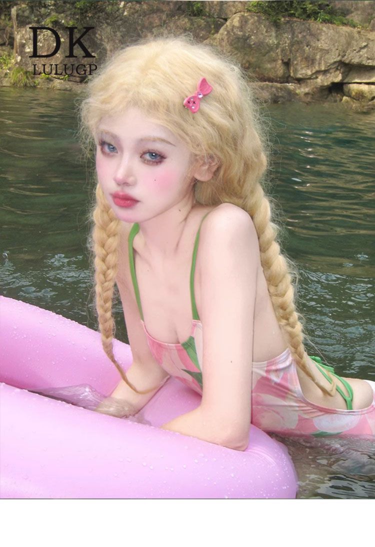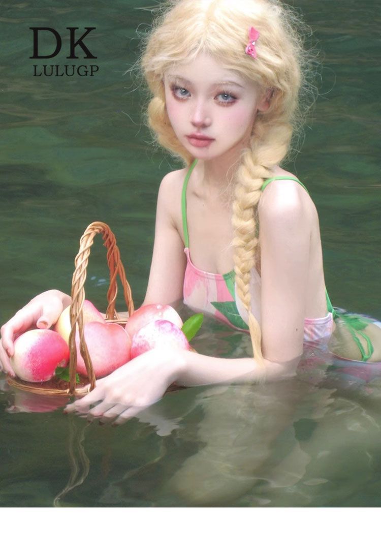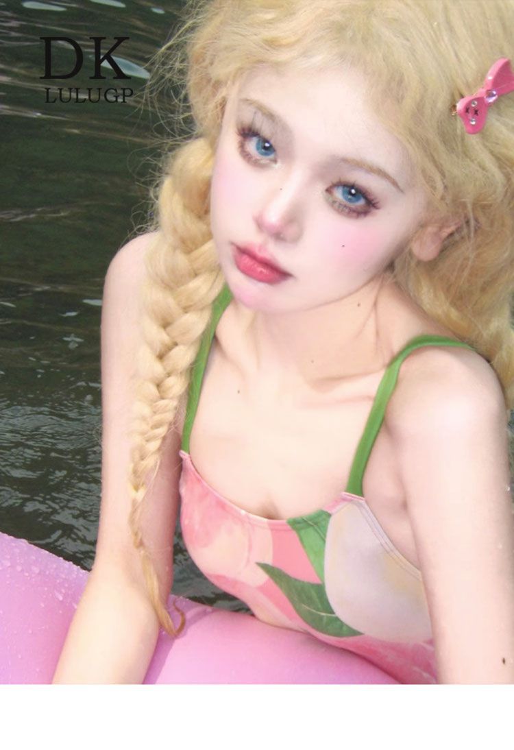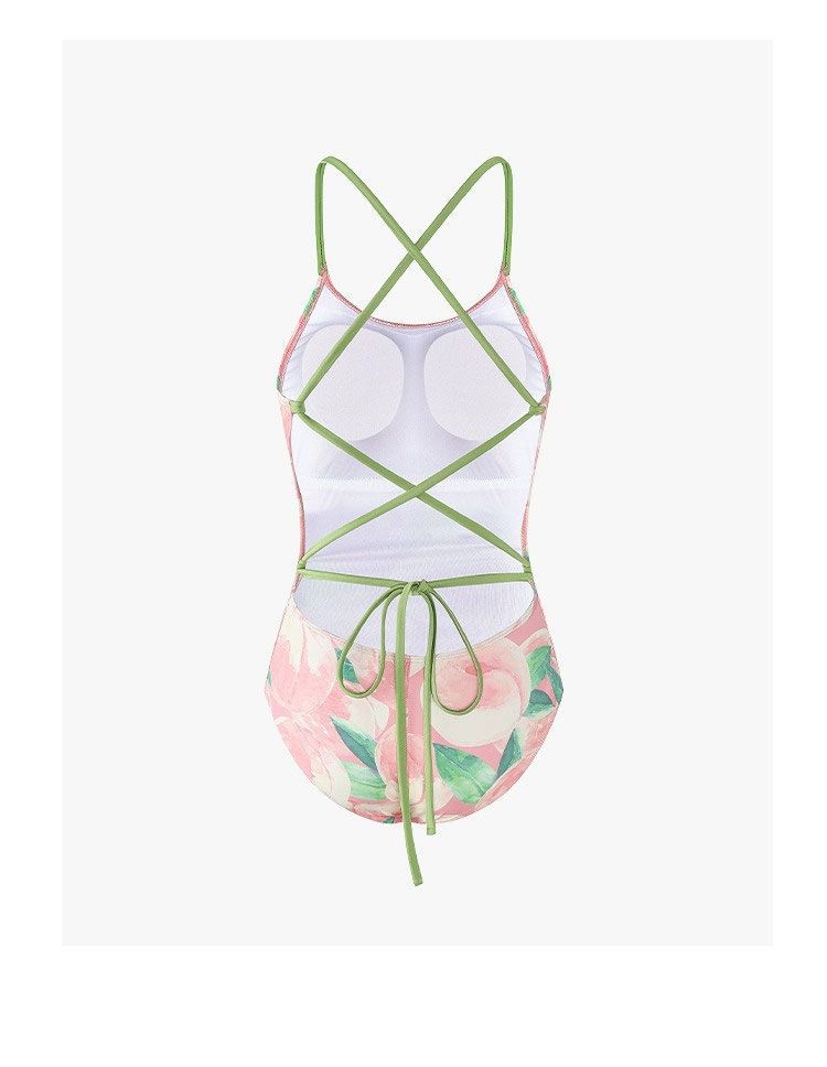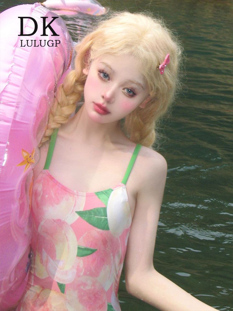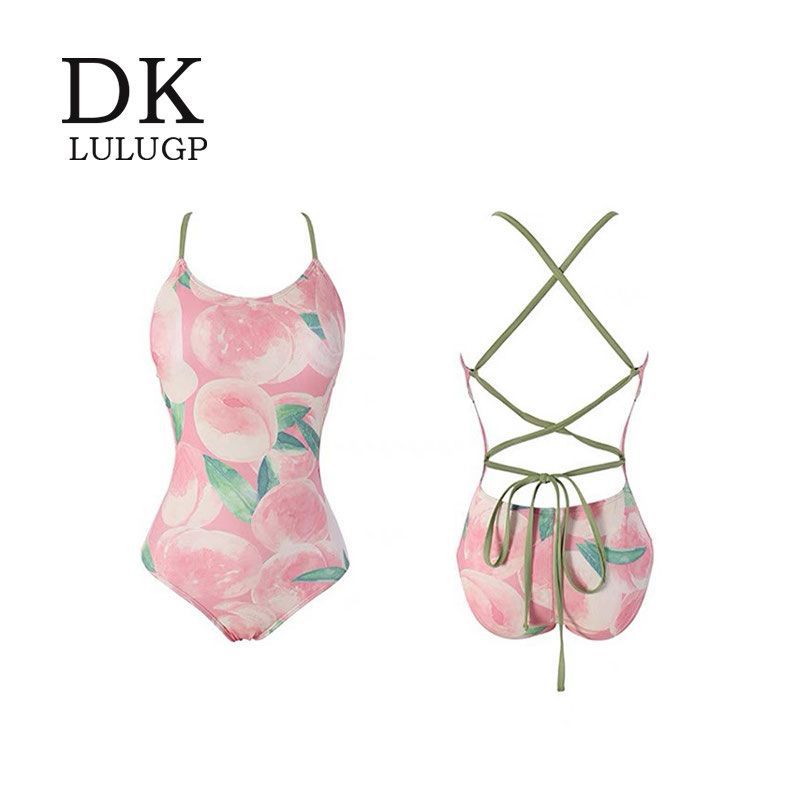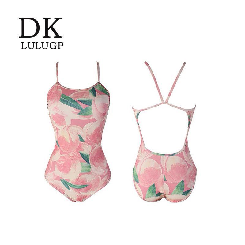 DK [복숭아치즈] 여성용 스커트가 포함된 양면 복숭아 패턴 레이싱 전문 트레이닝 원피스 수영복