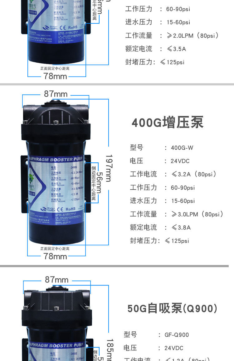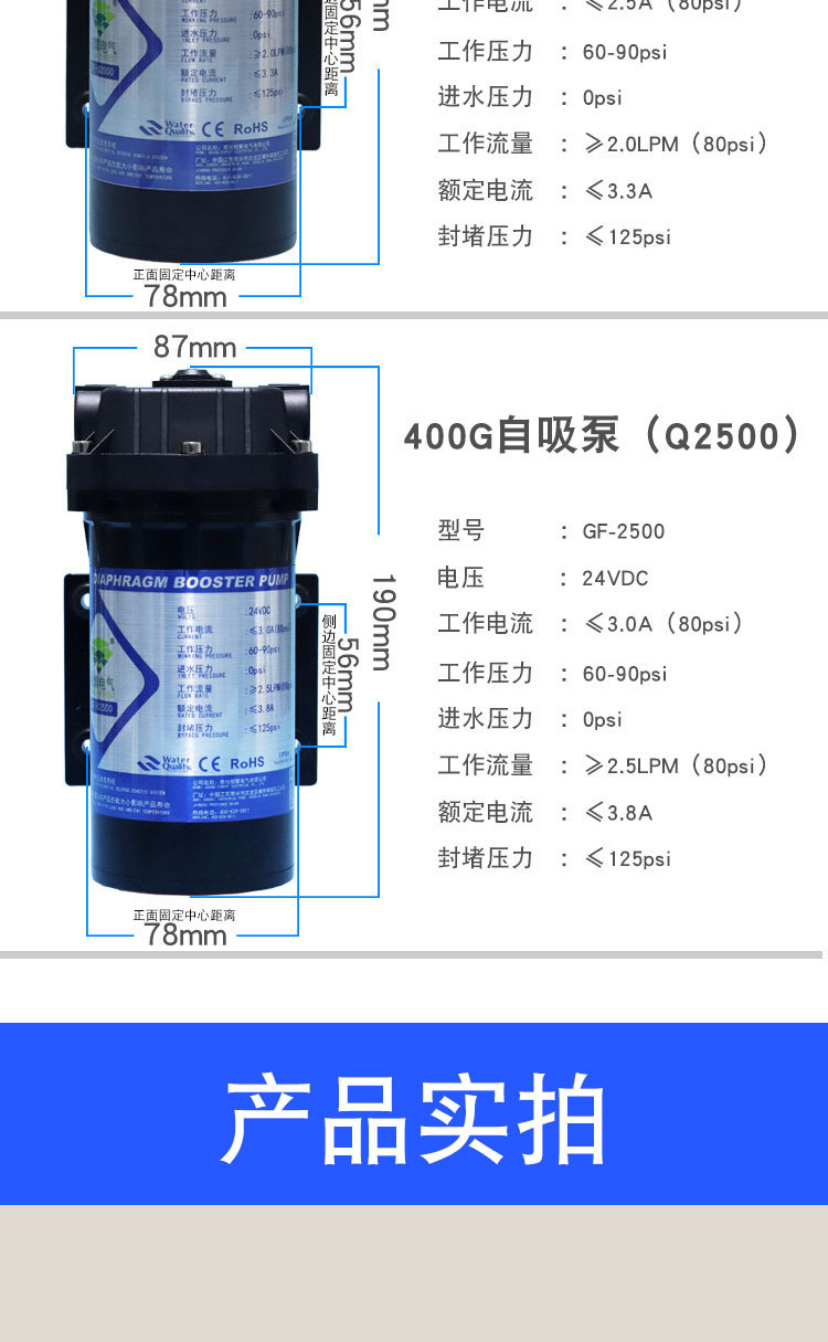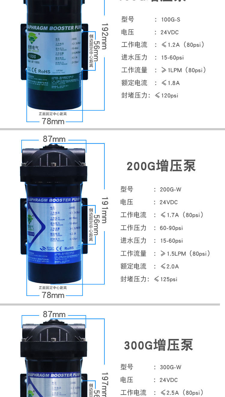 Baifan 부스터 펌프 75G 자체 흡입 펌프 50G 정수기 400G 대유량 식품 등급 가정용 모터 흡입 워터 펌프