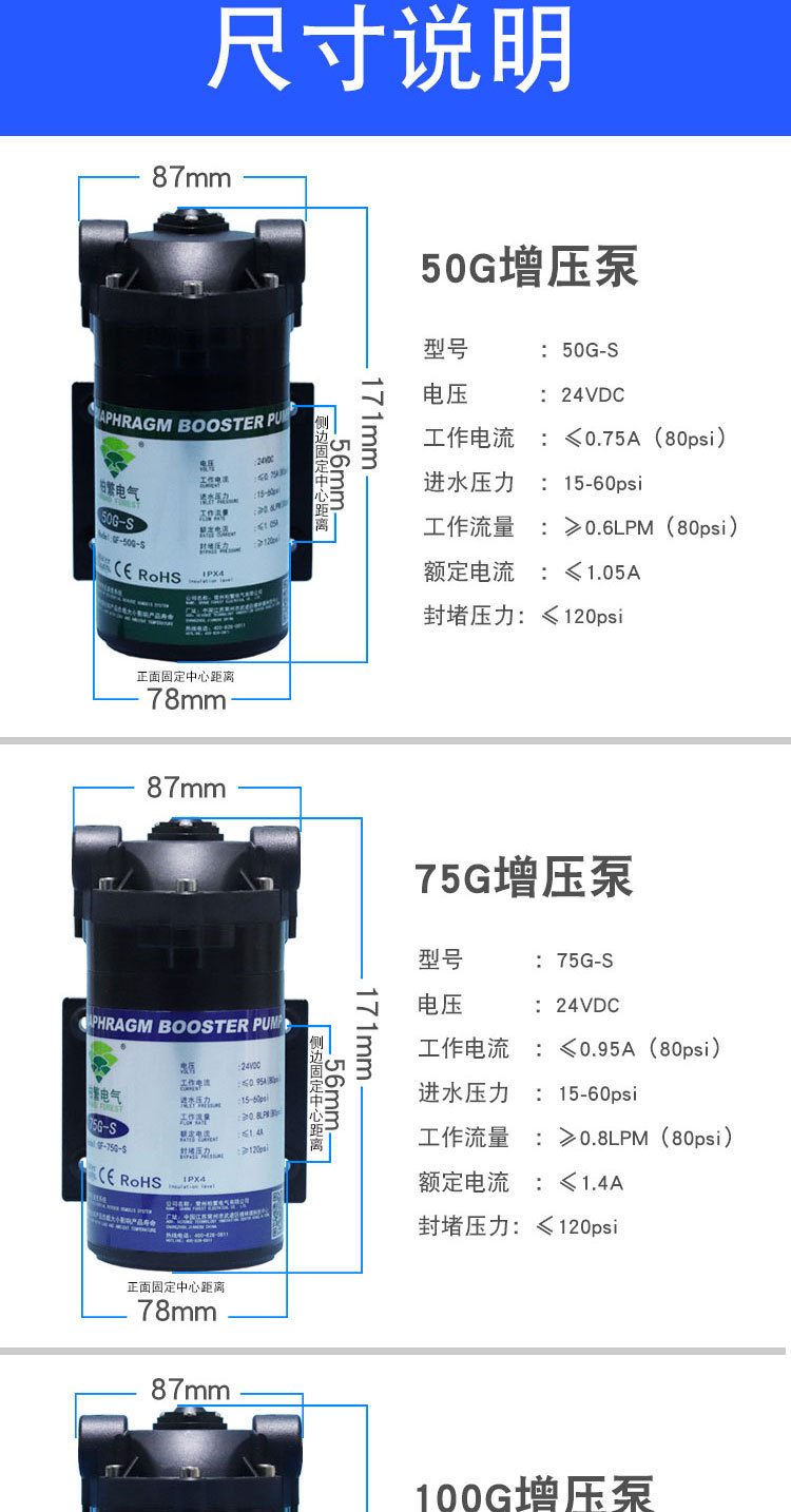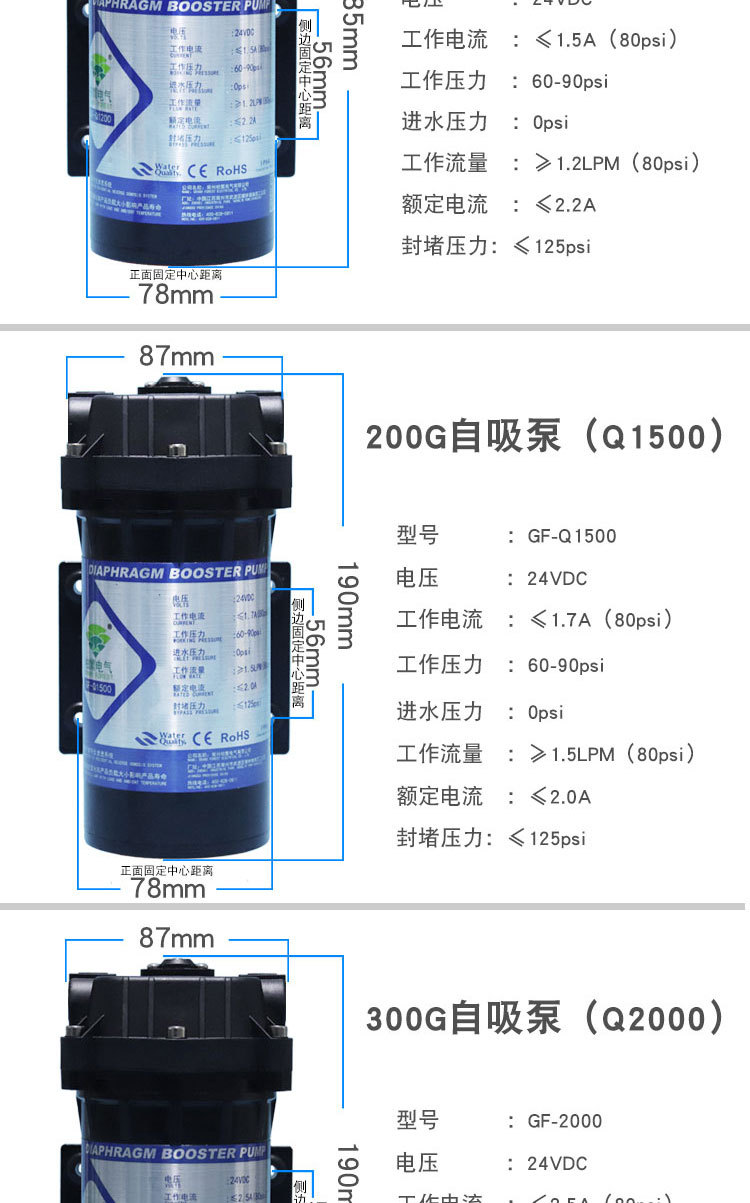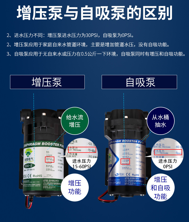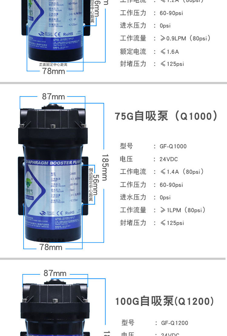 Baifan 부스터 펌프 75G 자체 흡입 펌프 50G 정수기 400G 대유량 식품 등급 가정용 모터 흡입 워터 펌프