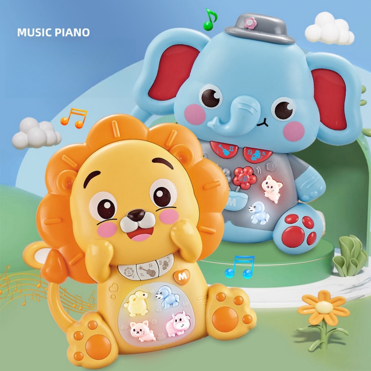 국경 간 뜨거운 판매 어린이 만화 전자 오르간 악기 0-3 교육 조기 교육 장난감 유아 동물 피아노스토어 가기