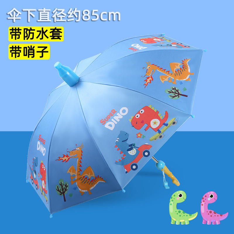 • 어린이용 중형 비닐우산 [파란공룡 4개 - 방수커버 포함] (우산 밑 지름 85CM)