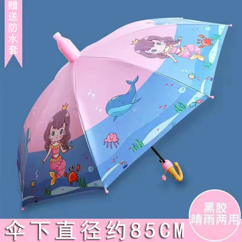 만화 어린이 우산 인쇄 로고 도매 유치원 남성과 여성의 태양 보호 우산 초등학교 긴 손잡이 우산