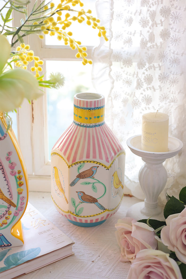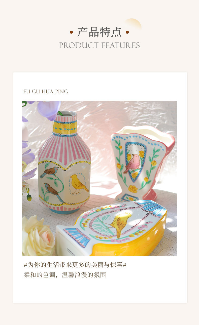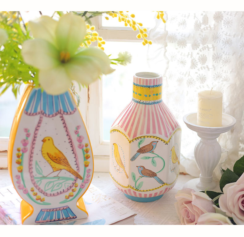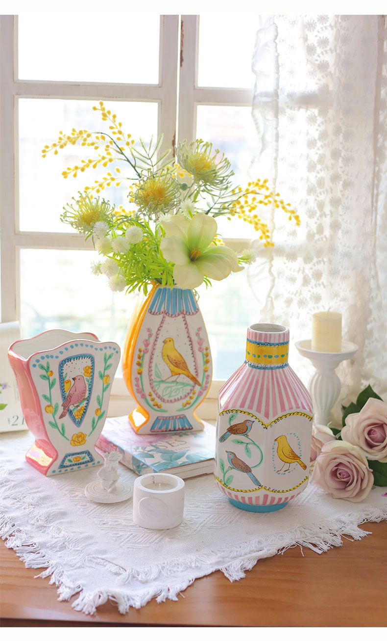 나이팅게이트와 장미, 목가적 인 꽃과 새, 세라믹 꽃병, 고급 가정용 꽃 장식품, 거실 장식품스토어 가기