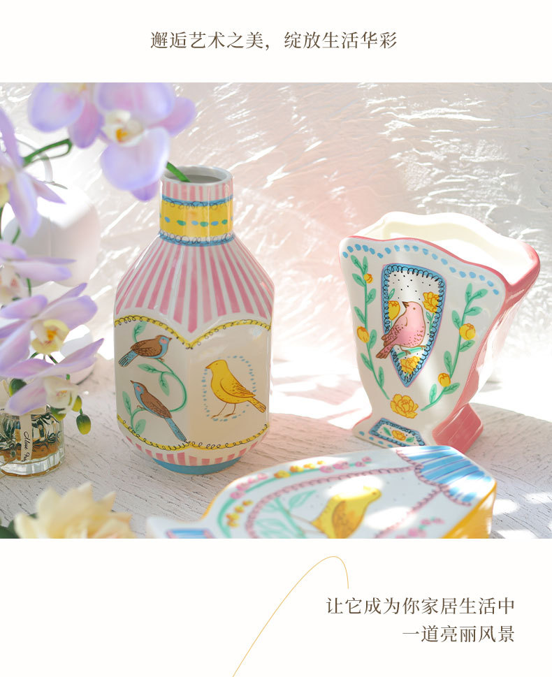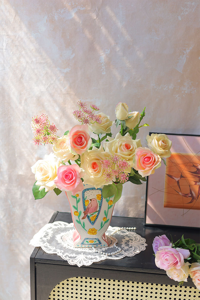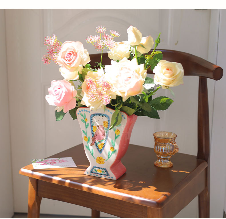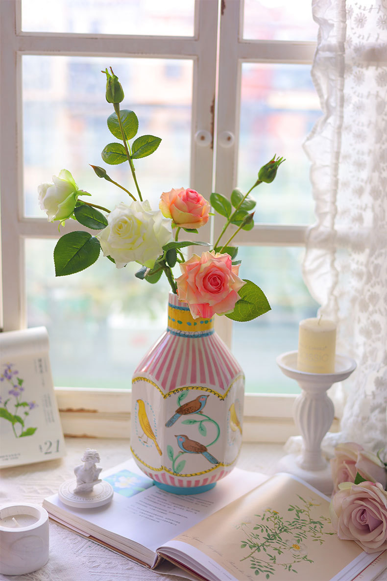 나이팅게이트와 장미, 목가적 인 꽃과 새, 세라믹 꽃병, 고급 가정용 꽃 장식품, 거실 장식품