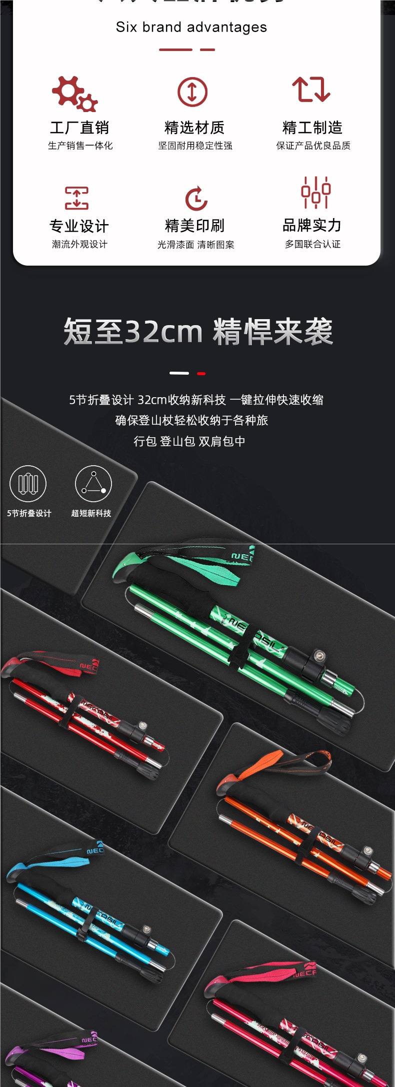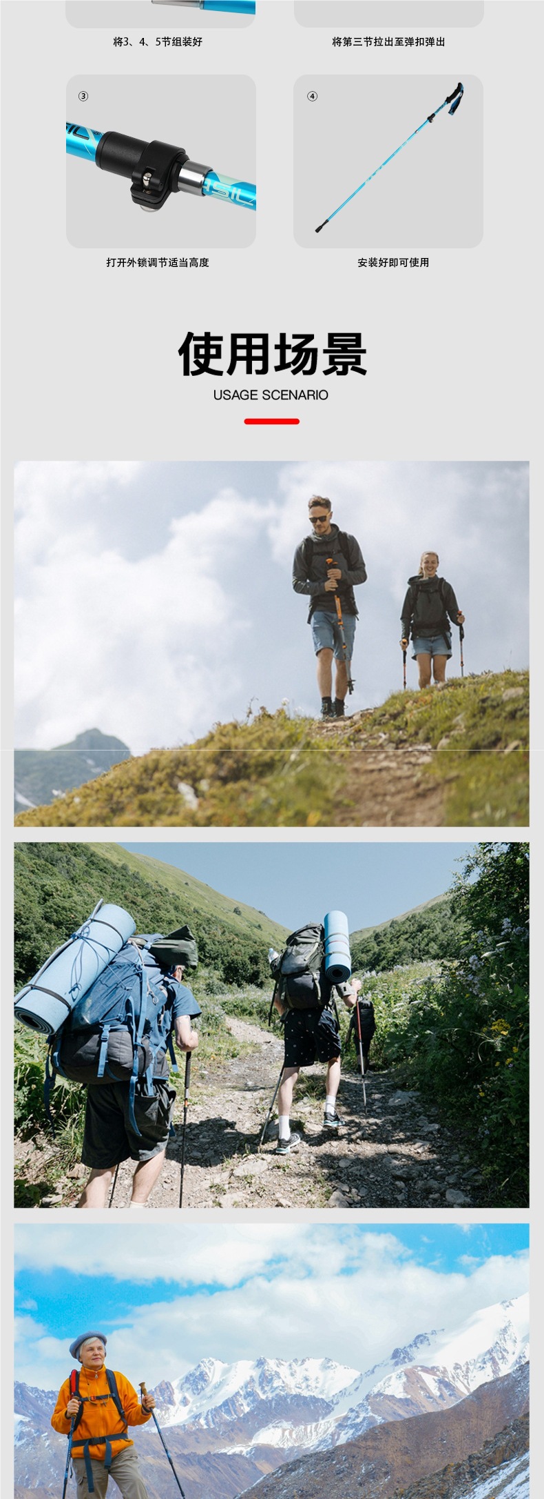 폴딩 전문 야외 등산 지팡이 탄소 텔레스코픽 남성용 및 여성용 지팡이 하이킹 장비스토어 가기