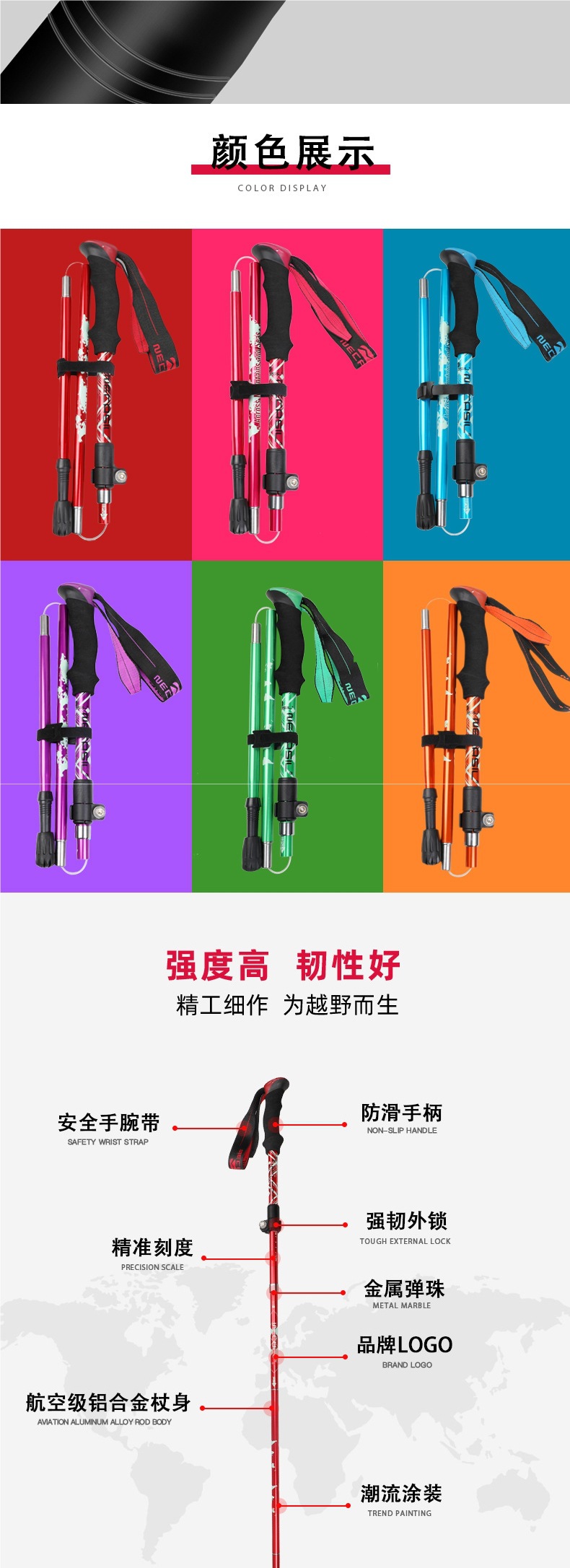 폴딩 전문 야외 등산 지팡이 탄소 텔레스코픽 남성용 및 여성용 지팡이 하이킹 장비