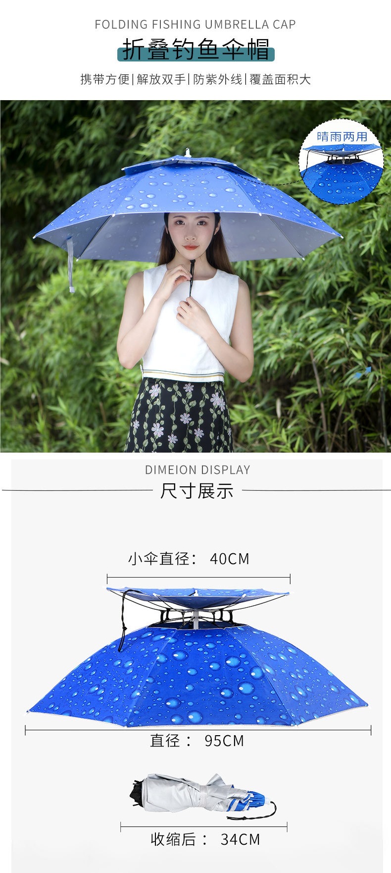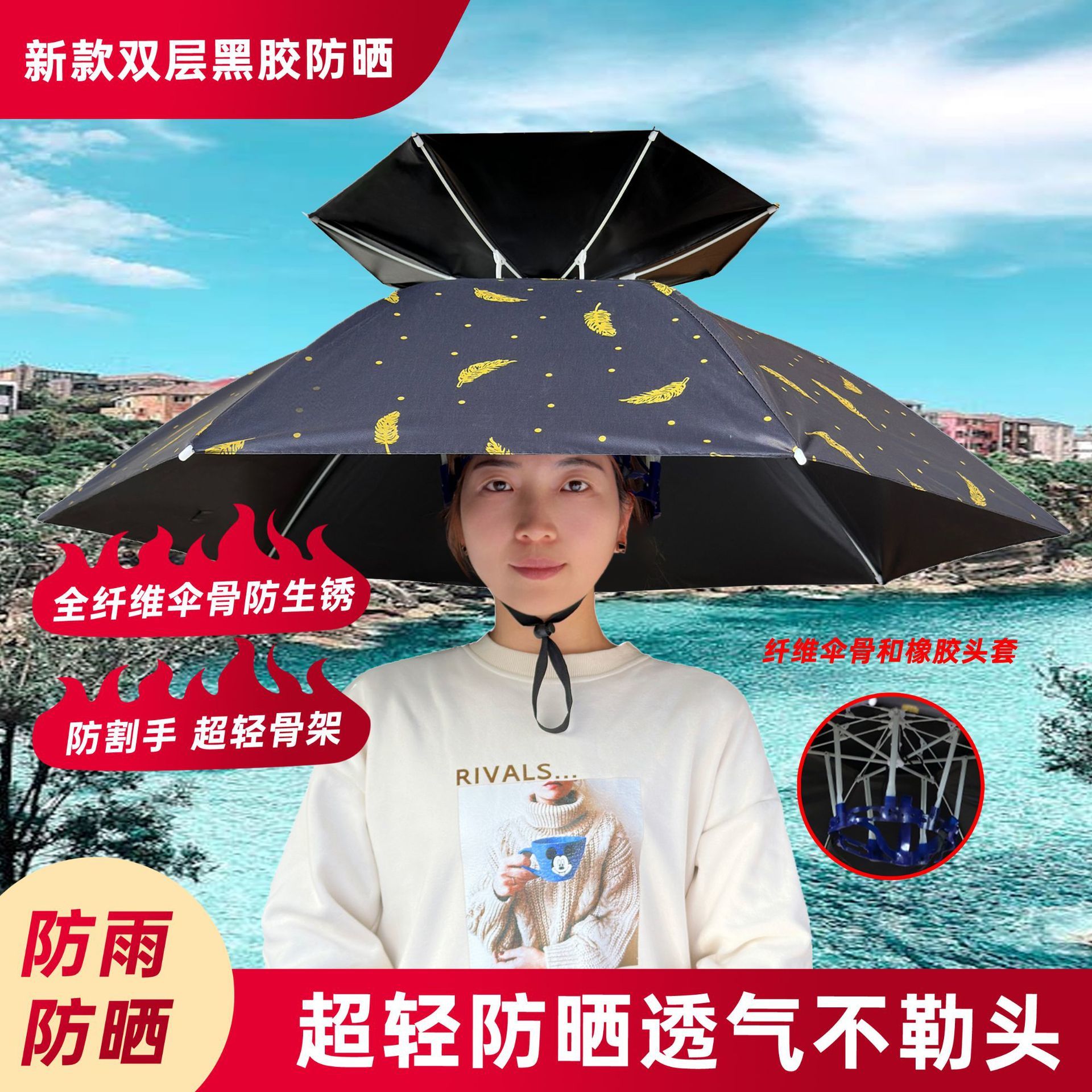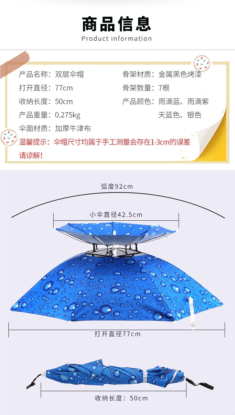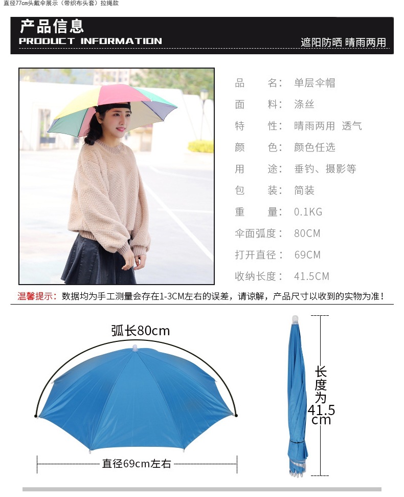 우산모자, 우산모자, 낚시모자, 태양우산, 야외차채집, 위생, 자외선차단, 모자, 접이식 대형우산