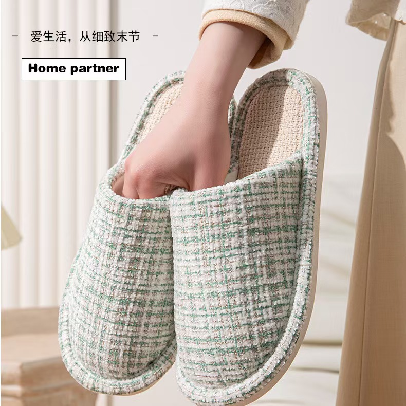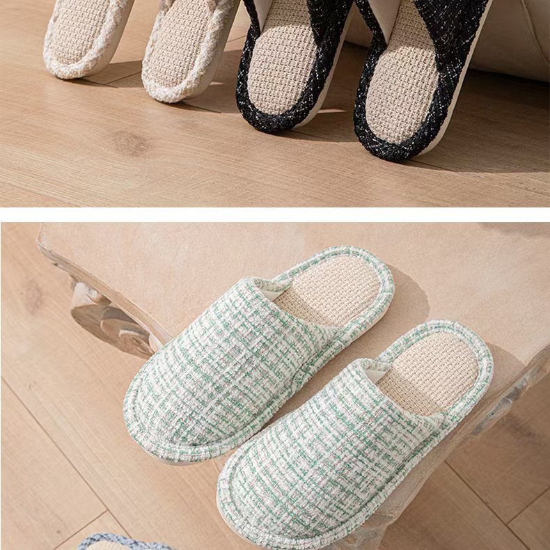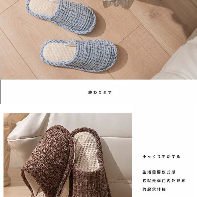 여성용 크로스보더 린넨 슬리퍼, 봄, 가을, 남성용 사계절 커플을 위한 무소음 미끄럼 방지 새 홈 면 및 린넨 부드러운 밑창 발가락 슬리퍼스토어 가기