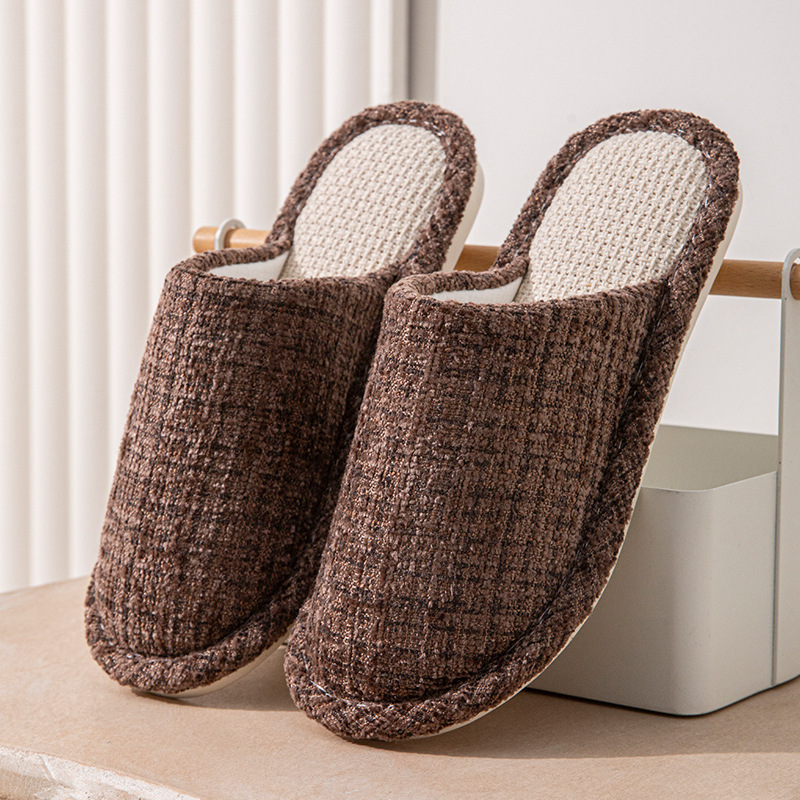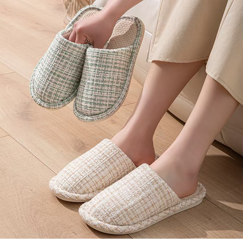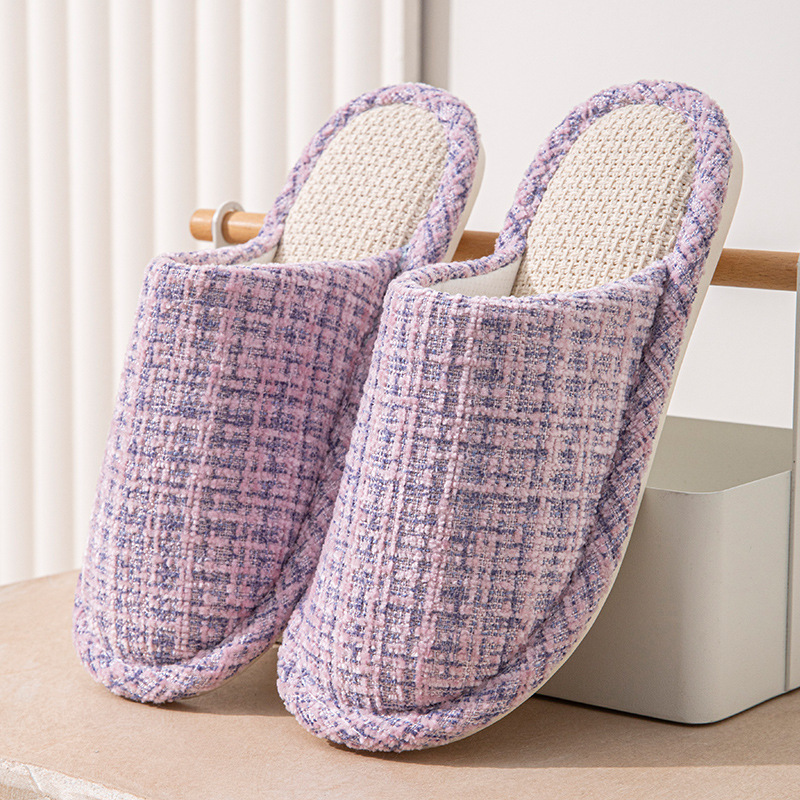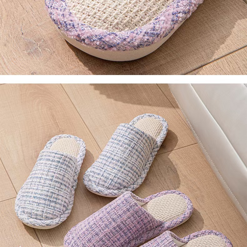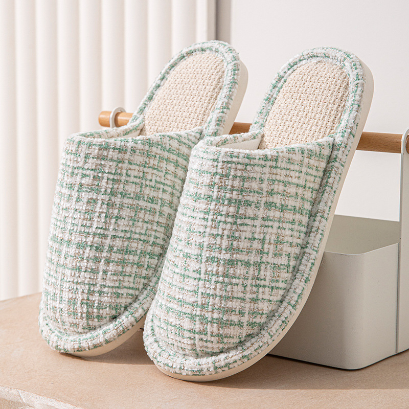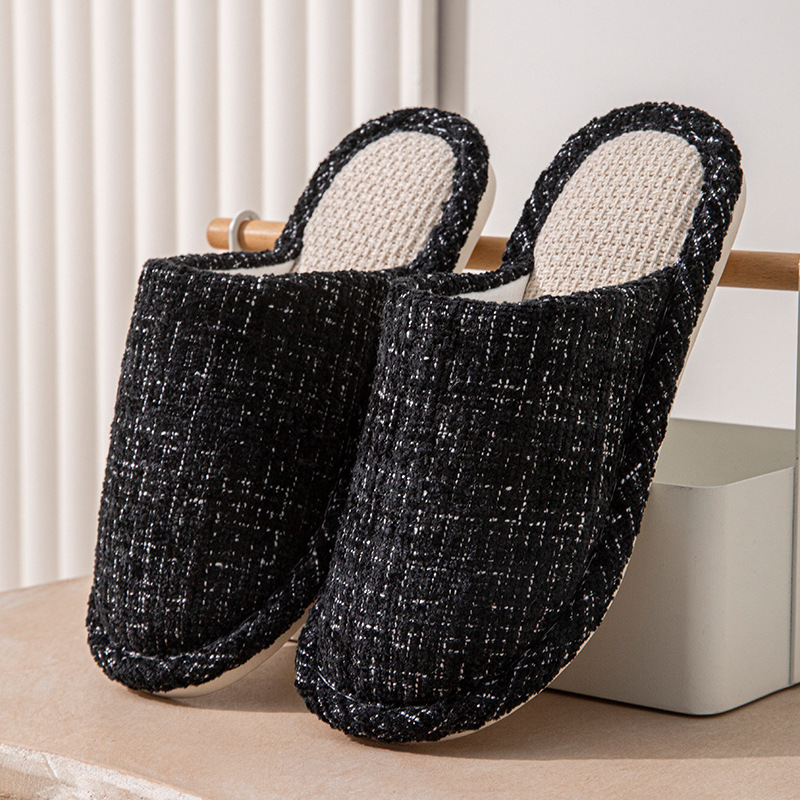여성용 크로스보더 린넨 슬리퍼, 봄, 가을, 남성용 사계절 커플을 위한 무소음 미끄럼 방지 새 홈 면 및 린넨 부드러운 밑창 발가락 슬리퍼