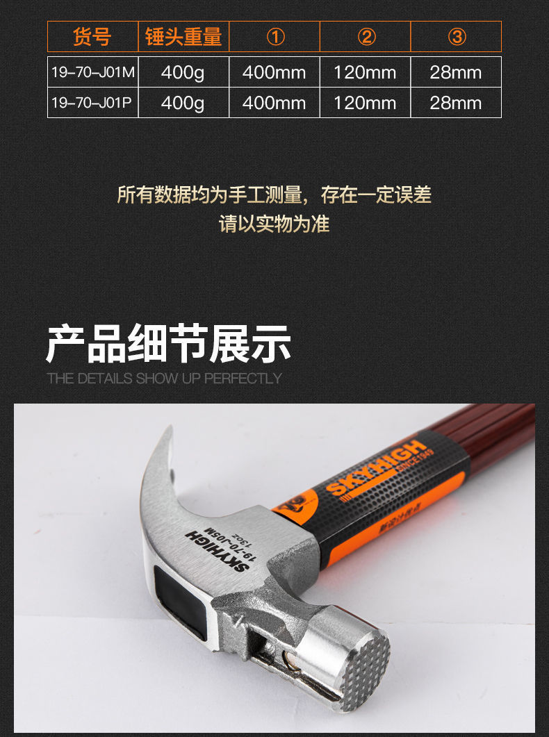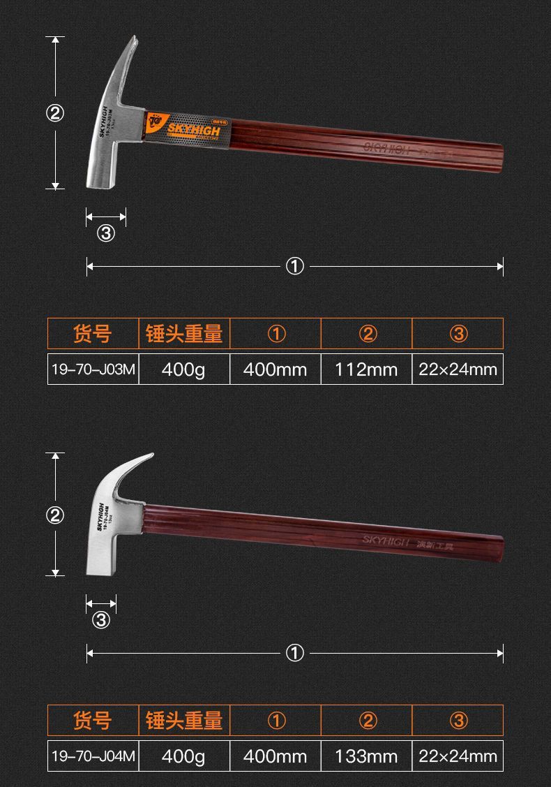 • J06P 둥근 머리 평면 각도 0.5kg 해머 헤드