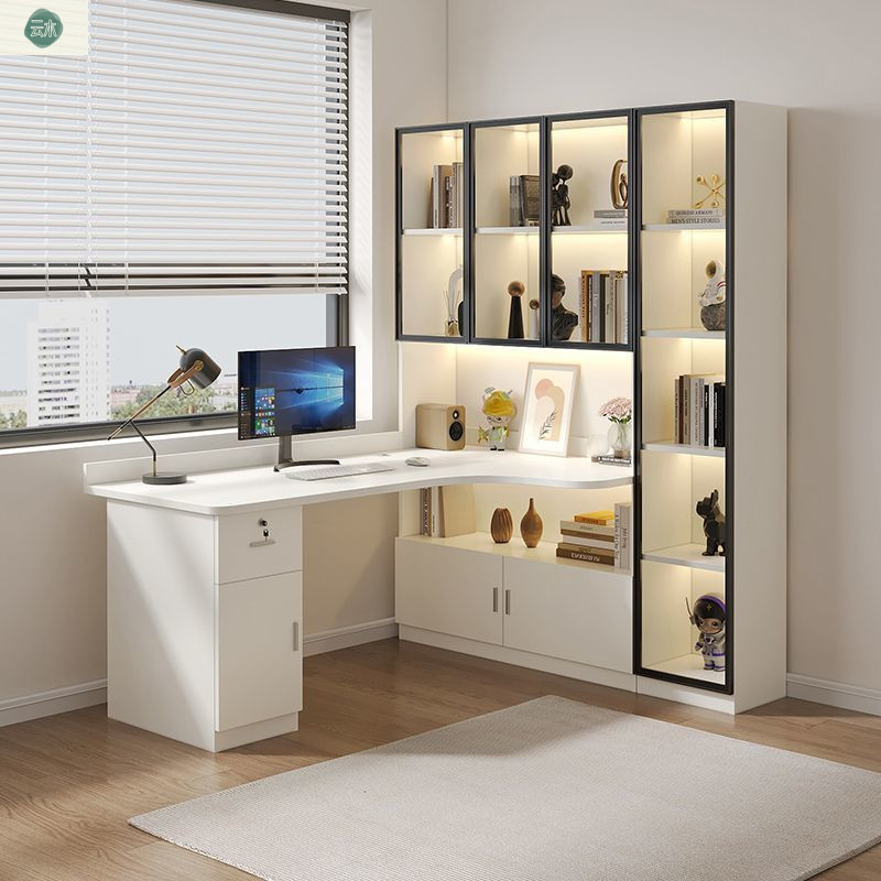 간단한 책상 책장 통합 테이블 단단한 나무 코너 컴퓨터 책상 책장 테이블이있는 가정 학생 책상