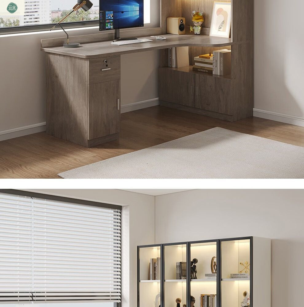 간단한 책상 책장 통합 테이블 단단한 나무 코너 컴퓨터 책상 책장 테이블이있는 가정 학생 책상스토어 가기