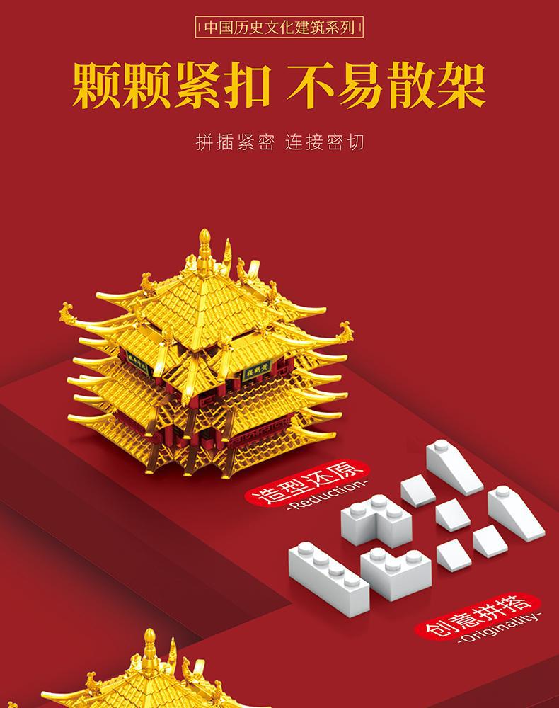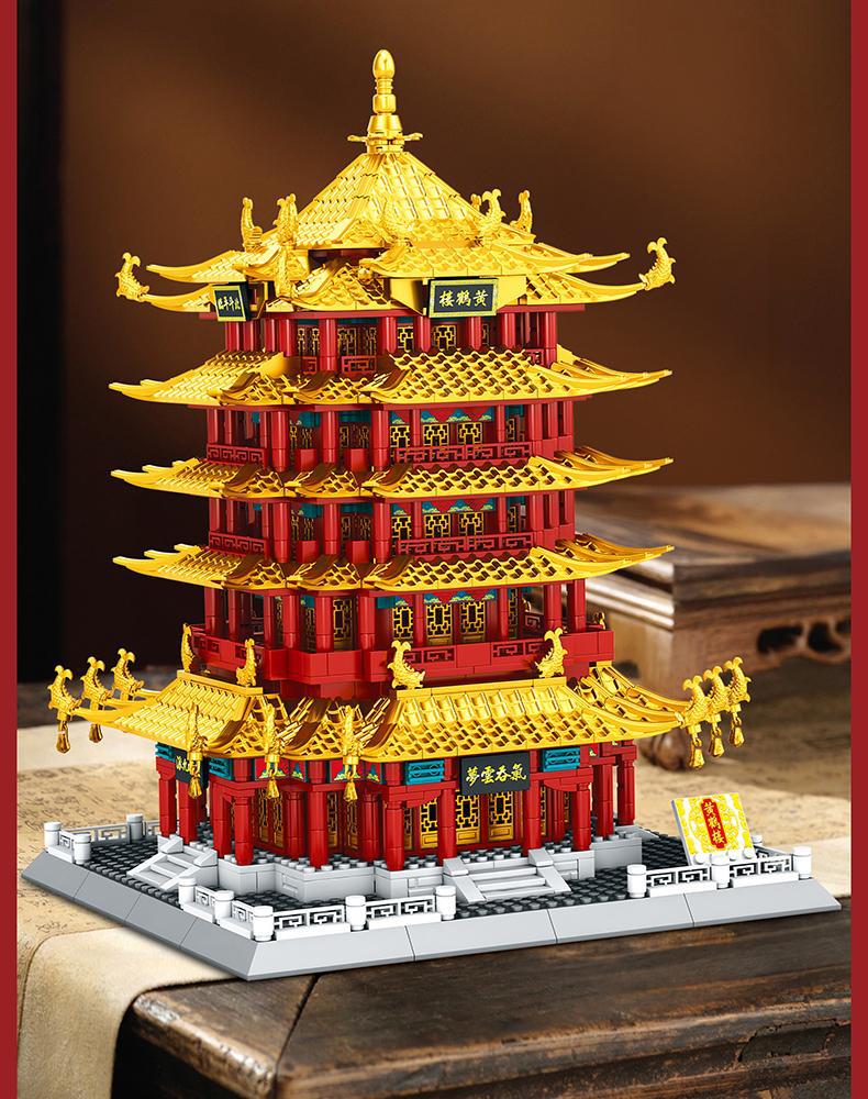 황호탑 중국 유명 건물 빌딩 블록 어린이 교육 조립 장난감 높은 난이도 빌딩 블록 교육 조립 장난감