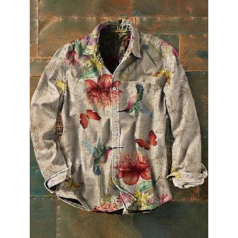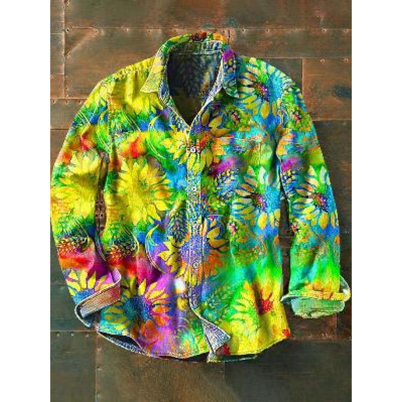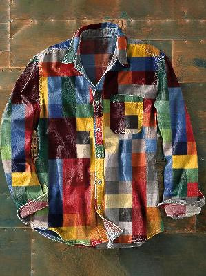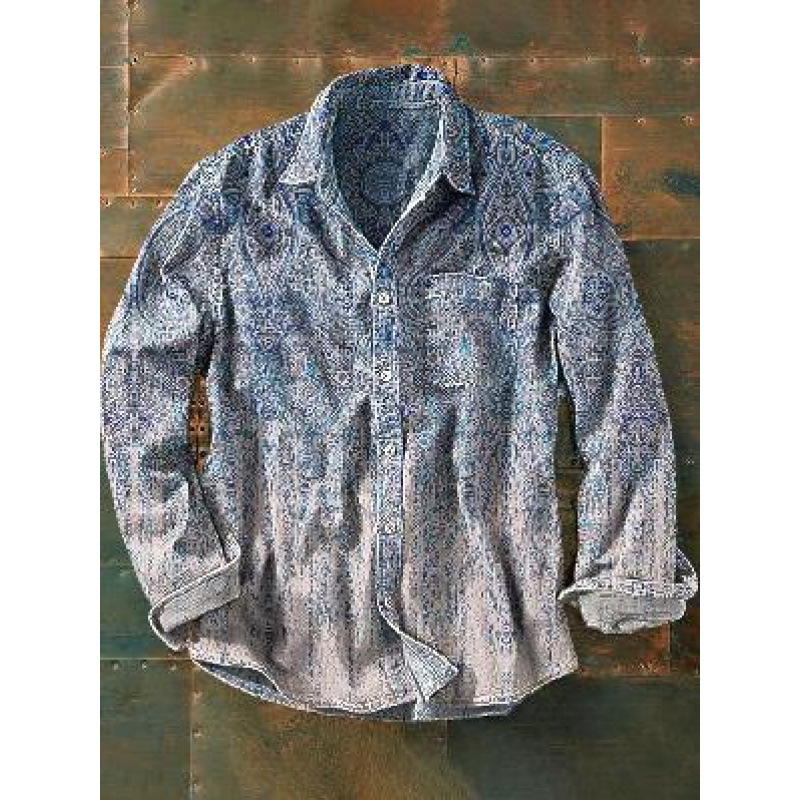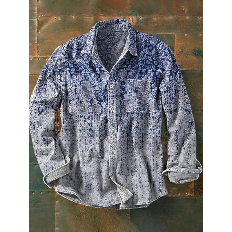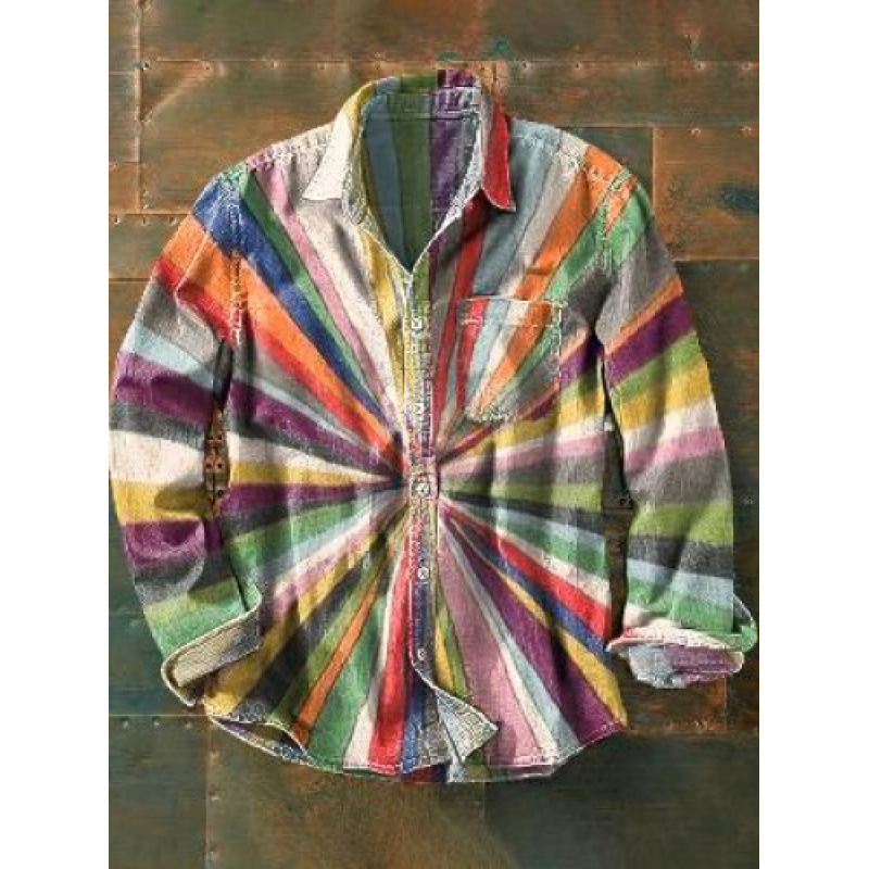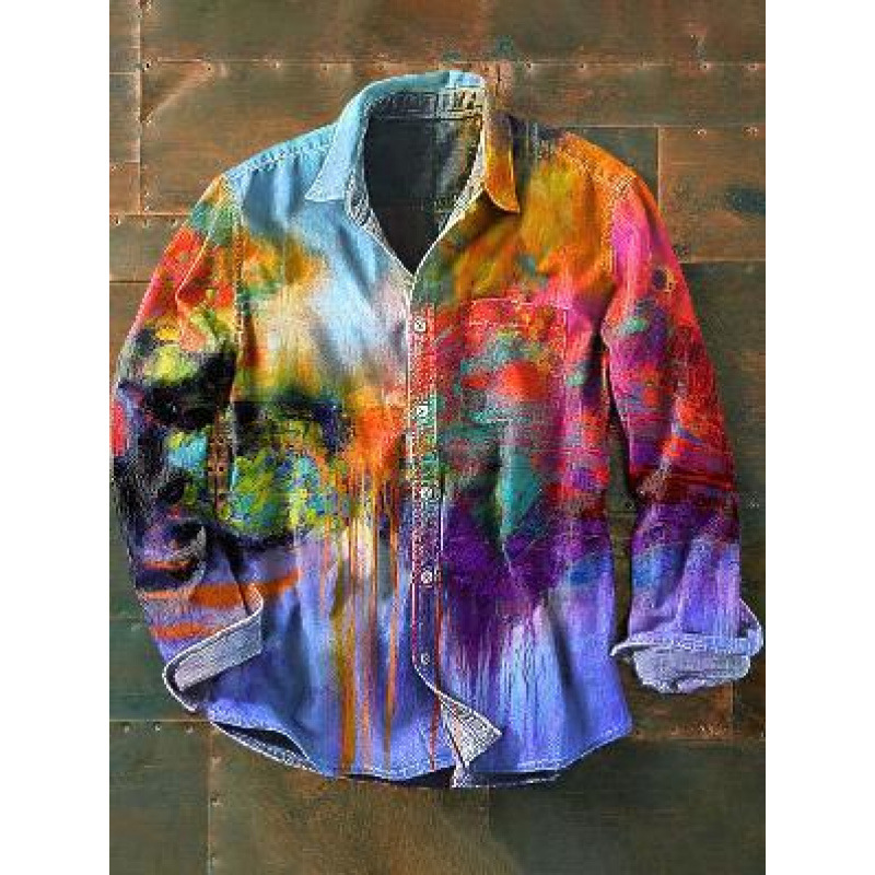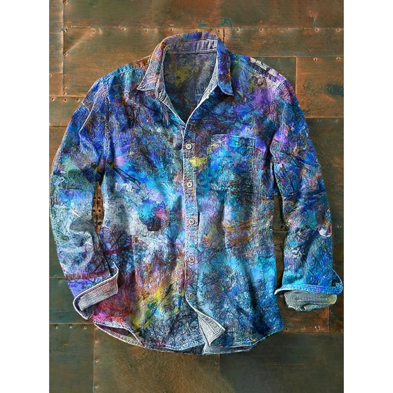 아마존 능직 셔츠 복고풍 리조트 스타일 핫 세일 컬러 블록 프린트 트렌디 남성 긴팔 버튼 탑스토어 가기