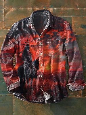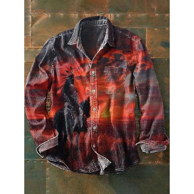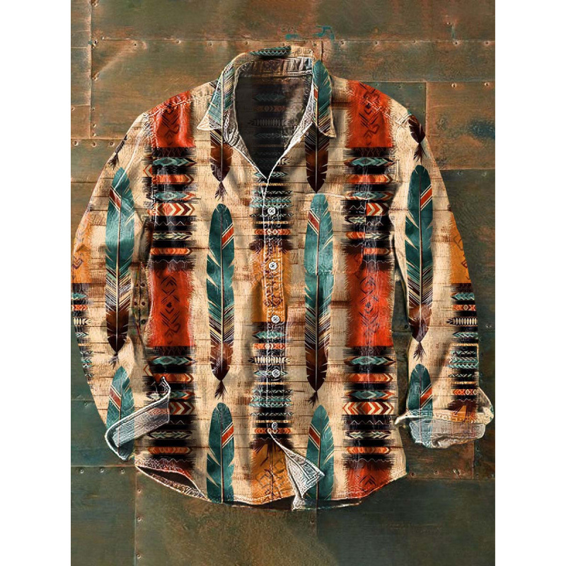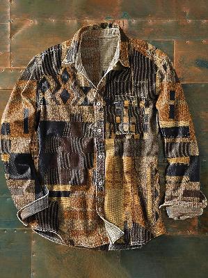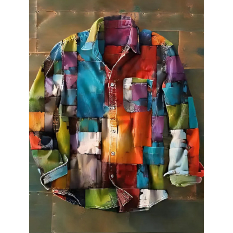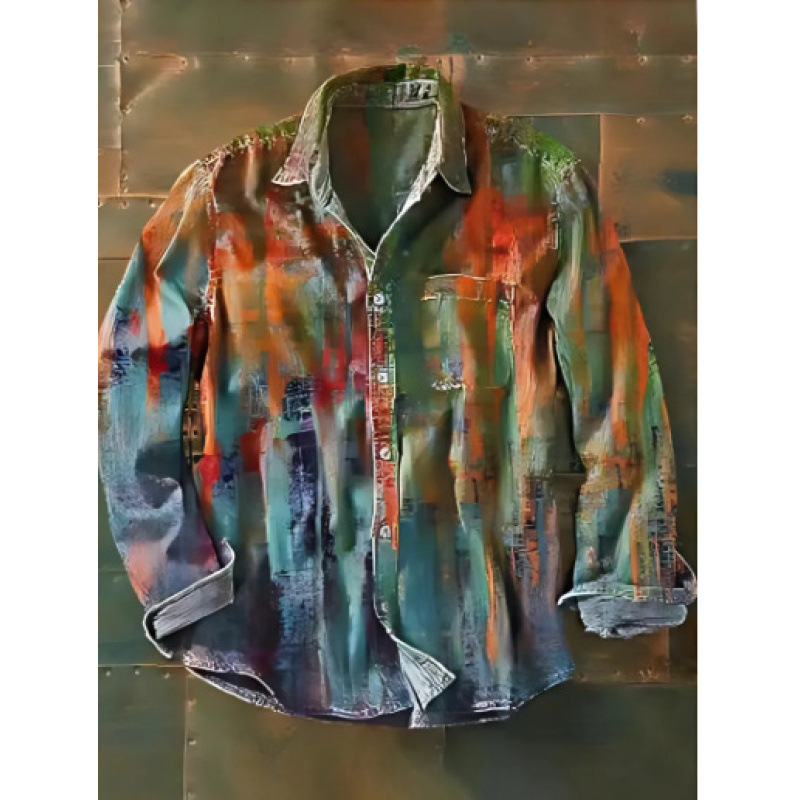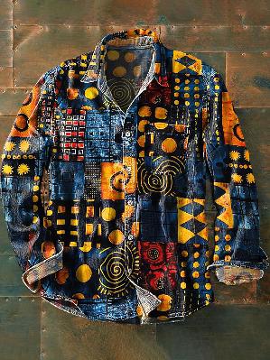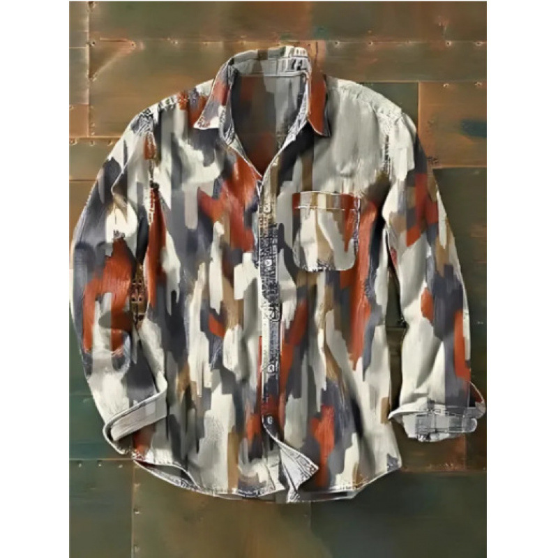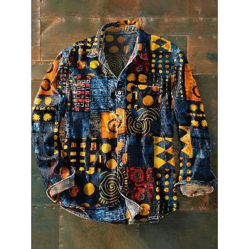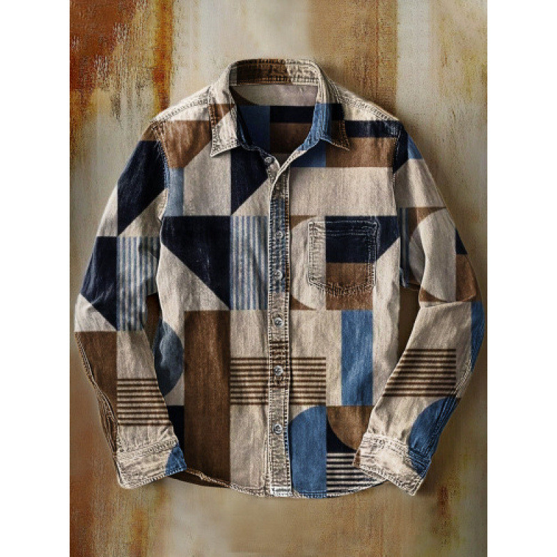 아마존 능직 셔츠 복고풍 리조트 스타일 핫 세일 컬러 블록 프린트 트렌디 남성 긴팔 버튼 탑