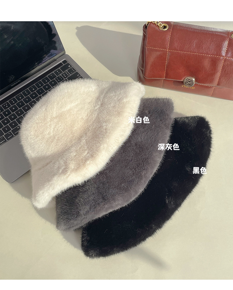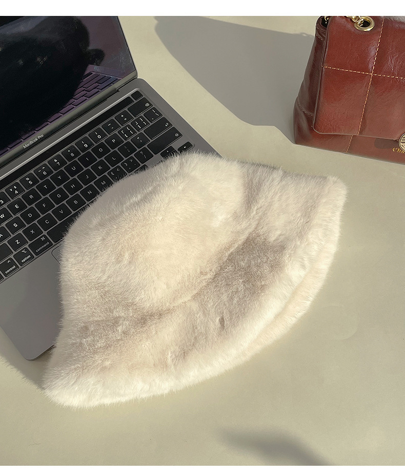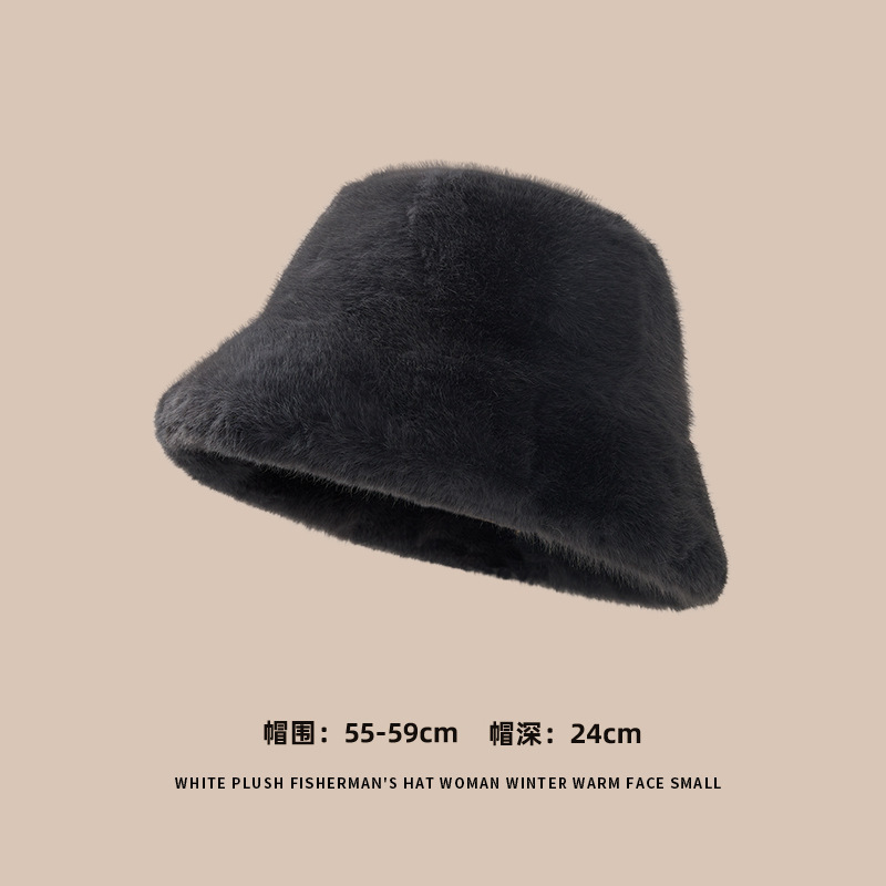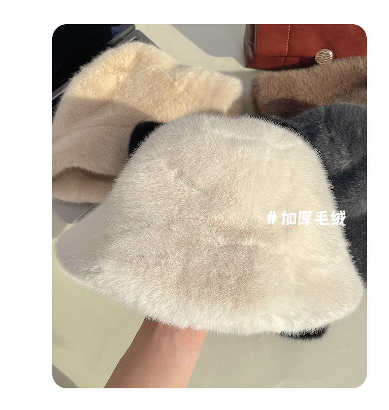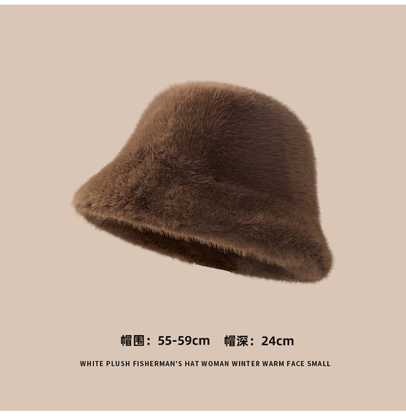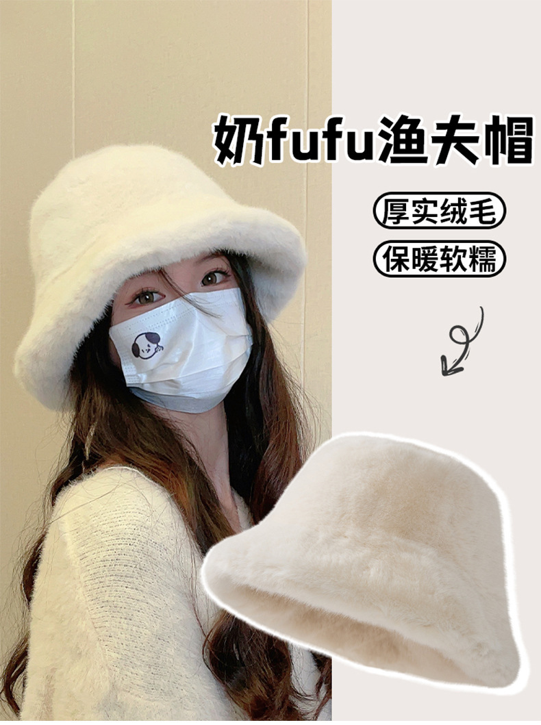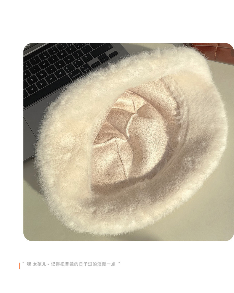 겨울철 여성을 위한 흰색 플러시 모자, 귀여운 인터넷 연예인, 얼굴이 보이는 두꺼운 작은 인터넷 연예인, 패셔너블한 모조 밍크 크로스보더 어부 모자스토어 가기