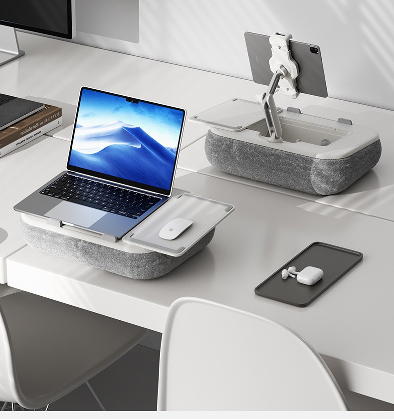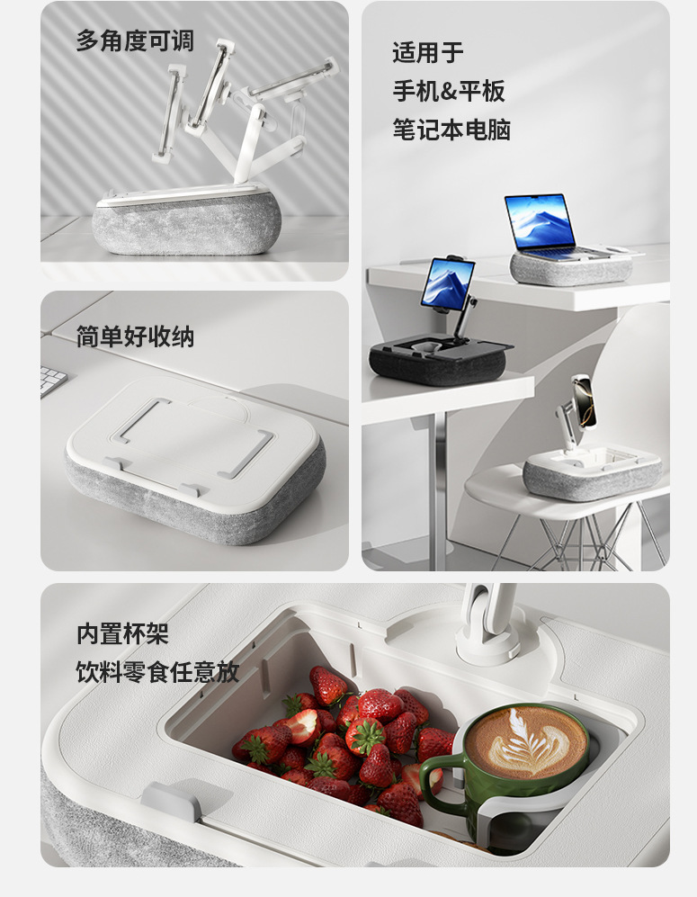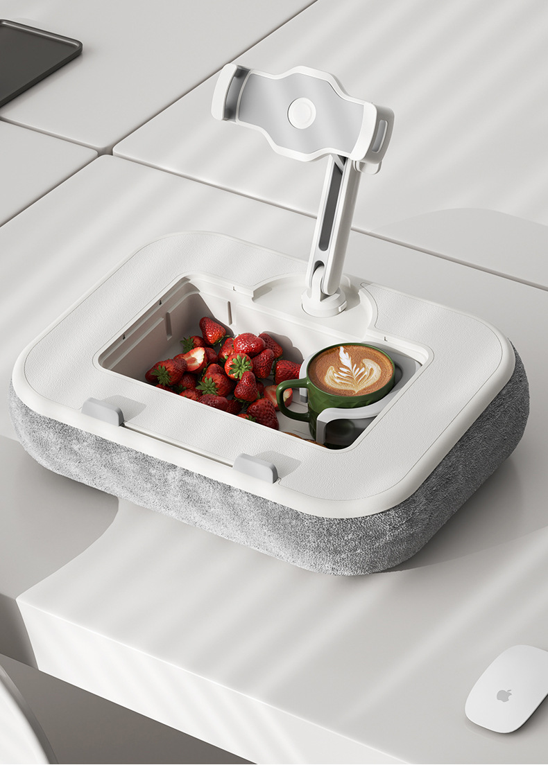 노트북 다기능 스탠드, 컵 홀더가 있는 자동차 베개, 스낵 슬롯, 휴대폰 태블릿 범용 스탠드, 플러시 드라마